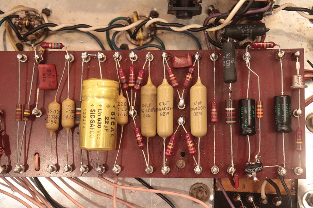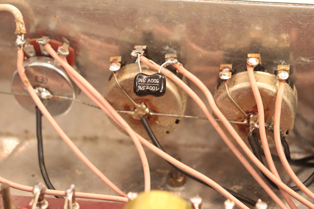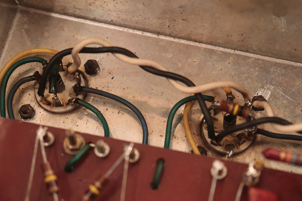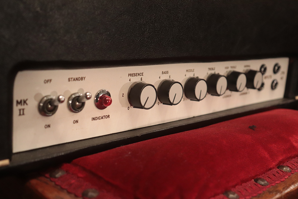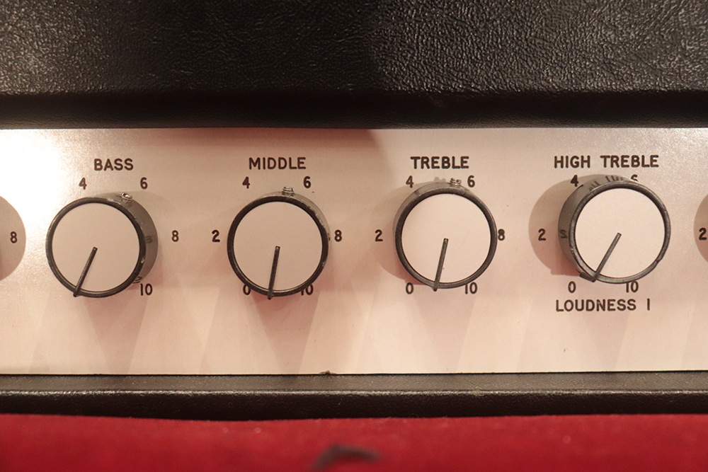 62年のマーシャル・アンプの登場から続いた、ホワイト・カラーのフロント・パネルの最終期の機体です