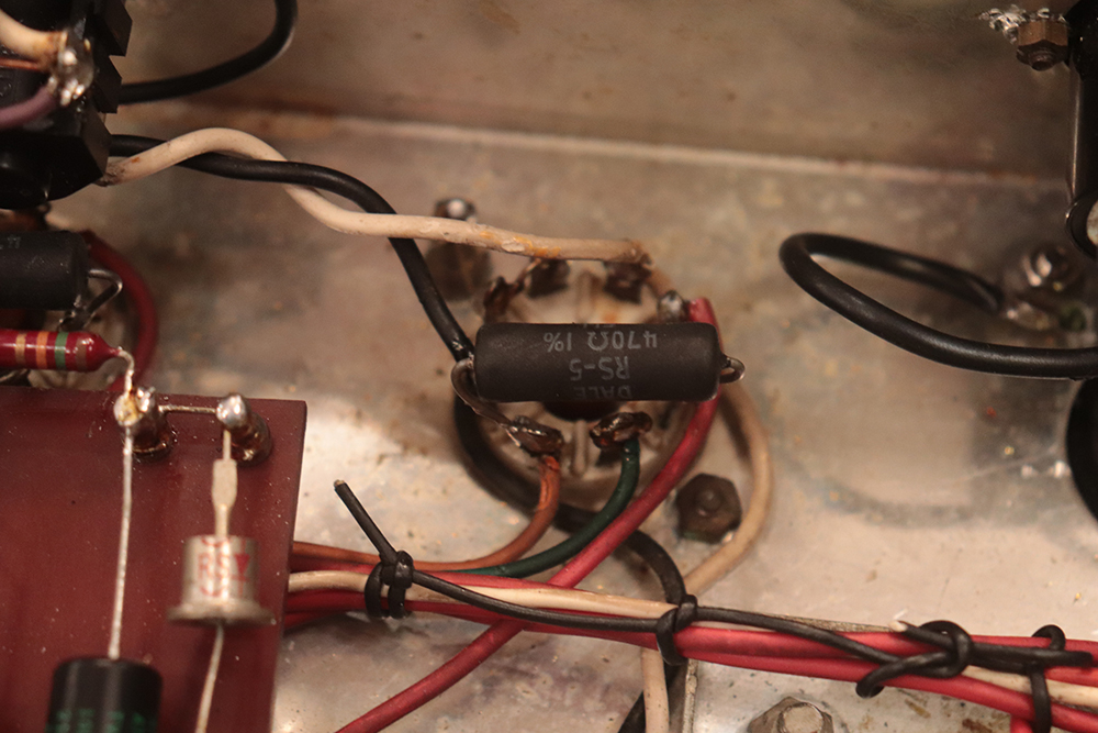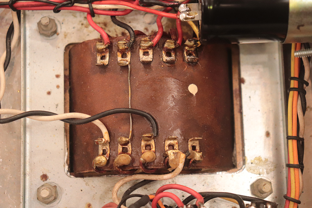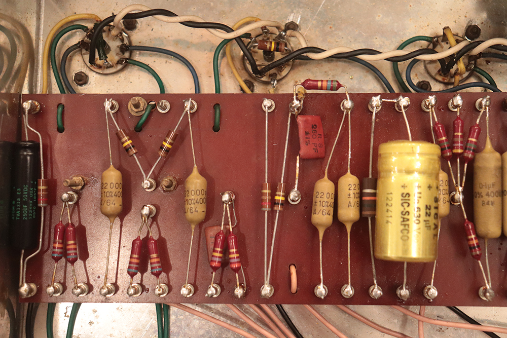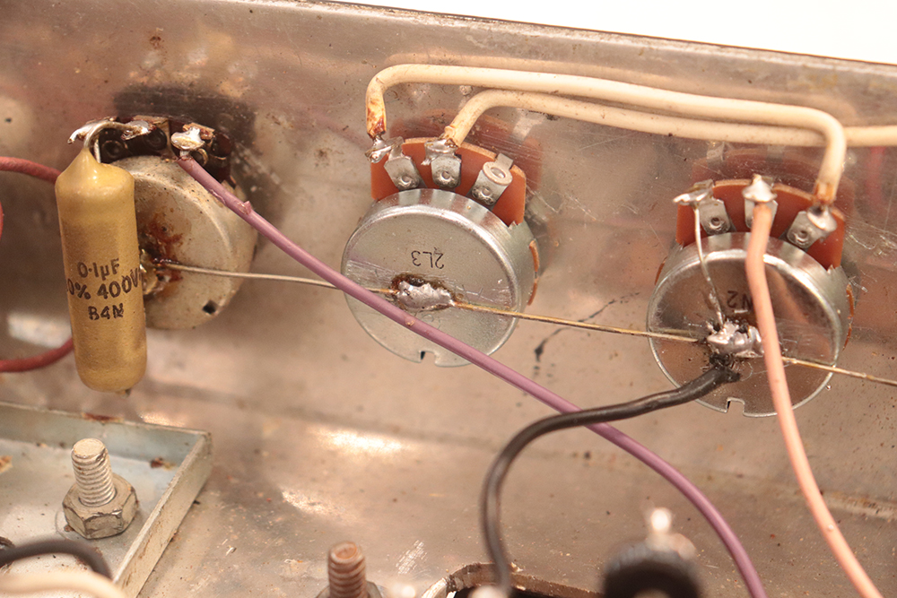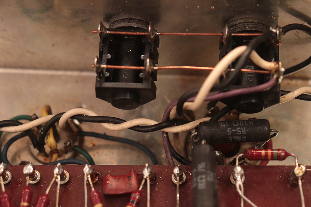 62年のマーシャル・アンプの登場から続いた、ホワイト・カラーのフロント・パネルの最終期の機体です