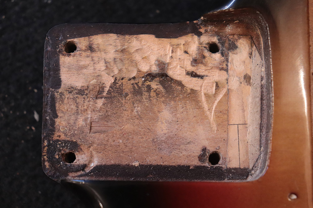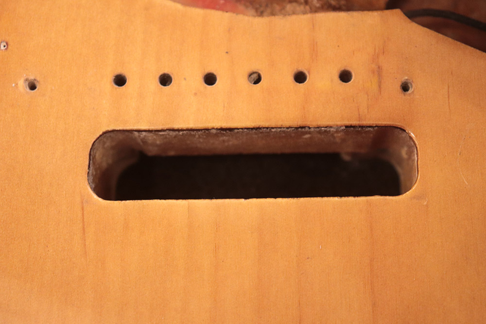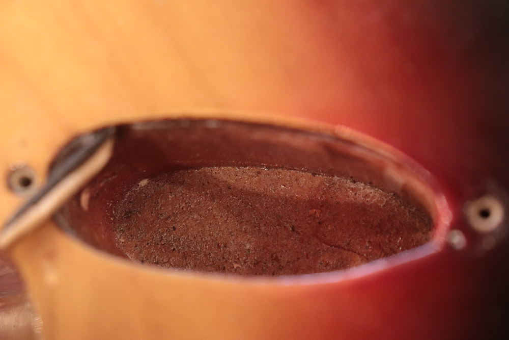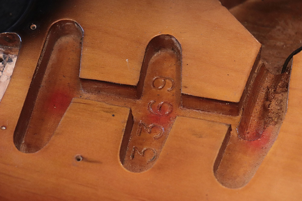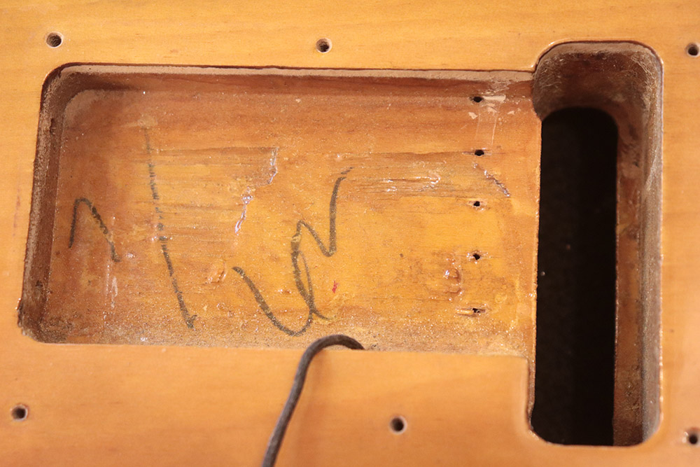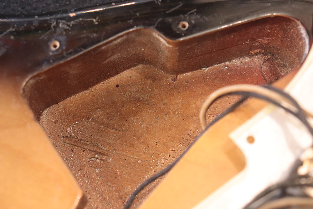 ボディ、ピックアップ・キャビティ内部には、ファクトリーでリフィニッシュが施された時に刻印される数字が入っています