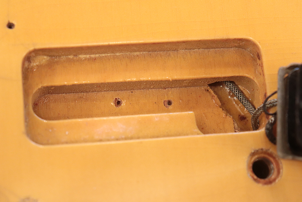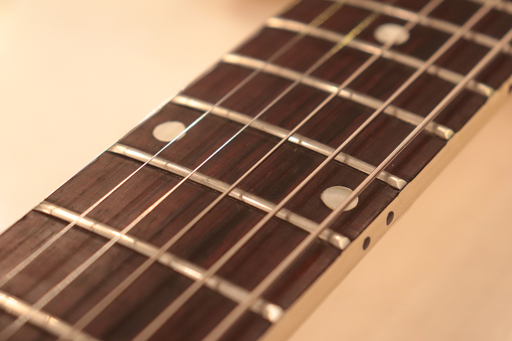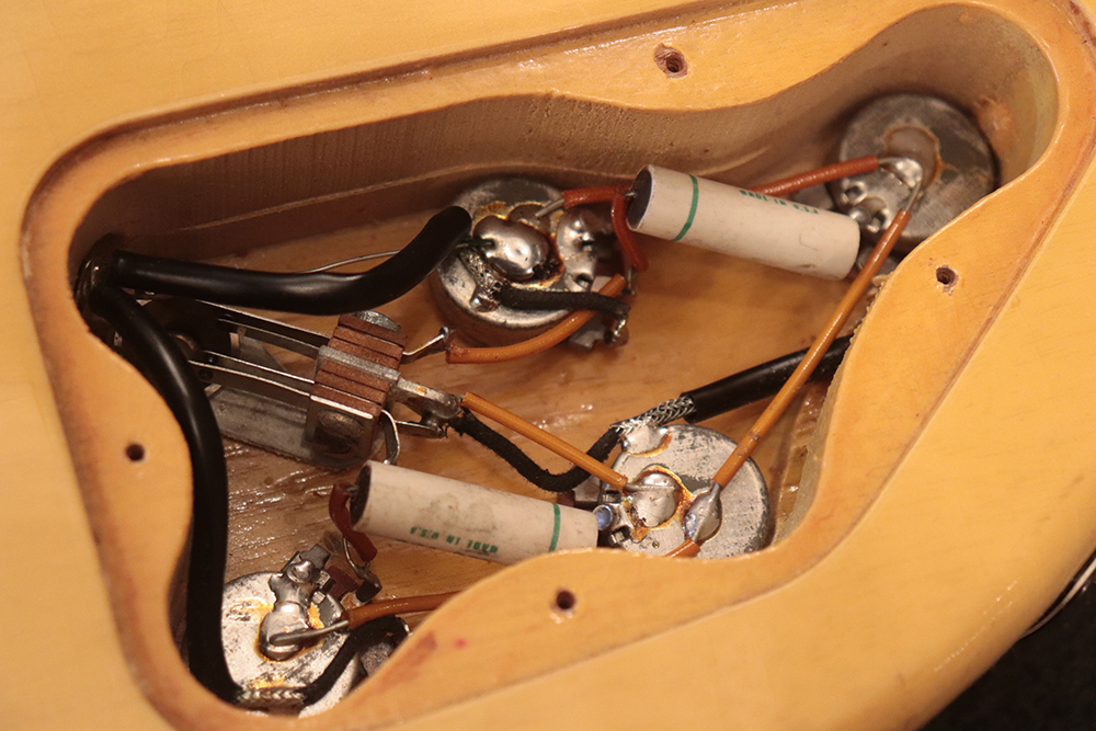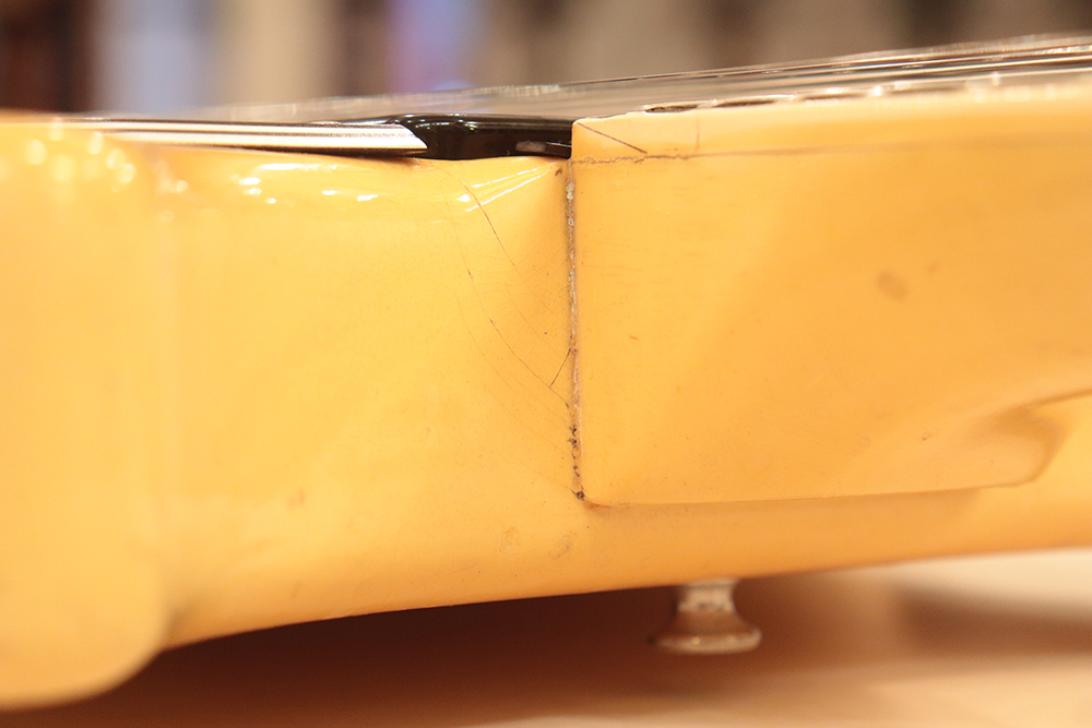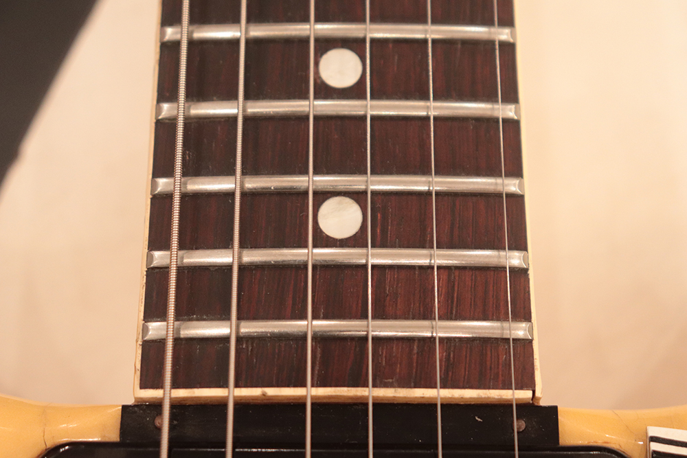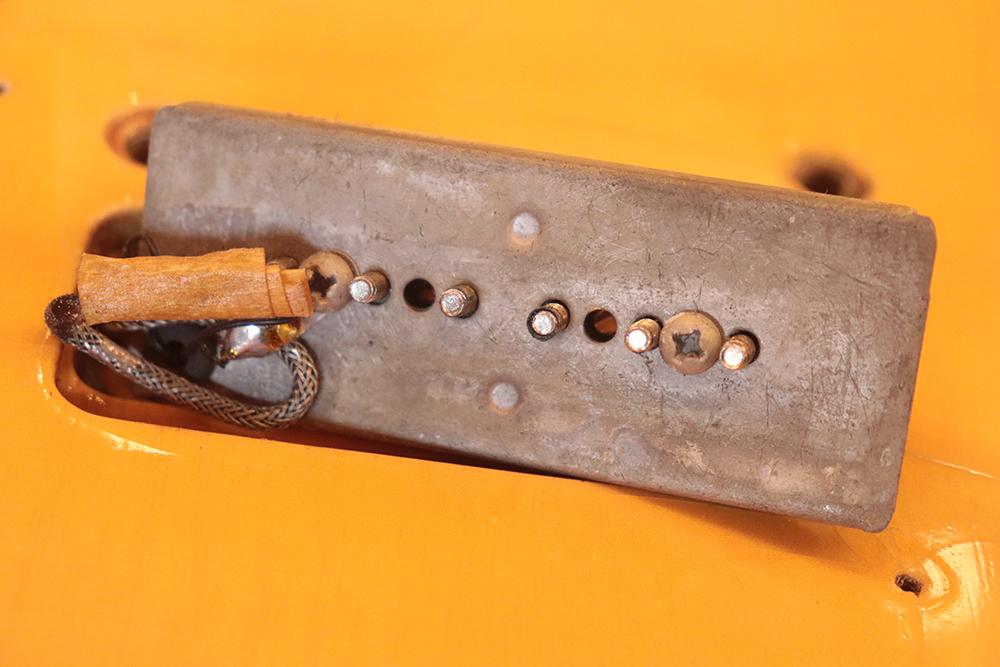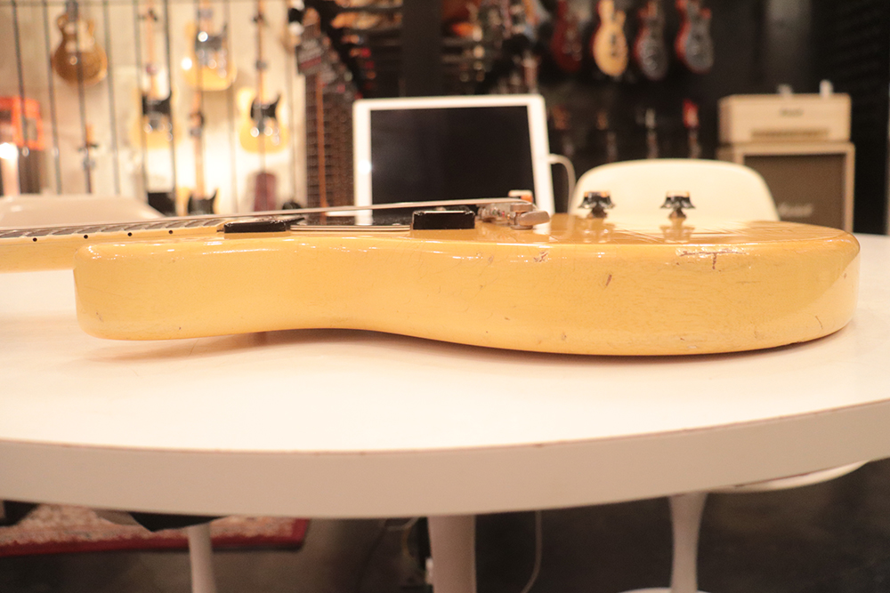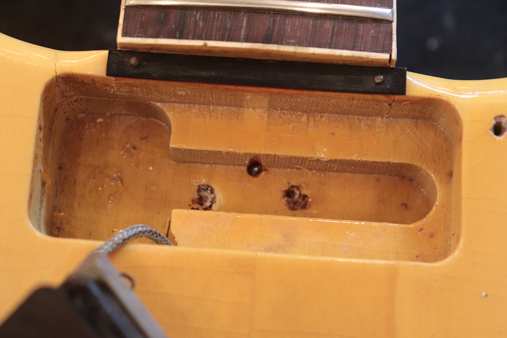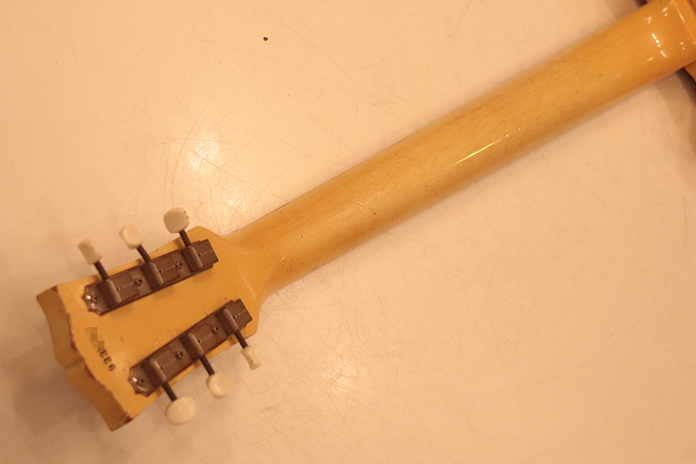 60年頃には、フロント・ピックアップの位置が下げられる仕様となりますが、マイナーチェンジ前のピックアップ・レイアウト仕様では、倍音的にも良い位置に配置されたフロント・ピックアップのトーンと、この時期ならではなファットながら握り易い独特なネック・グリップで人気の高い59年製です