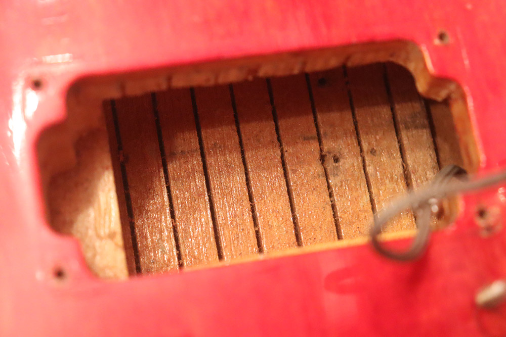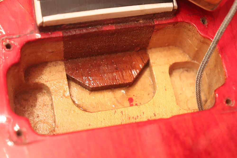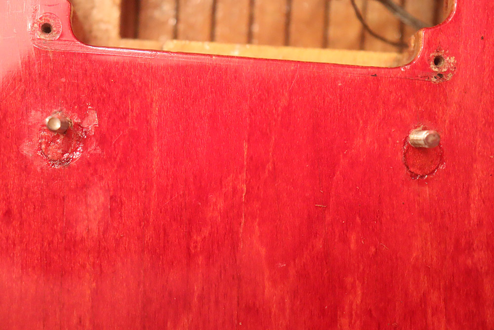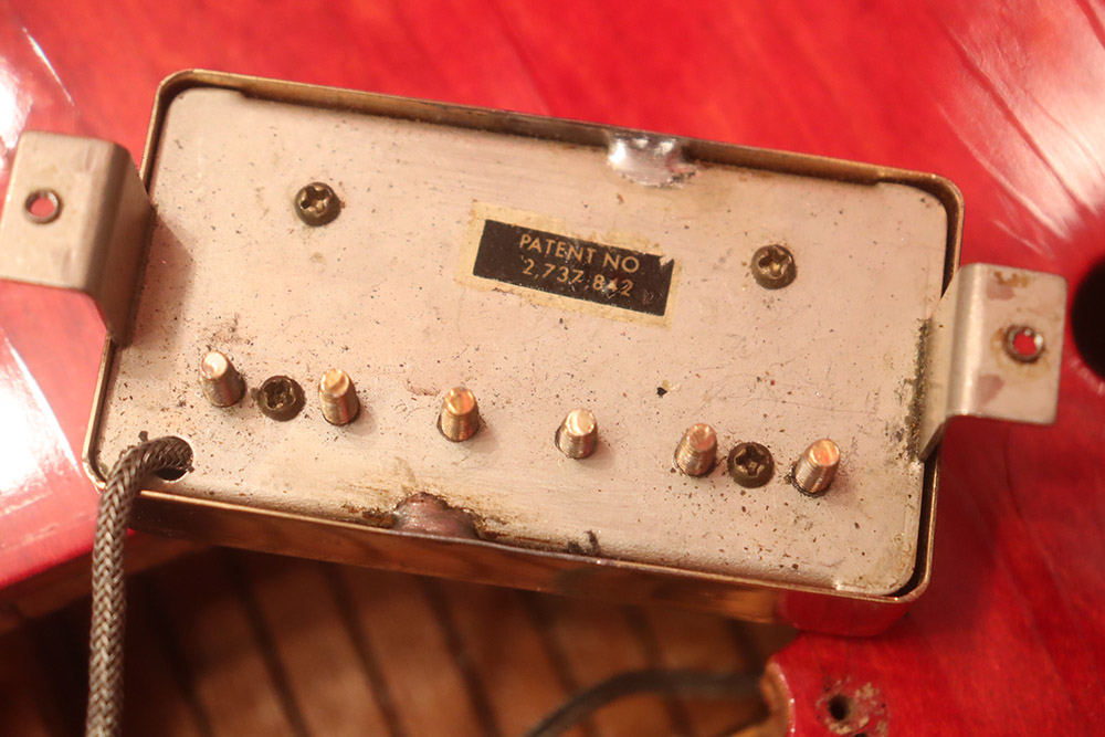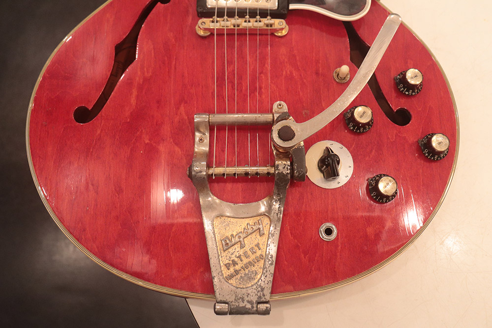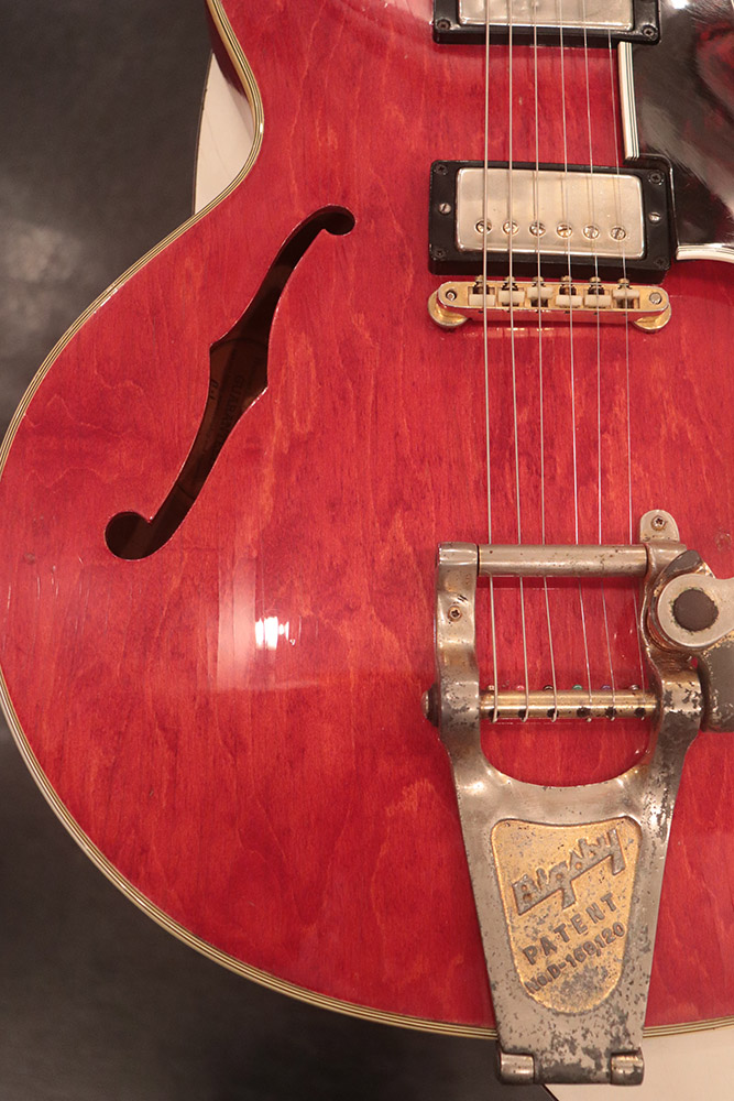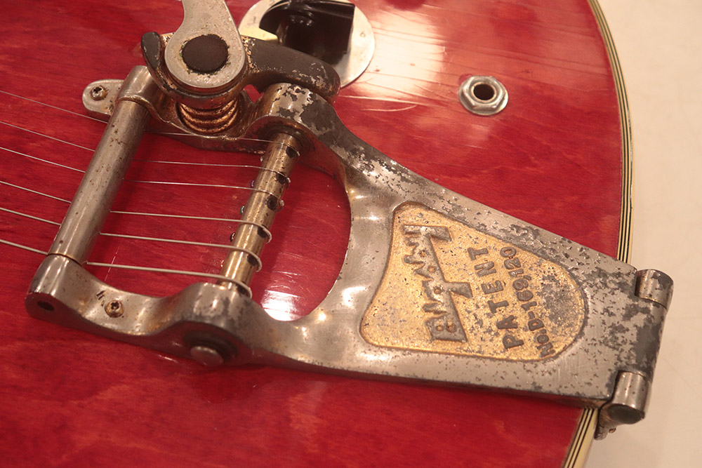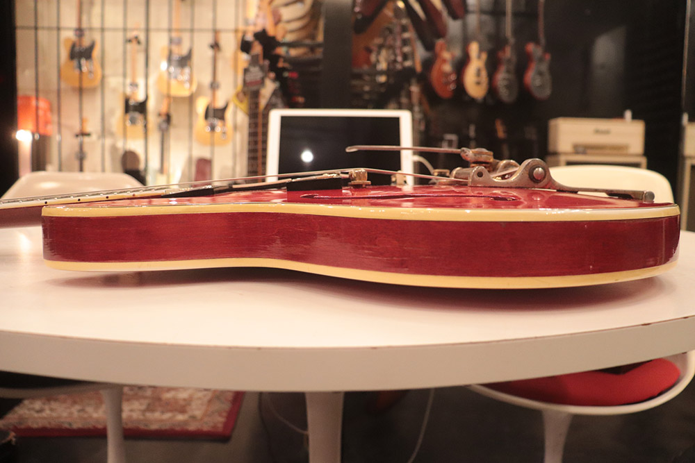 トレモロ・ユニットは63年から登場する“ロング・ヴァイブローラ・トレモロ”が搭載されていた形跡がありますが、現在は、60年代前半仕様の“Bigsby・B7G“ユニットが搭載されています