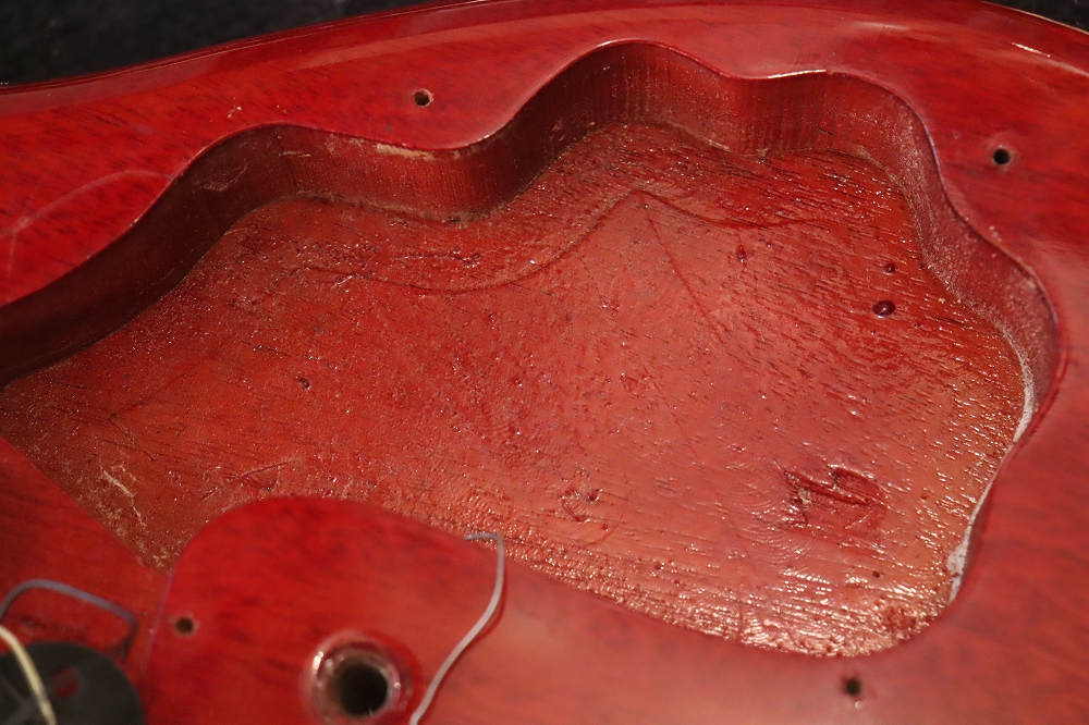 このボディ形状から採用されたチェリー・レッド・フィニッシュの機体です