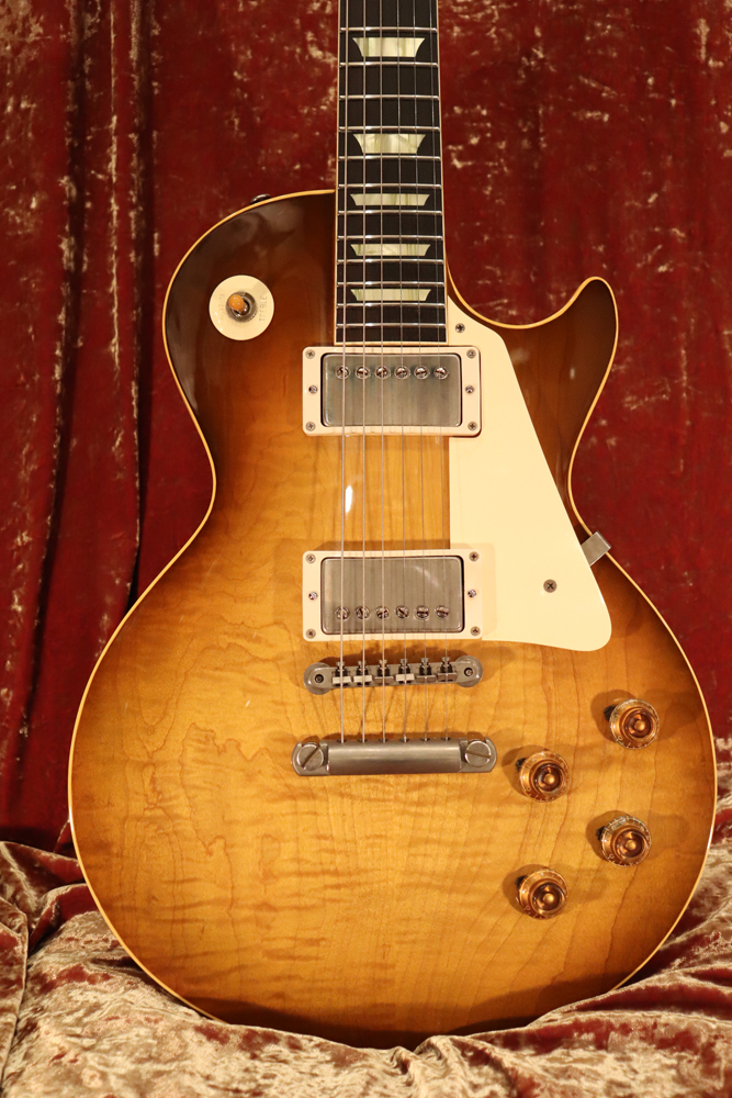 本物のホンジュラス産マホガニーをボディとネックに、ボディトップにはセレクテッド・イースタンメイプル、指板材には漆黒なブラジリアン・ローズウッド(ハカランダ)を採用し、接着にはハイドグルー(ニカワ)を使用しています