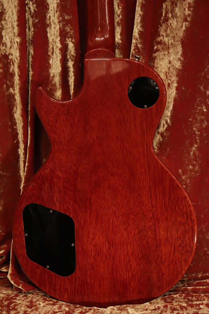 本物のホンジュラス産マホガニーをボディとネックに、ボディトップにはセレクテッド・イースタンメイプル、指板材には漆黒なブラジリアン・ローズウッド(ハカランダ)を採用し、接着にはハイドグルー(ニカワ)を使用しています