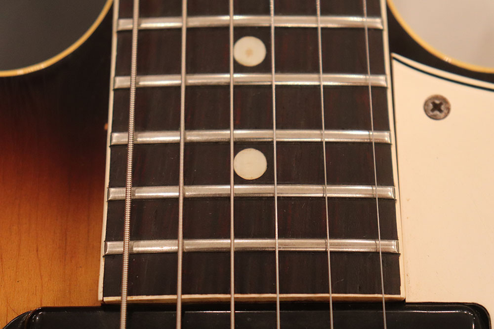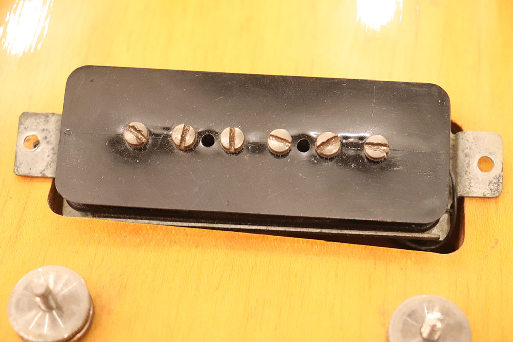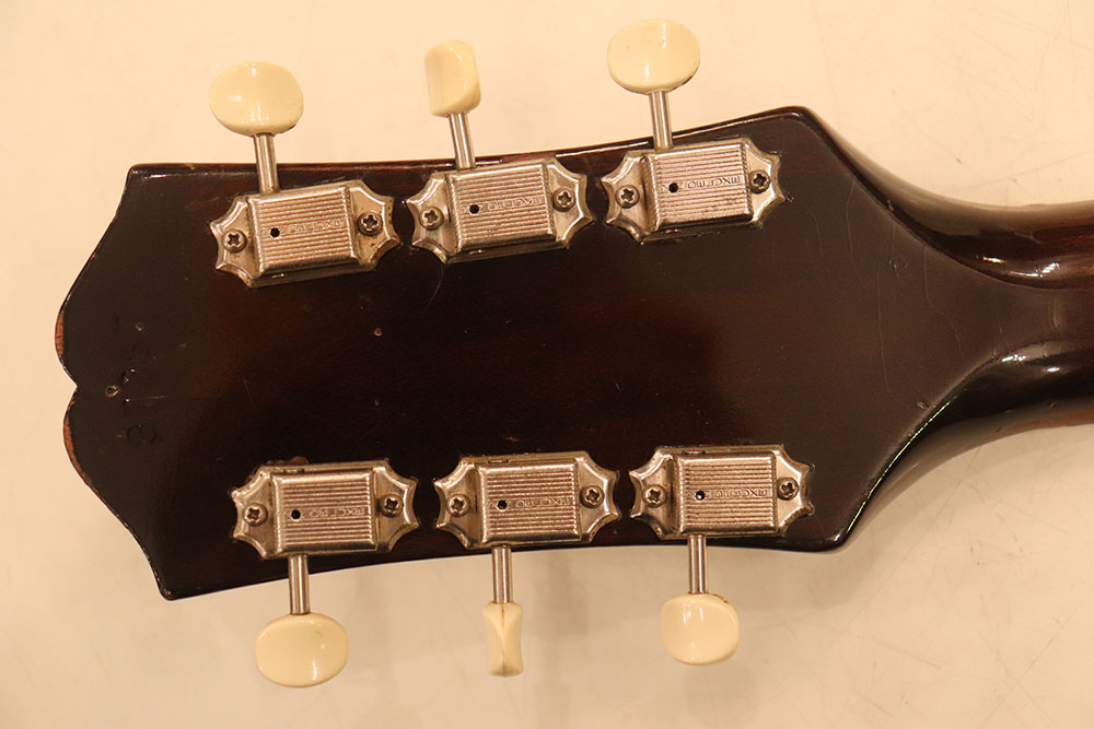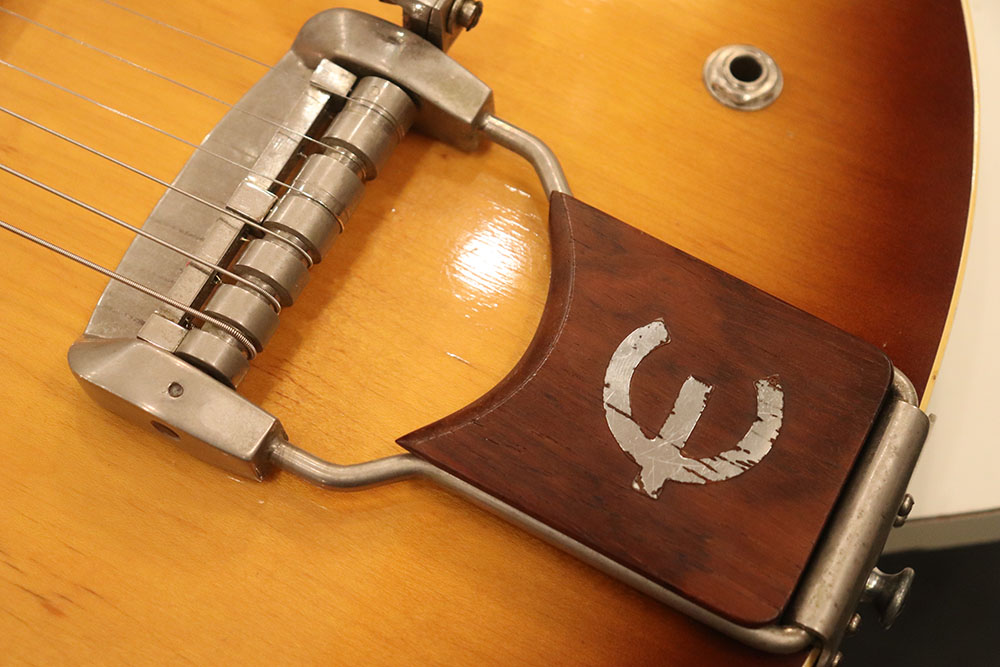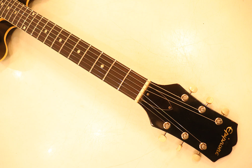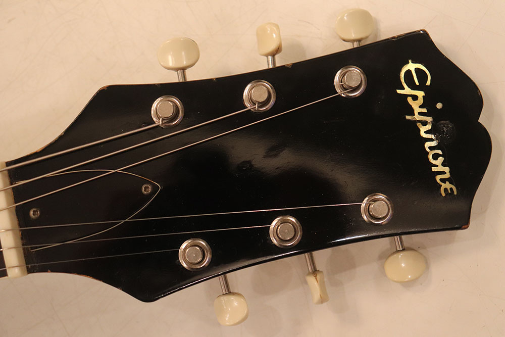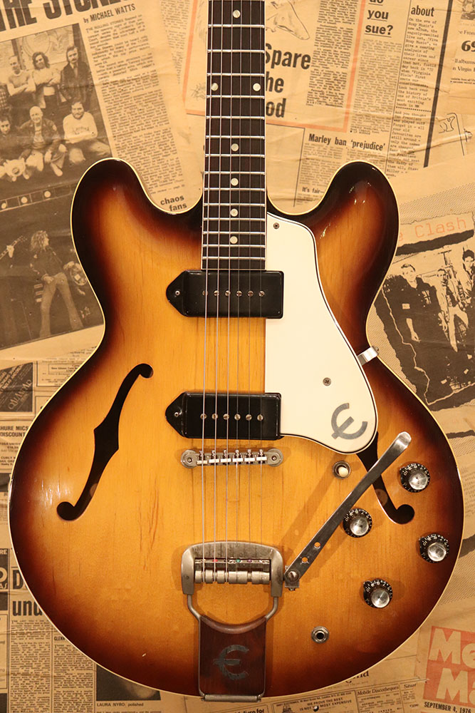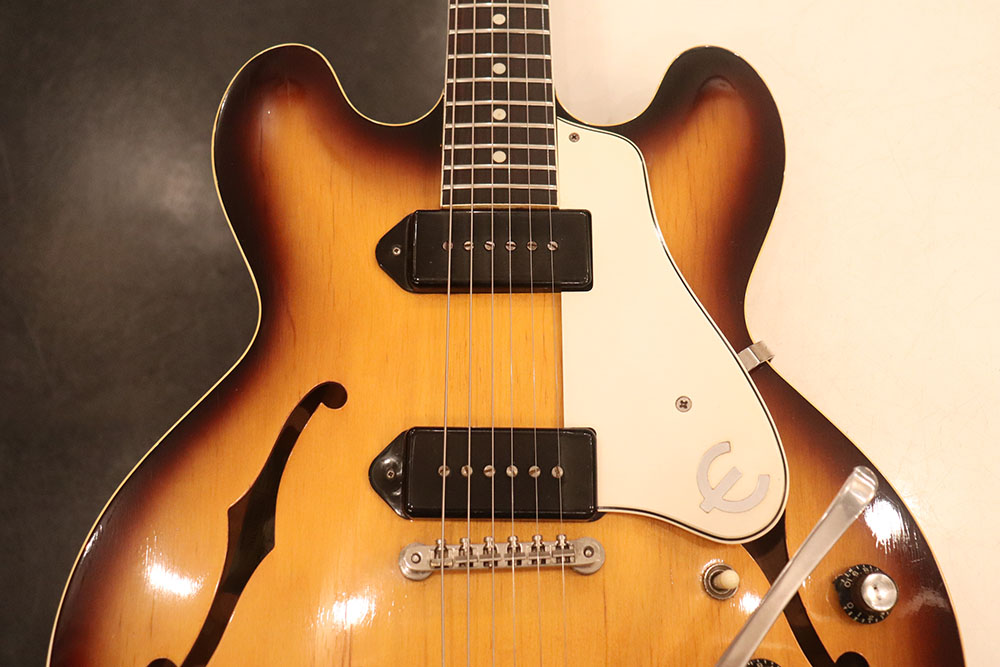 ドット・インレイのフィンガーボードに、ファット・ヘッドストック、ブラックカバーのP-90・ピックアップという、モデル初期仕様の エピフォン・カジノ!