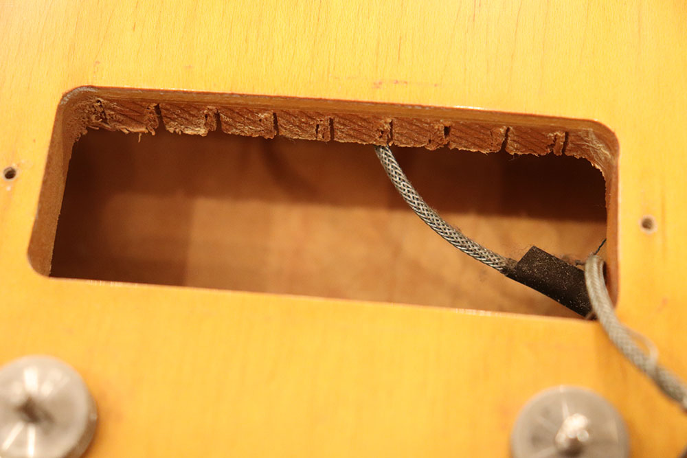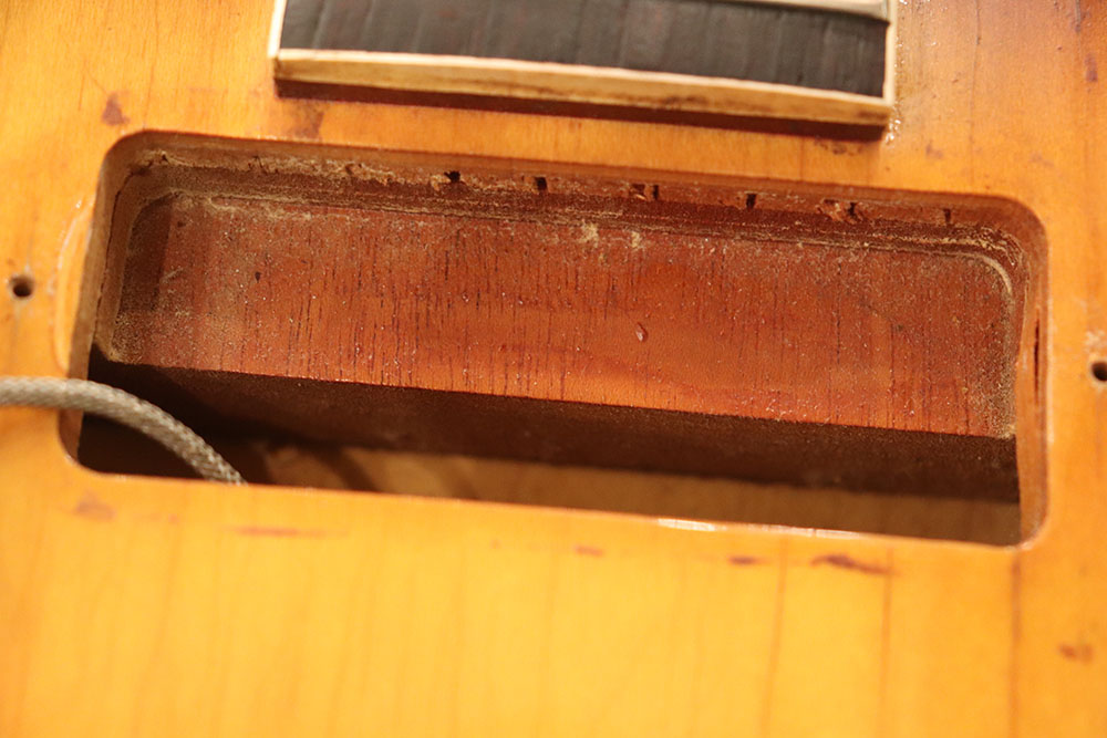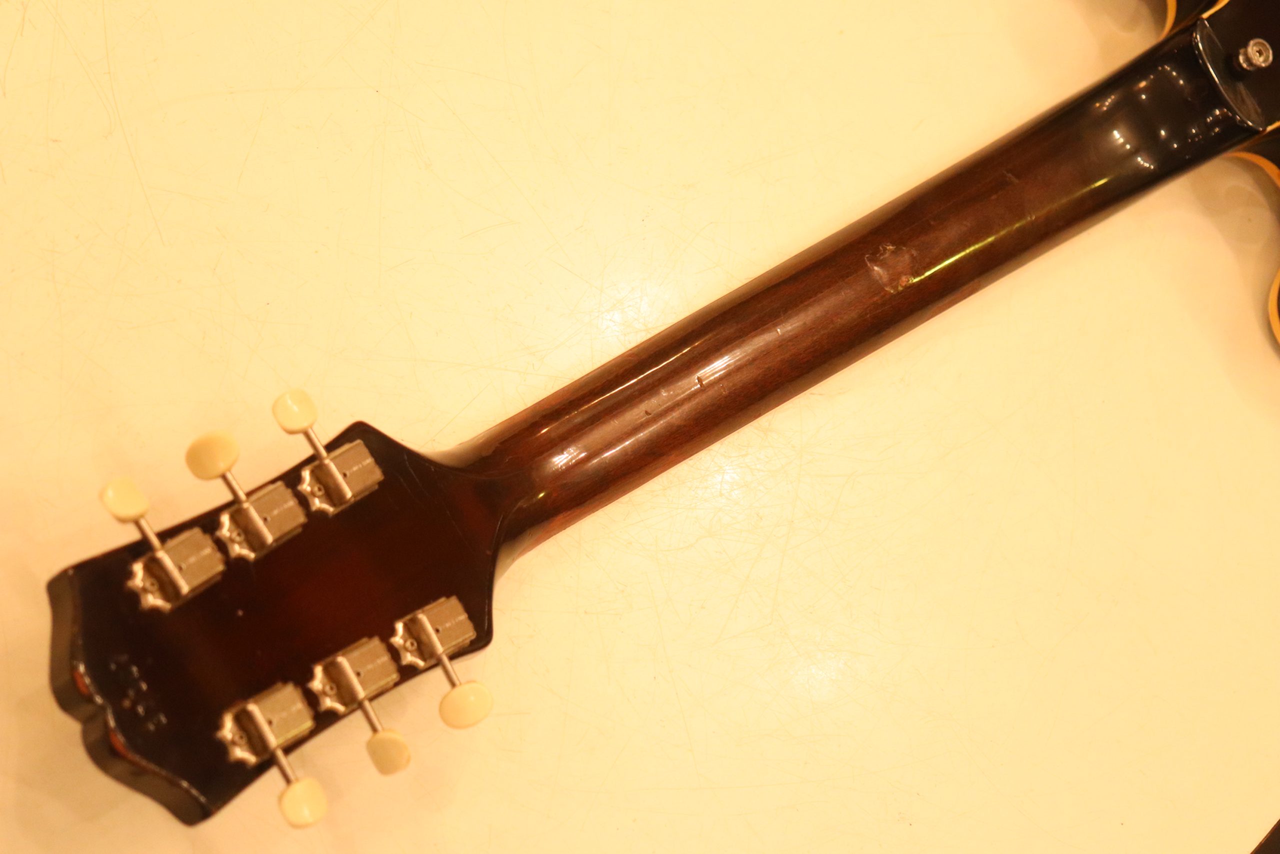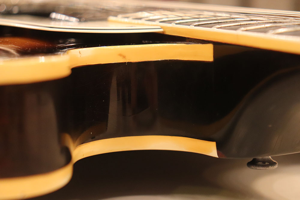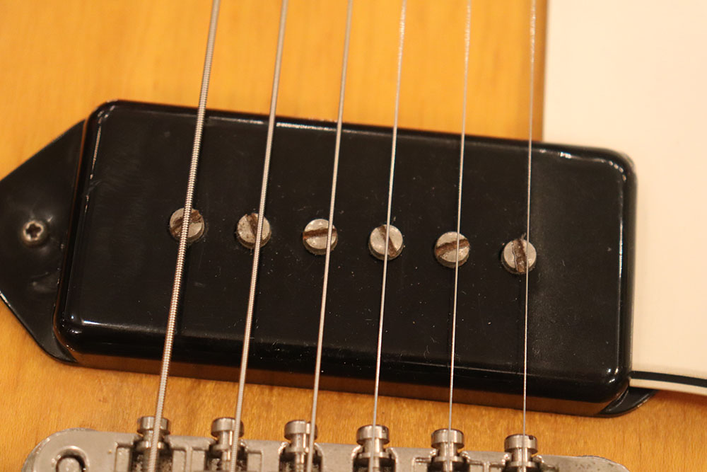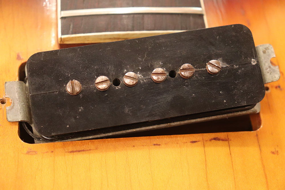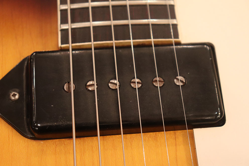 ドット・インレイのフィンガーボードに、ファット・ヘッドストック、ブラックカバーのP-90・ピックアップという、モデル初期仕様の エピフォン・カジノ!