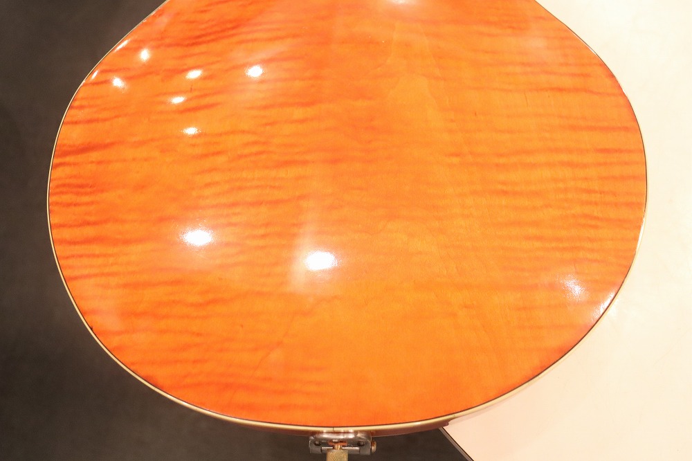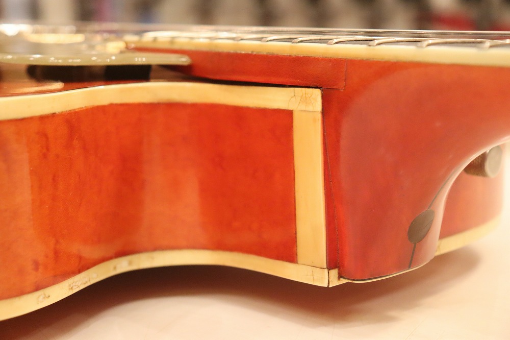 今回入庫は、その珍しいフレイム・メイプルをボディに纏った、ミドル・デプス・ボディの"6120"!