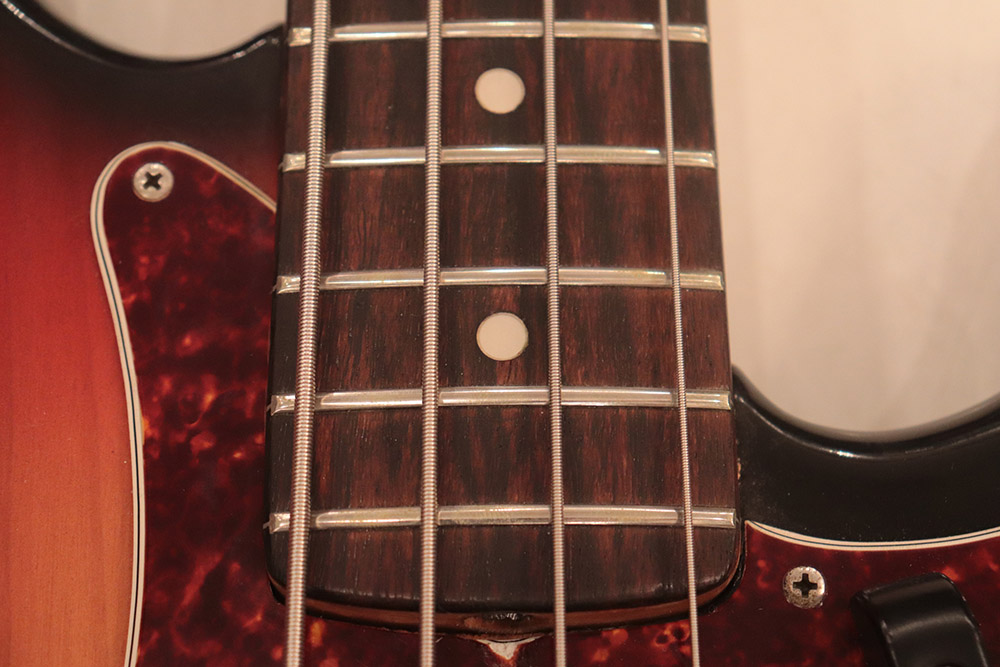 51年のプレシジョン・ベース発売時から68年中期迄継続していた45ミリのナット幅を、69年には少し狭めた42ミリに変更が施されます これ以降のナット幅の変更はシェイクハンド時でも引き易くなり、新しいプレイスタイルやサウンドが生まれました