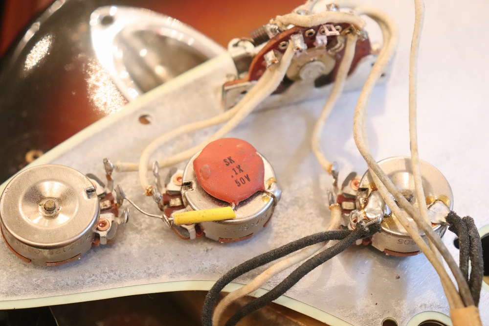 その他、オリジナルもグリーンガードですが、現在はピックガードがリアルなレリック仕様のグリーンガードのリプレイスへ、シールドプレート、アームバーがリプレイスされていますが、主要部のピックアップ、アッセンブリー、ハードウエア等はオリジナルをキープしています!
