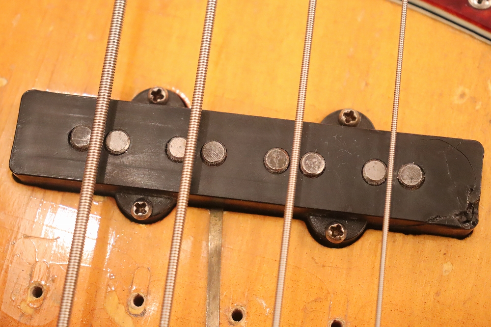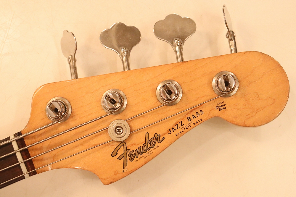 ラウンド・フィンガーボード期の中では、最も指板の厚みもあり、12フレットのポジションマークの位置や、なんと言ってもスラブ期同様な薄いヘッドの厚みは、“ネックが鳴る”と評される、ヴィンテージ・ジャズ・ベースならではなサウンドを生み出します