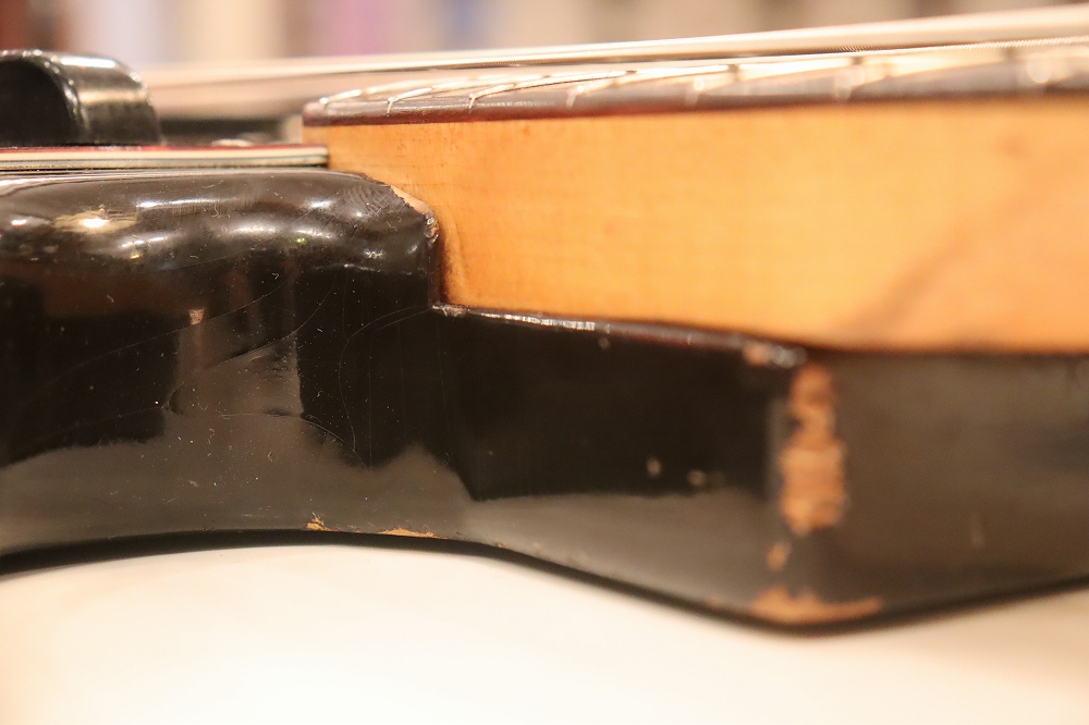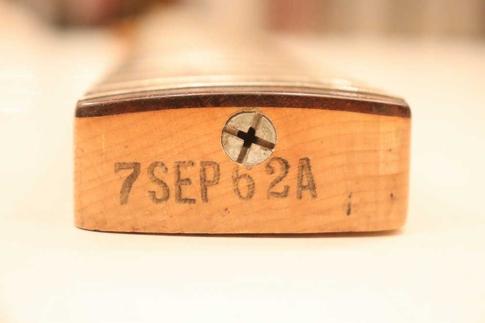 59年から採用されたスラブ貼り仕様のローズウッド指板は、62年の中期にラウンド貼り仕様に変更されます