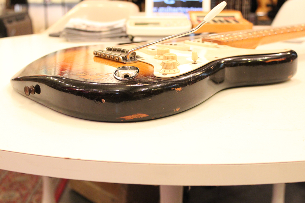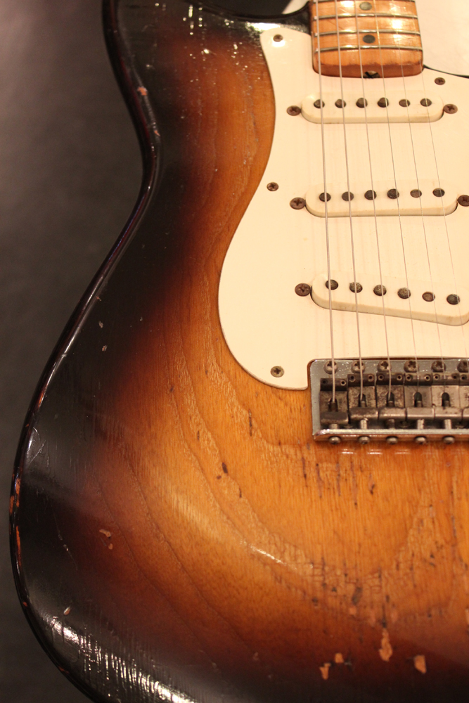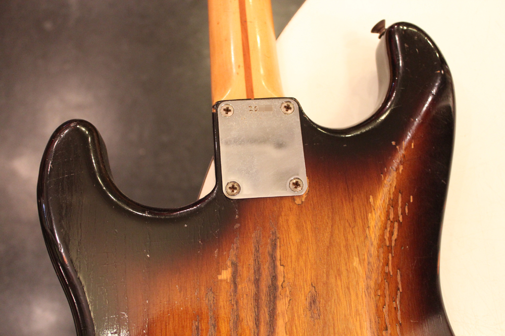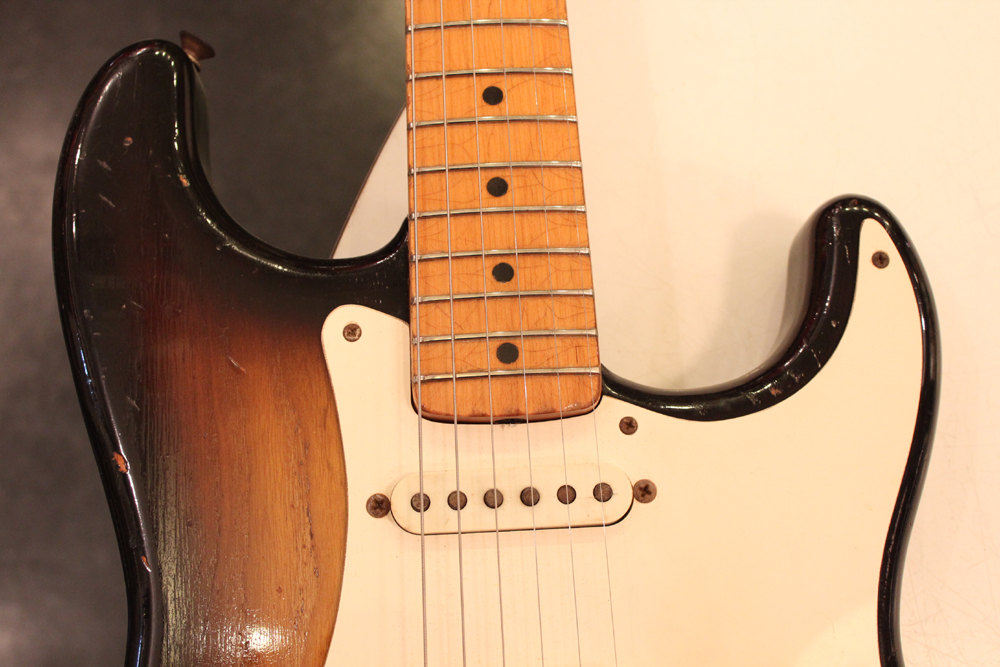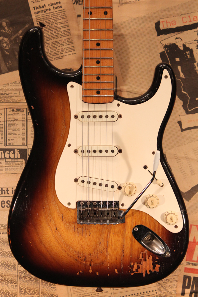今回入庫は、アッシュ材ボディの最終期の56年前期製のストラトキャスター!