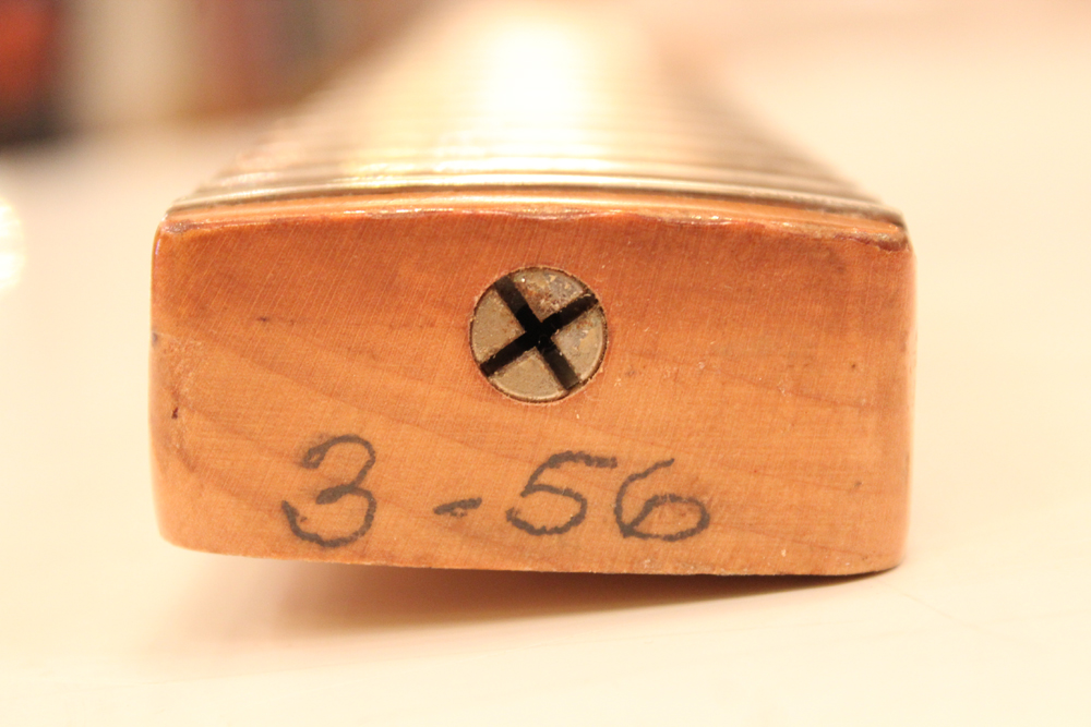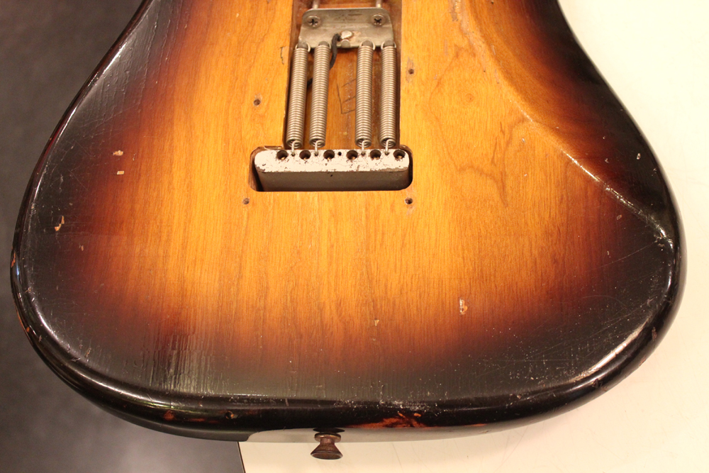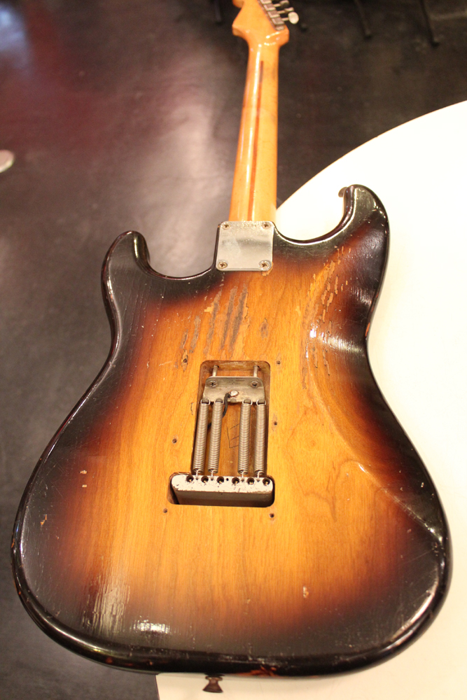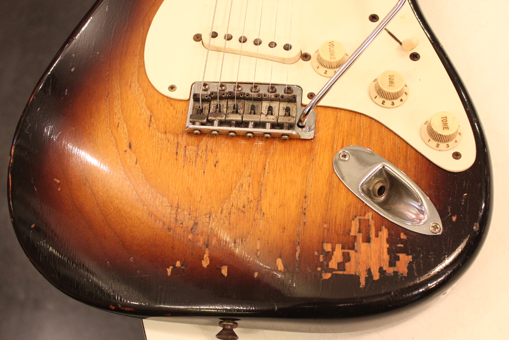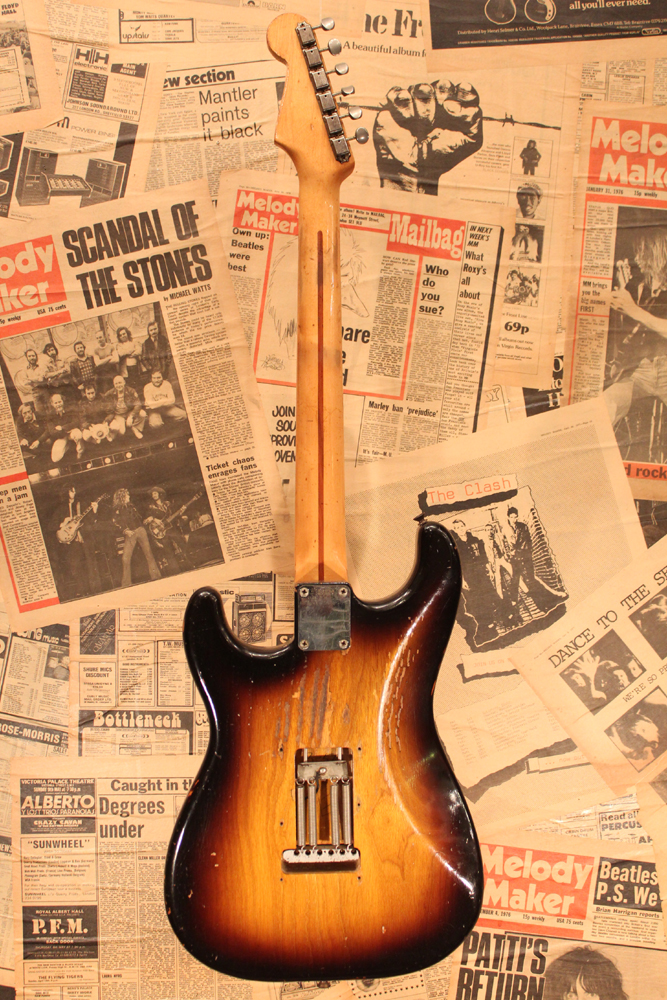 今回入庫は、アッシュ材ボディの最終期の56年前期製のストラトキャスター!