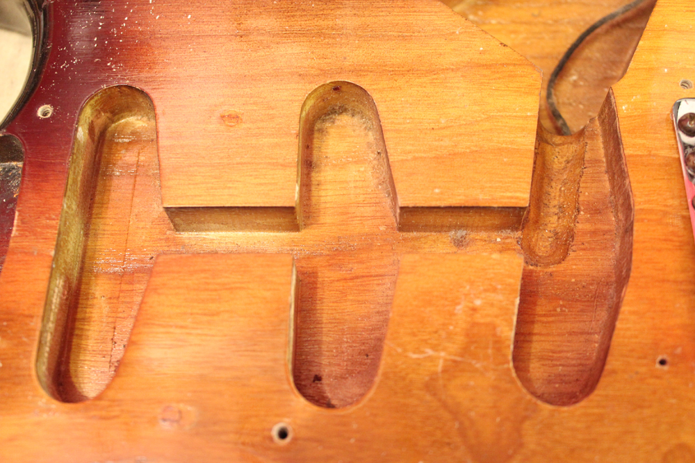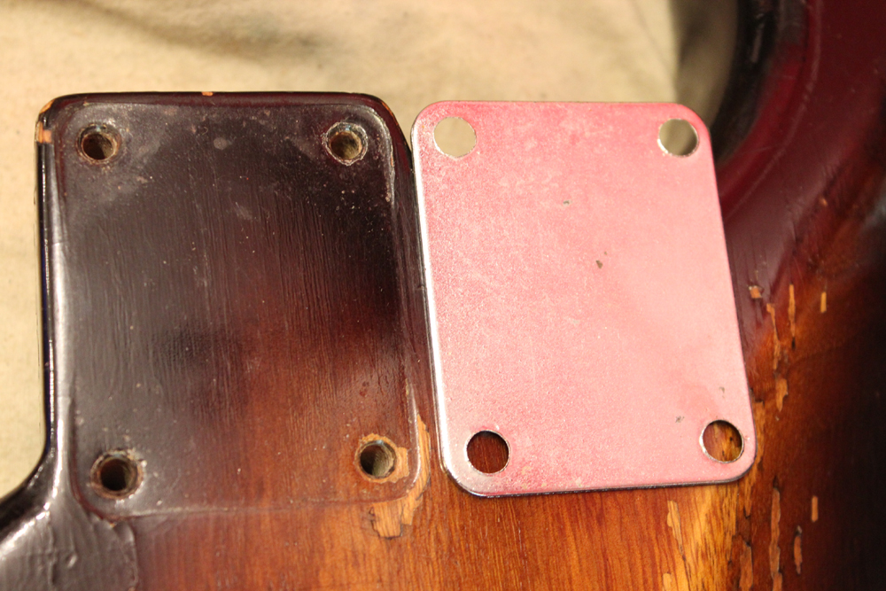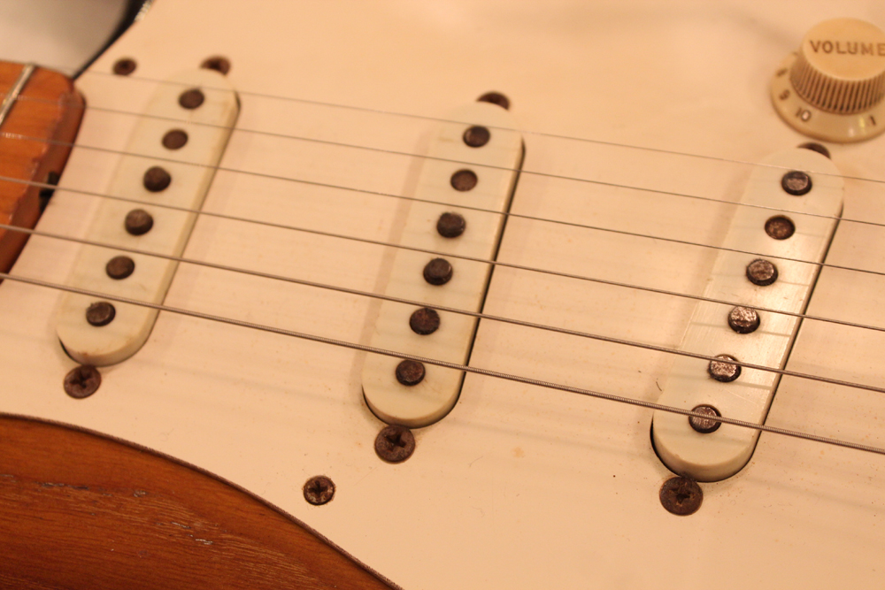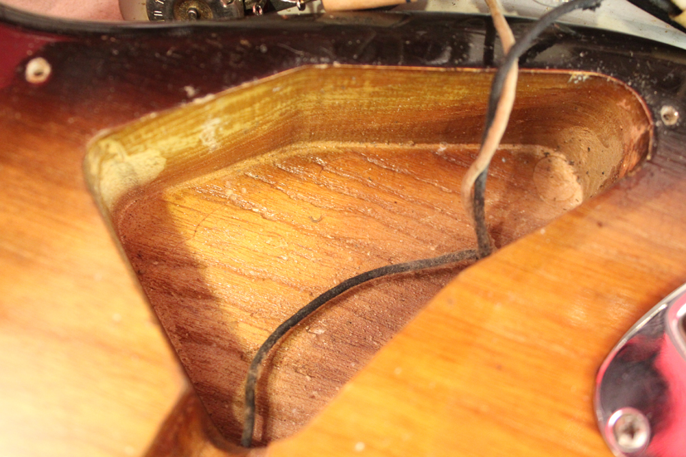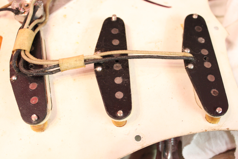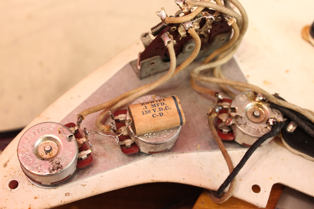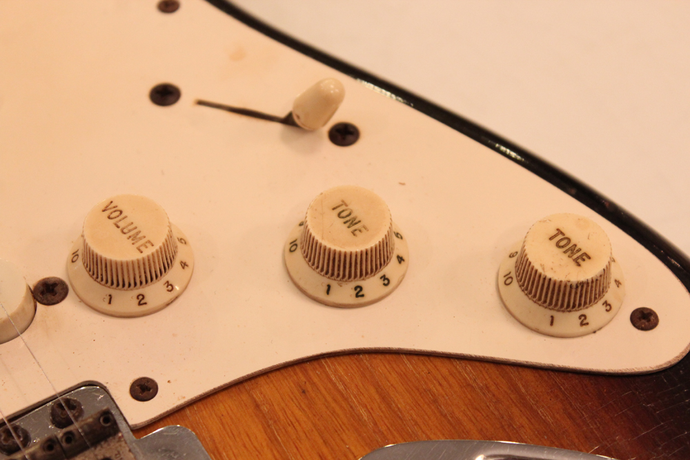 ピックアップはオリジナルですが、ポットは70年代製に、ピックアップカバー、ノブ、スイッチ・チップは60年代の物にリプレイスされています