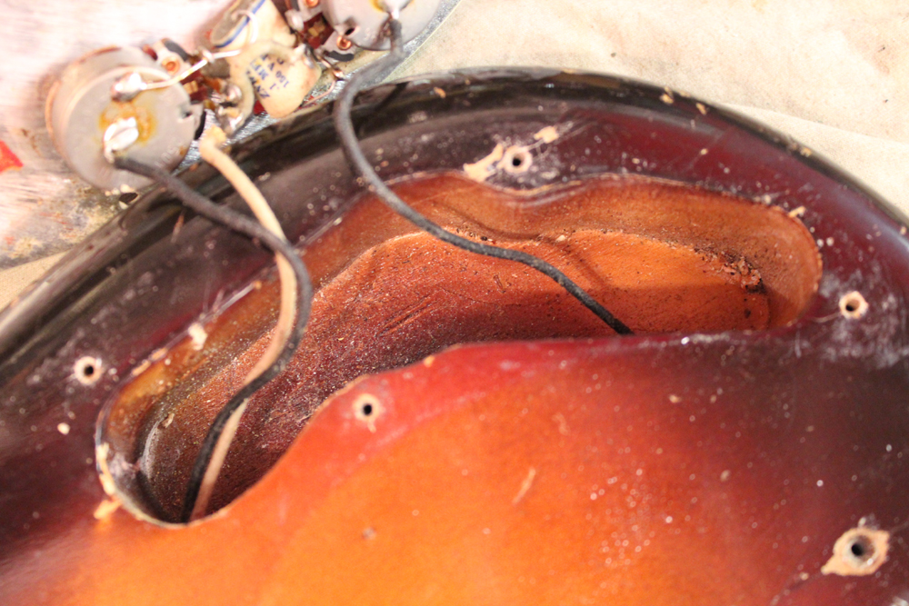 赤がフェイドしたツートーン・バーストが60年製の特徴でもあり、指が当たる部分のウエア等はございますが、全体的にには丁寧に弾き込まれた感じがとても伺える機体で、内容もオール・ストレートのフル・オリジナル!