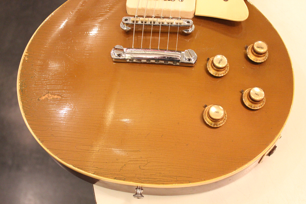 内容もジャックプレートのリプレイス等、些少のイッシューはございますが、50年代と同様のブラスパウダーを使用したゴールド・トップ・フィニッシュに入ったウエザーチェックと相まり、リアル・50's・ゴールドトップの雰囲気を持った、グッド・ルッキング & トーンのファースト・リッシュー・レス・ポールです!