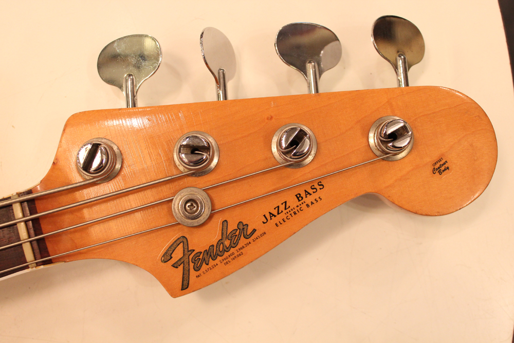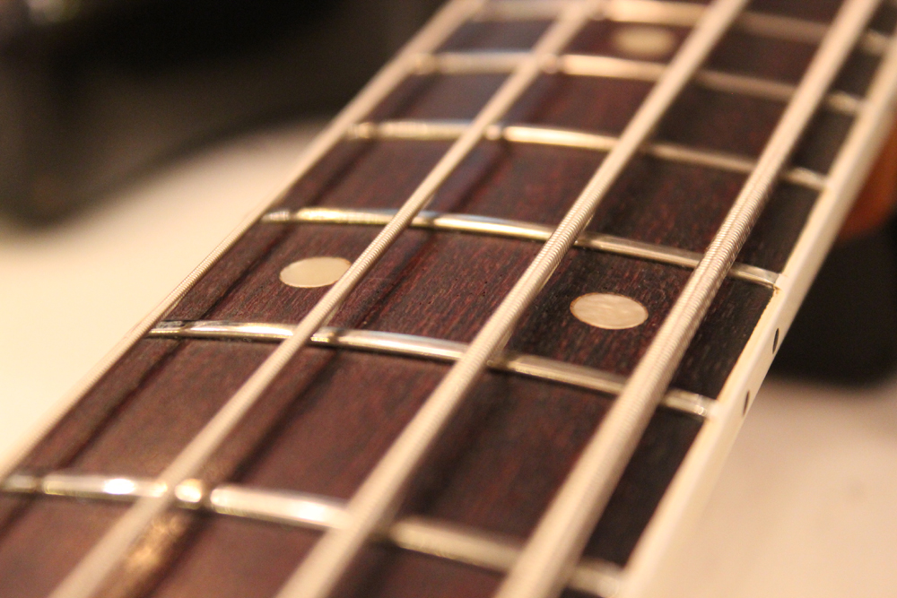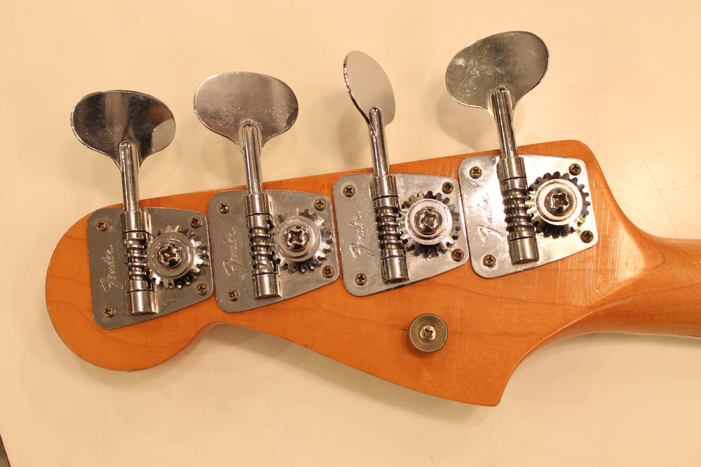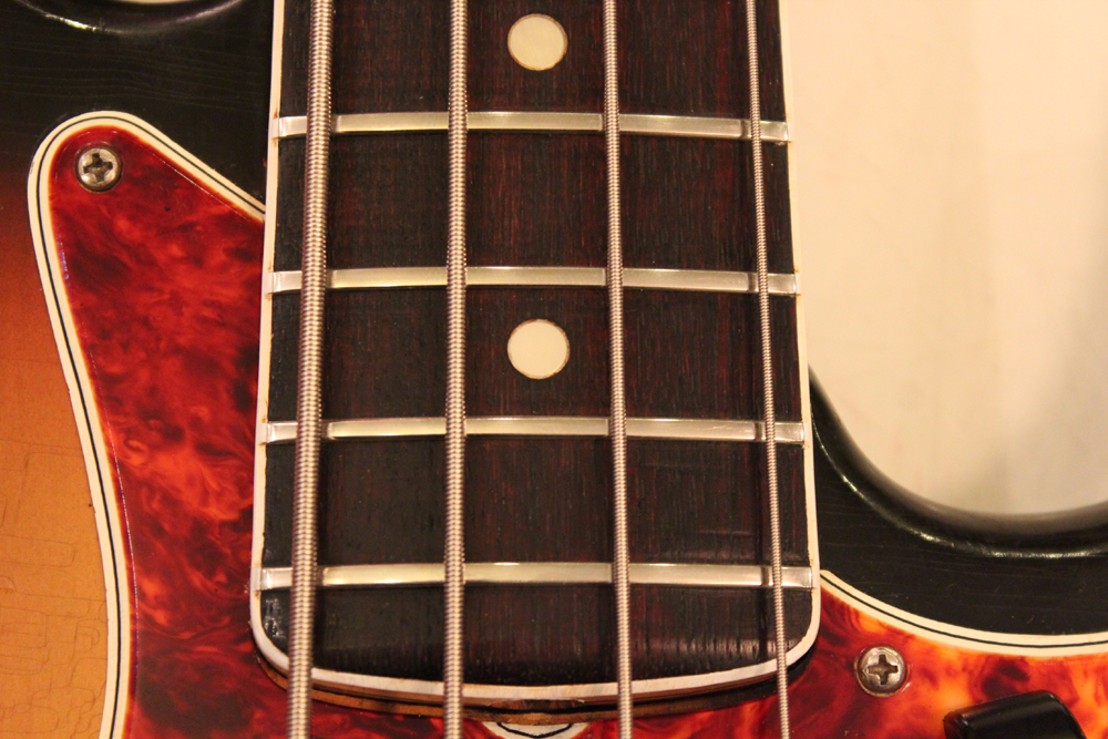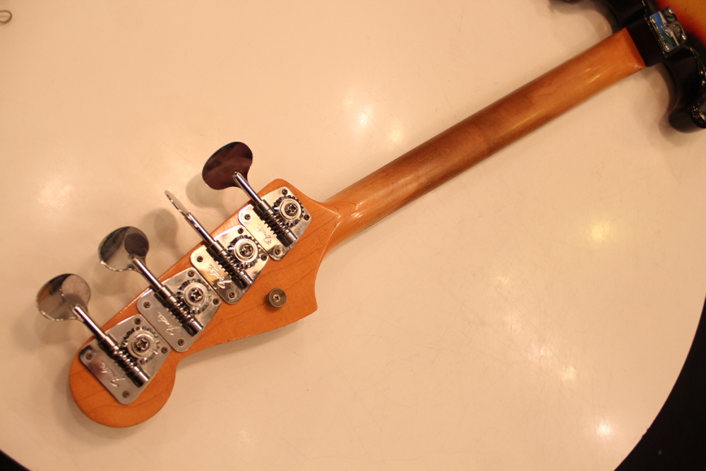 ドットマーカー・ネックにバインディングが施された、66年仕様のジャズ・ベース