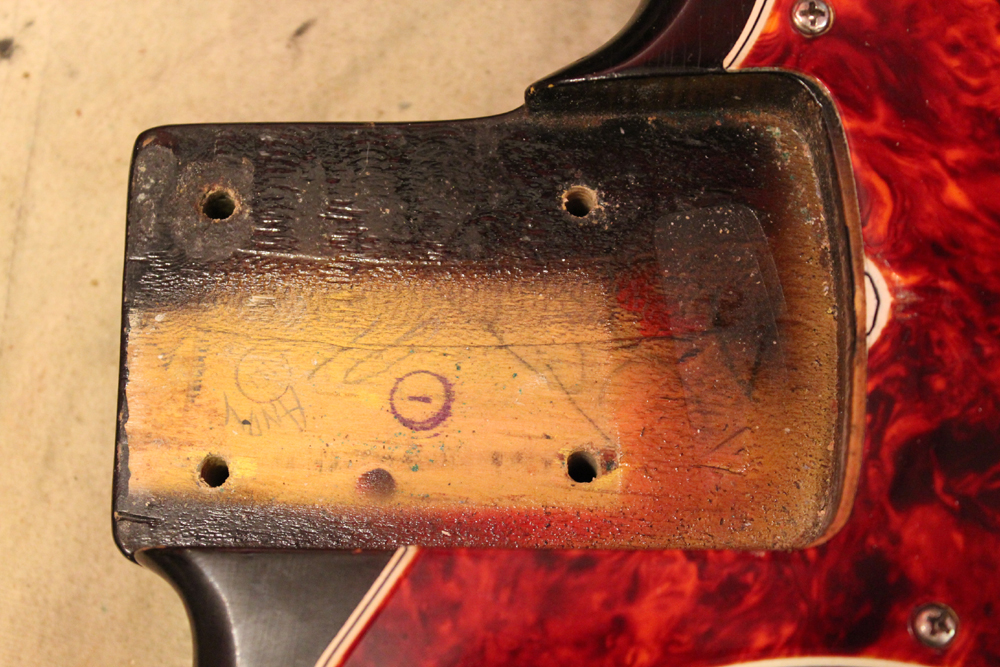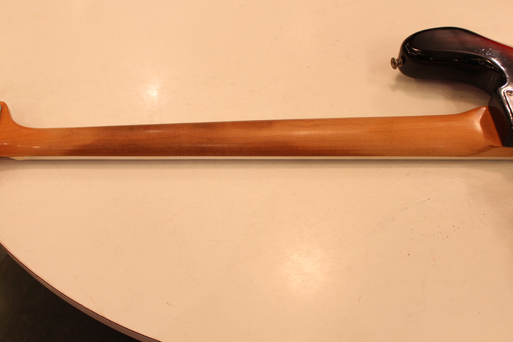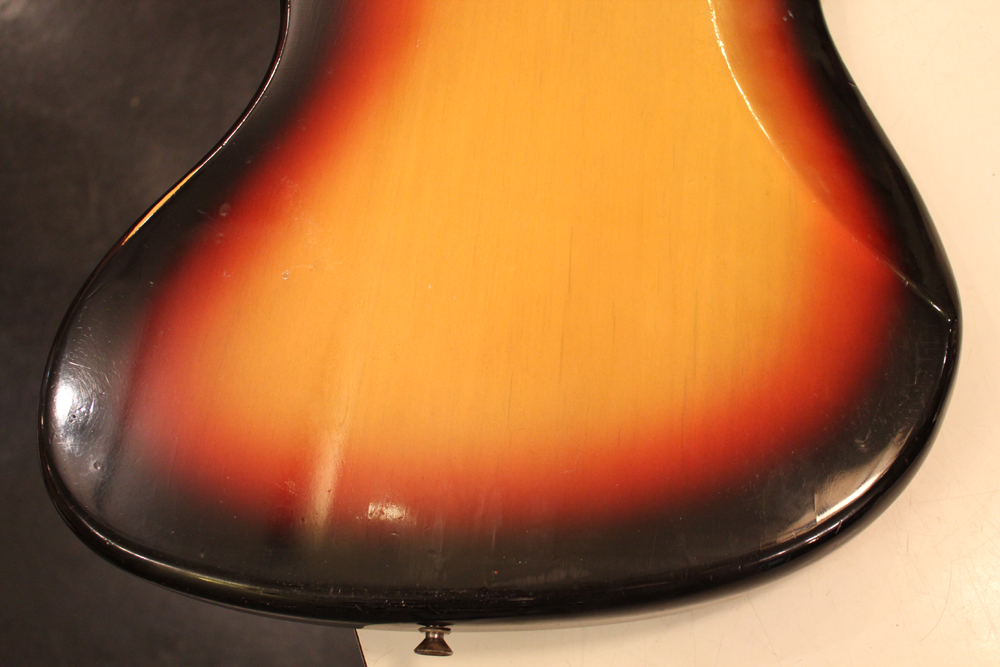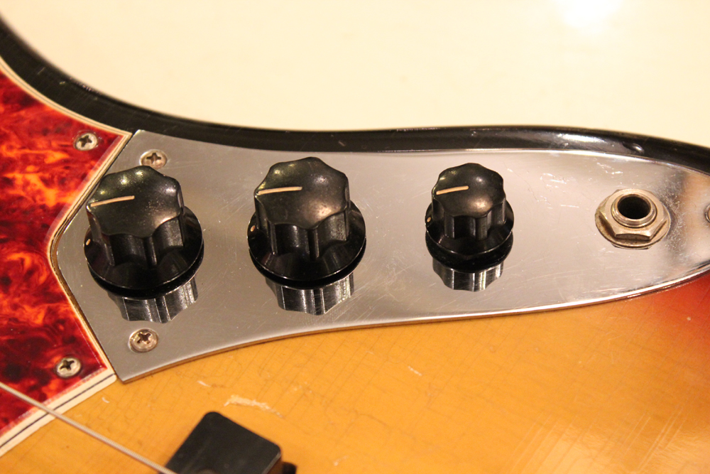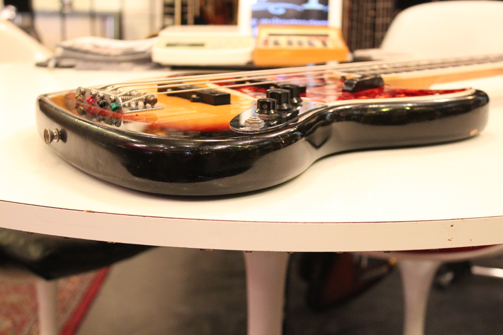 ドットマーカー・ネックにバインディングが施された、66年仕様のジャズ・ベース