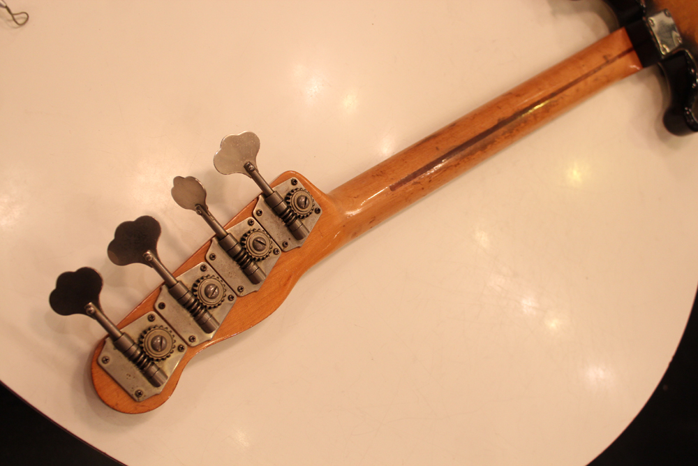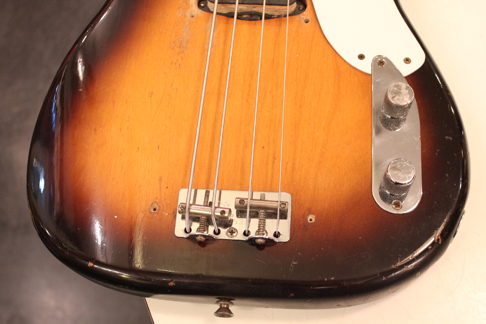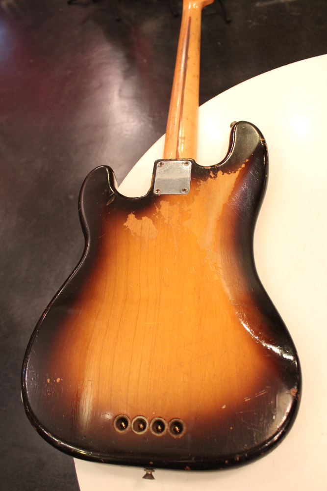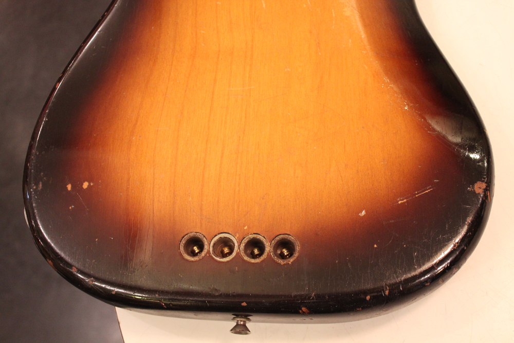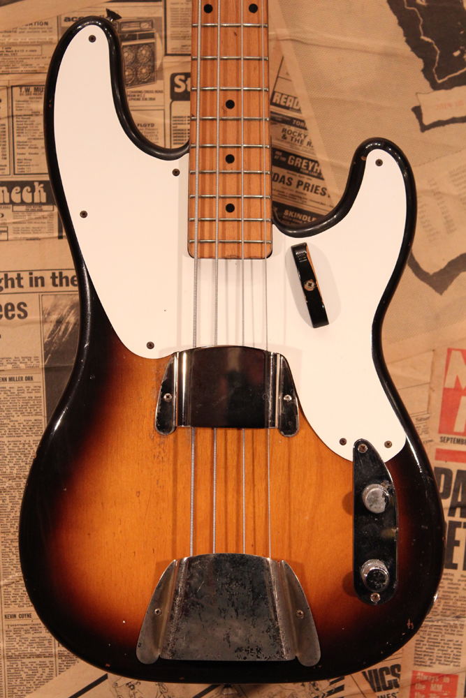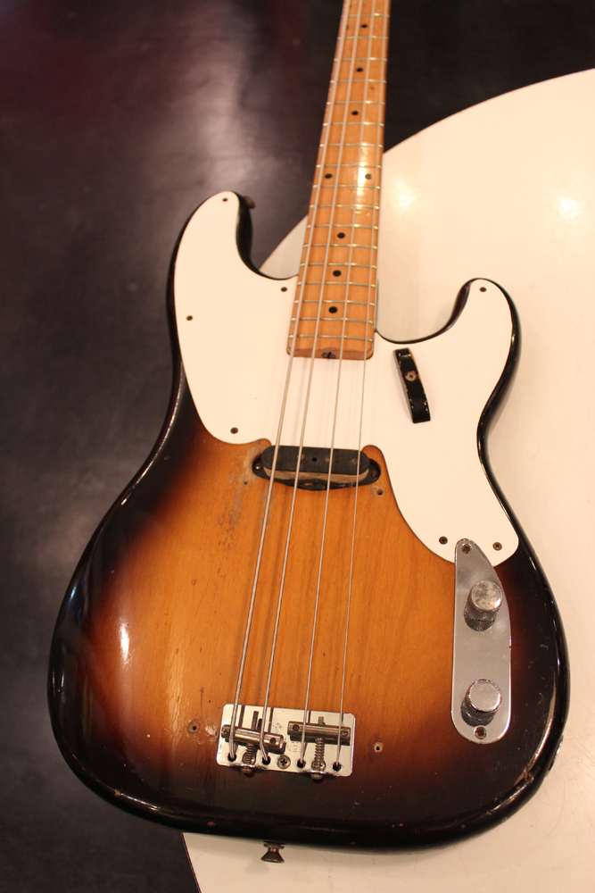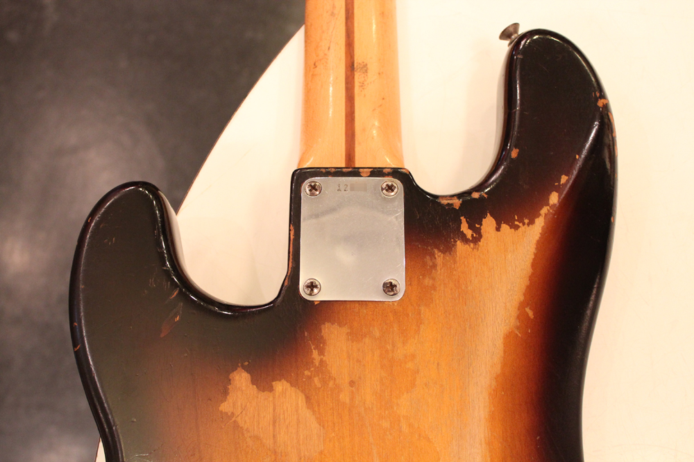 今回入庫は、マイナーチェンジ後の56年後期製で、同じサンバースト・フィニッシュがレギュラーカラーのストラトキャスターと同様に、ボディ材がそれまでのアッシュ材からアルダー材に変更されたばかりの機体で、この仕様の愛用者は、シンガー、コンポーザー、勿論ベーシストとしても著名な"スティング"氏が有名です
