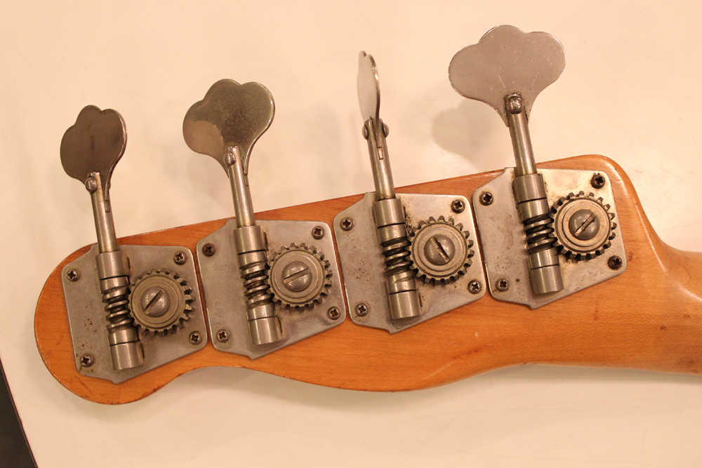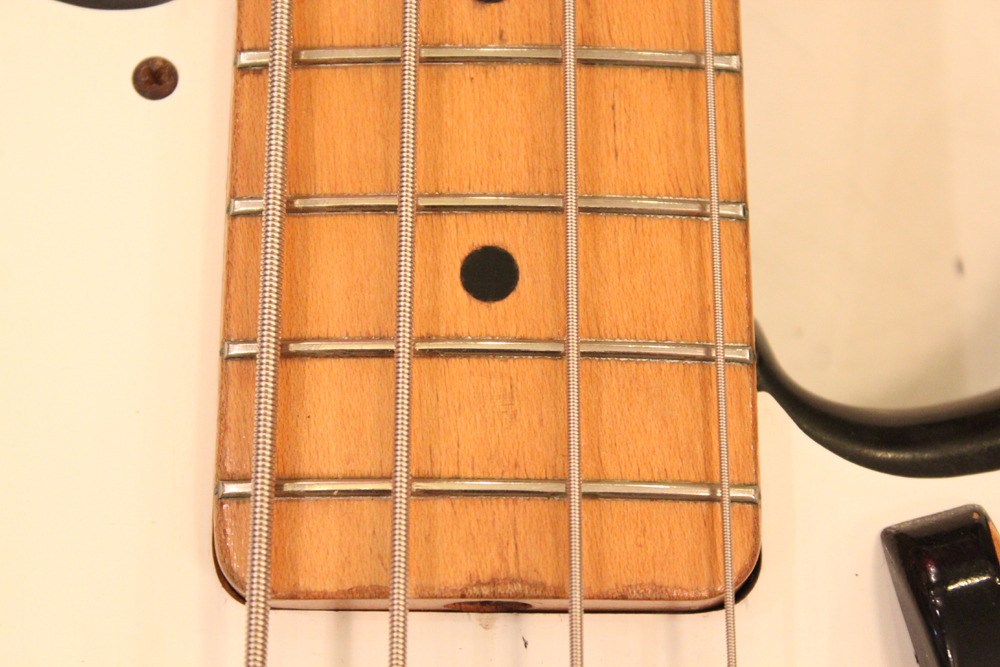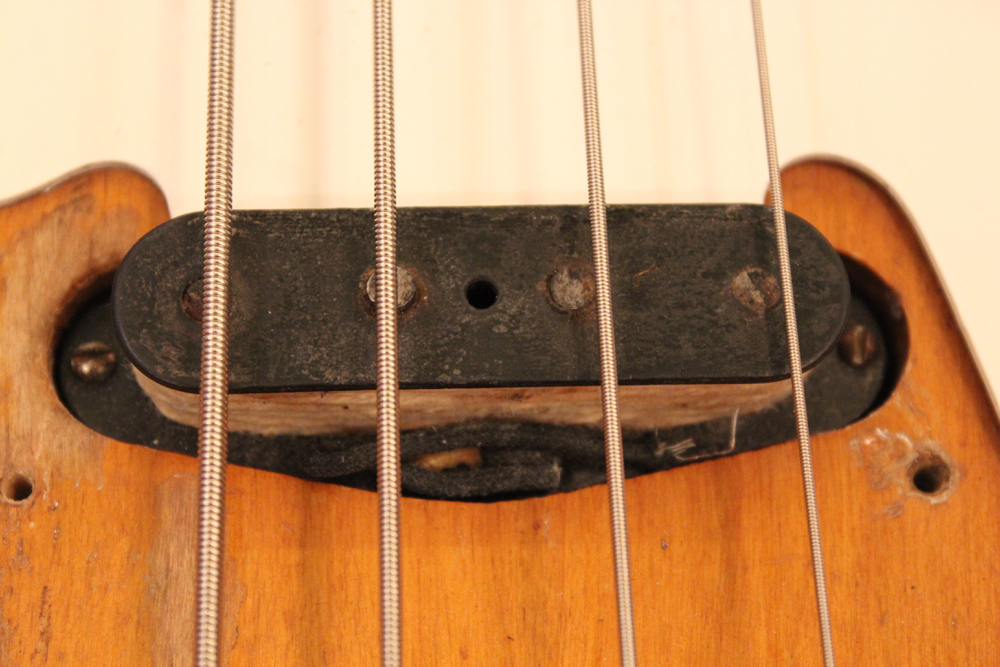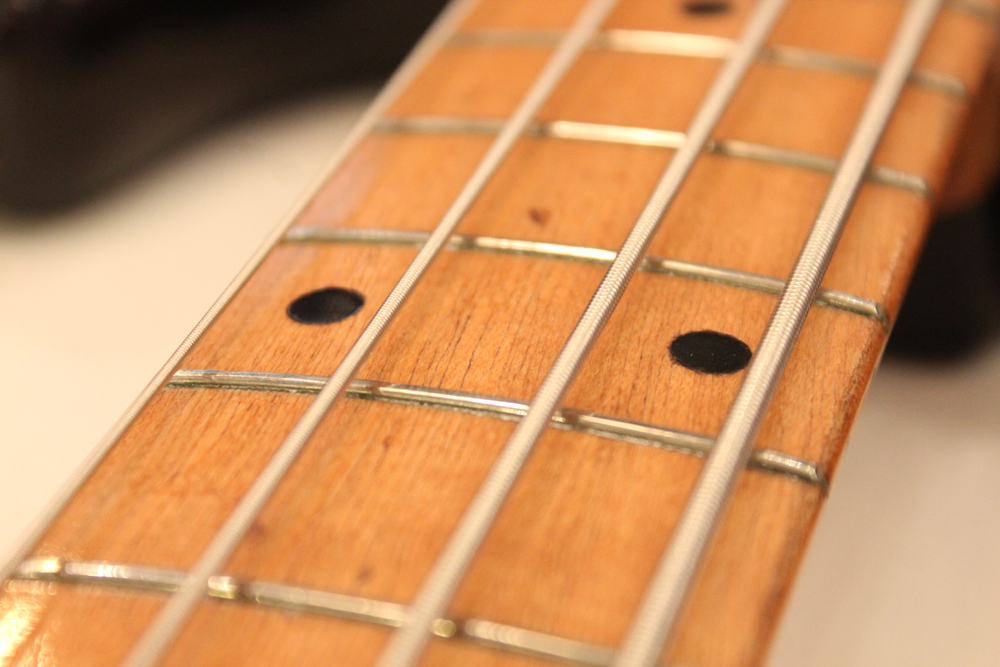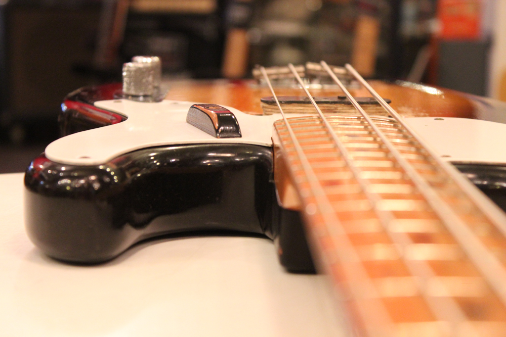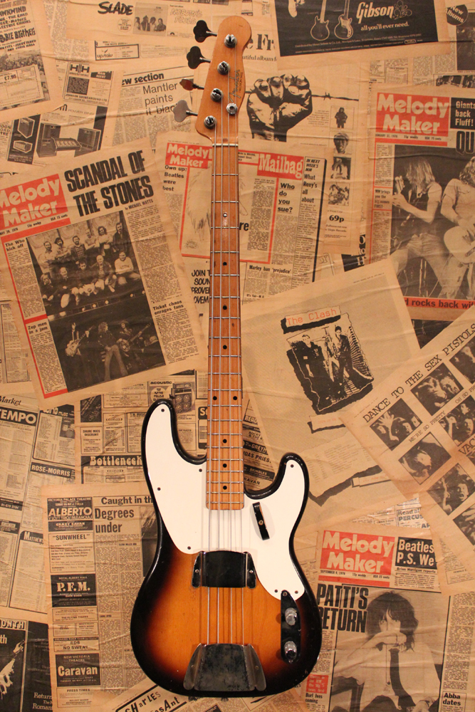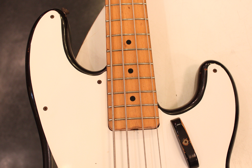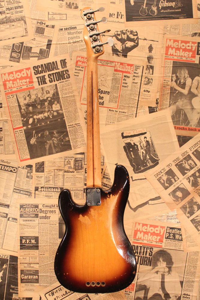 今回入庫は、マイナーチェンジ後の56年後期製で、同じサンバースト・フィニッシュがレギュラーカラーのストラトキャスターと同様に、ボディ材がそれまでのアッシュ材からアルダー材に変更されたばかりの機体で、この仕様の愛用者は、シンガー、コンポーザー、勿論ベーシストとしても著名な"スティング"氏が有名です