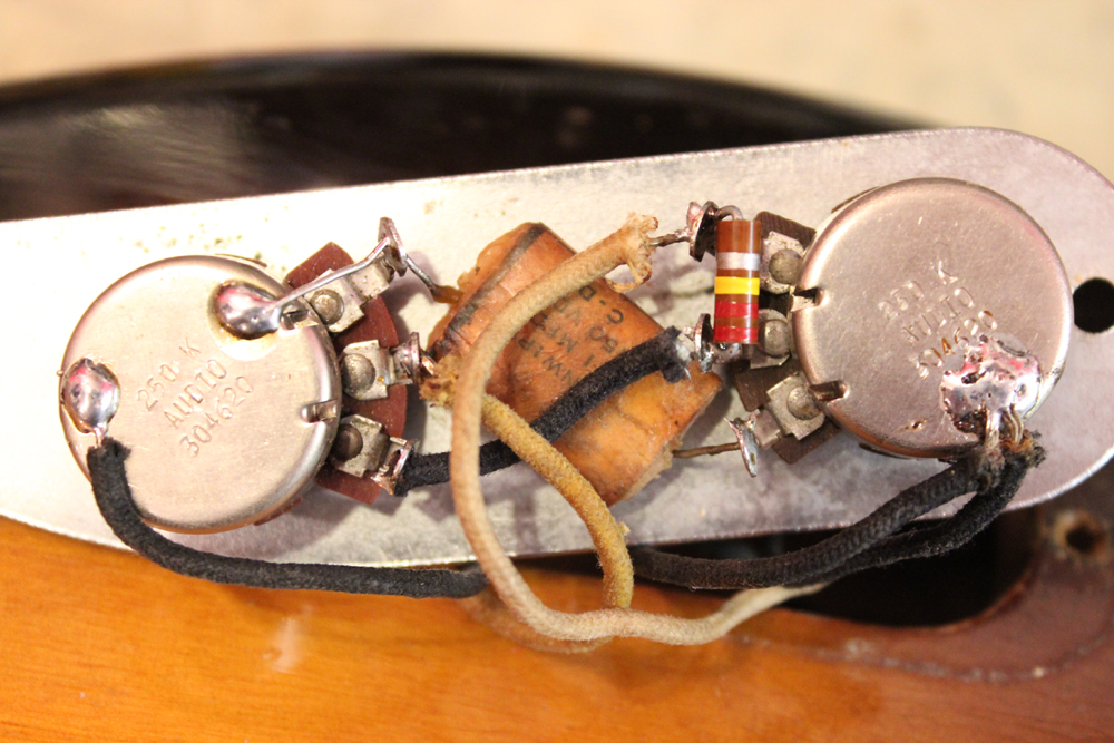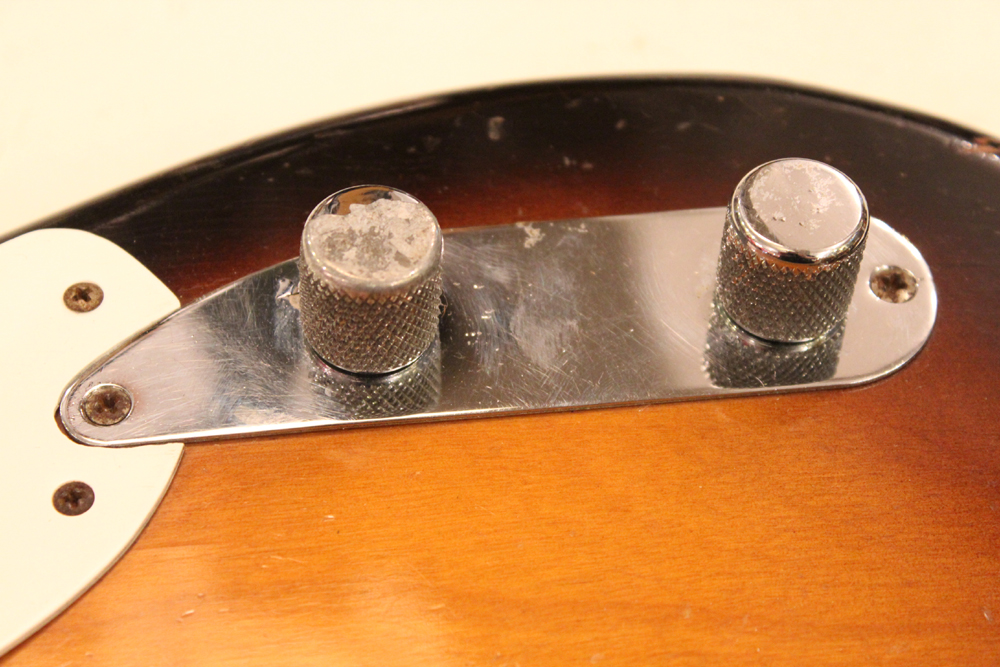 55年に初のマイナーチェンジが施され、それまでのテレキャスターと同様のブロンド・フィニッシュ、スラブ・ボディから、ストラトキャスターと同様なサンバースト・フィニッシュ、コンタード・ボディへとアップグレードがされています