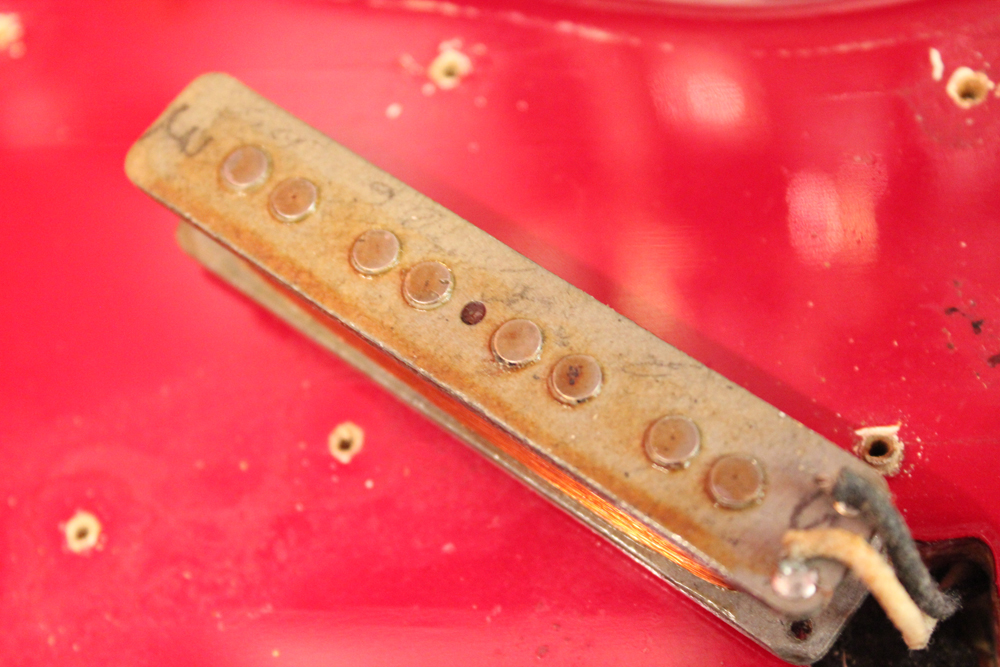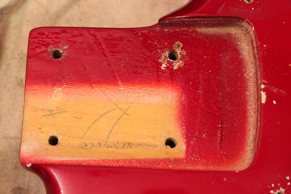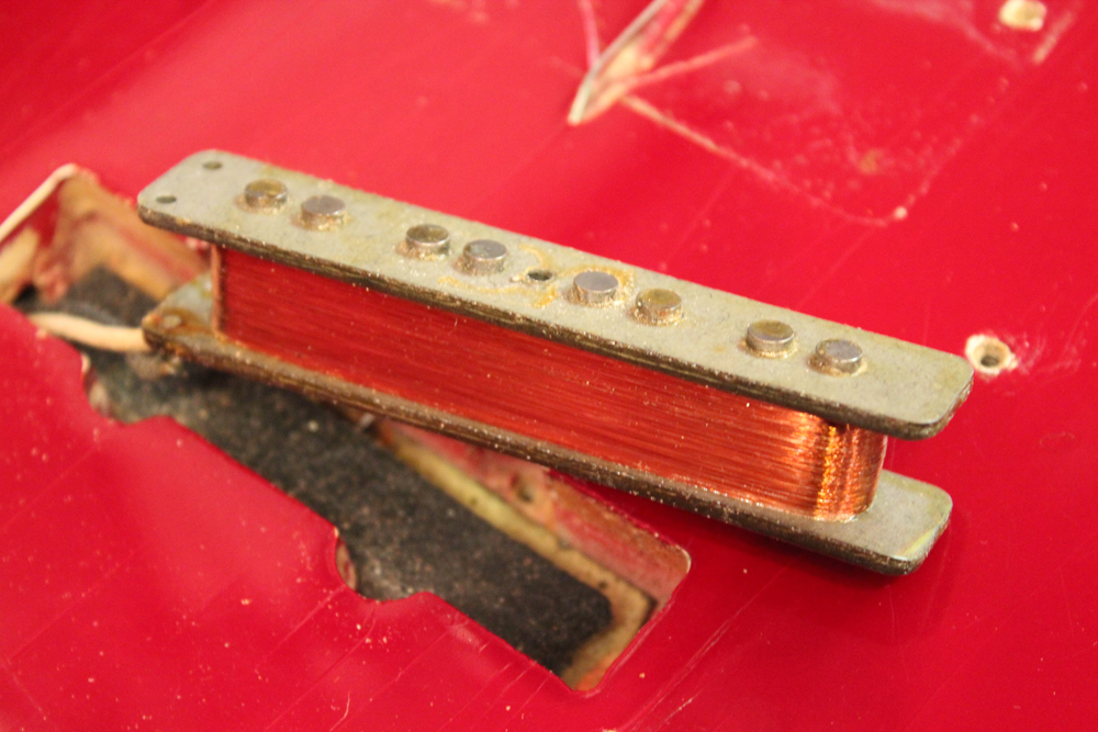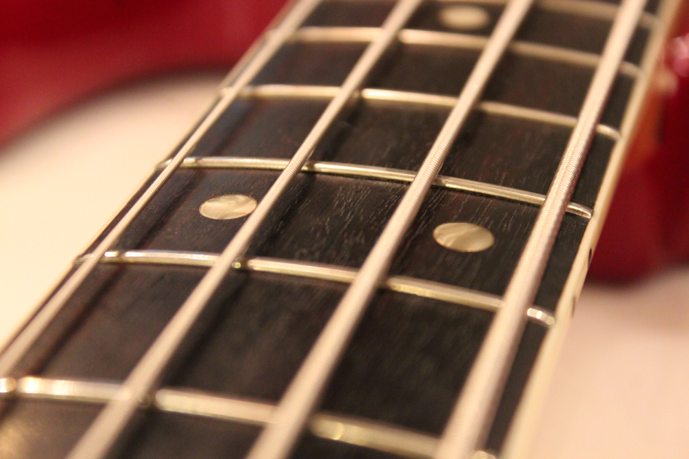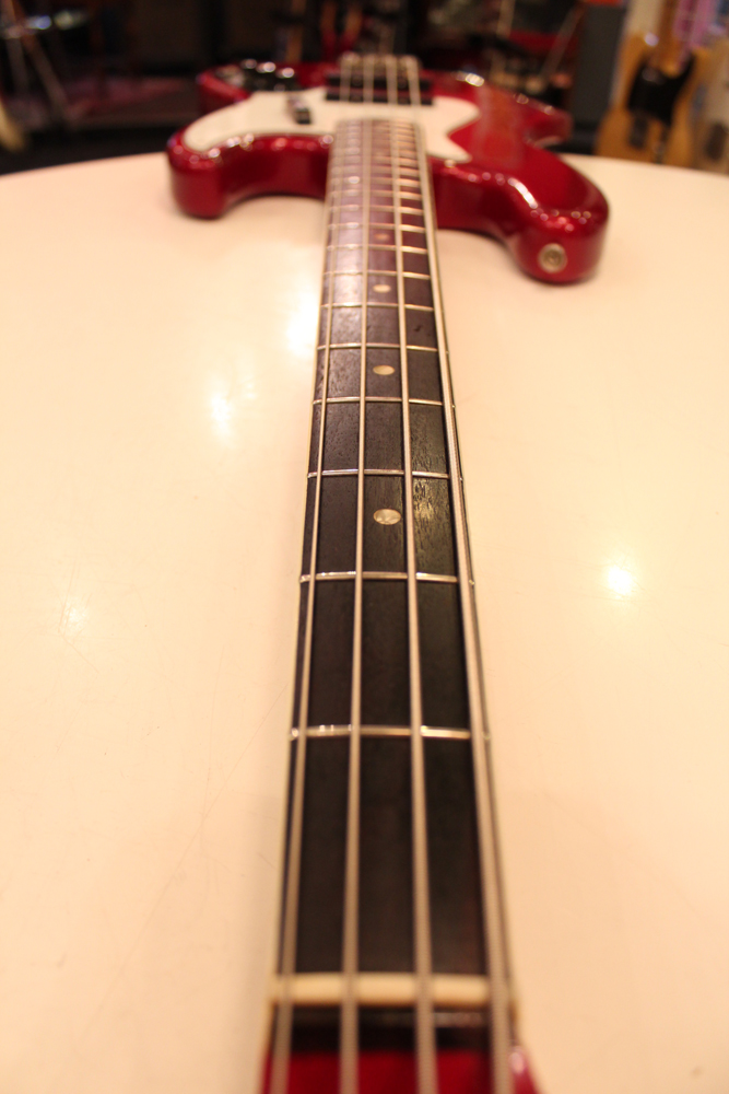 綺麗なキャンディ・レッド・カラーを残した外観は、イエローニングも殆ど見られず、当時のカタログと変わらぬ程、鮮やかなカラーを留めており、濃茶の目の詰まった指板とフレットも大変綺麗で使用感も少なく、その指板を取り巻くネック・バインディングにかかるネックのクリアコートも綺麗な状態を保った、エクセレント・クリーン・コンディション!