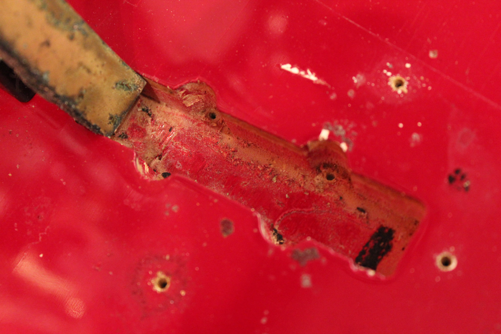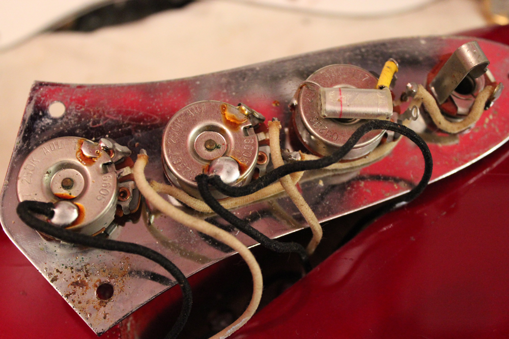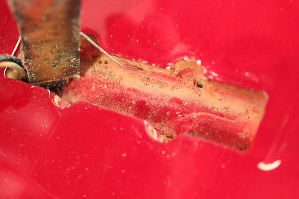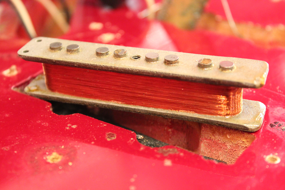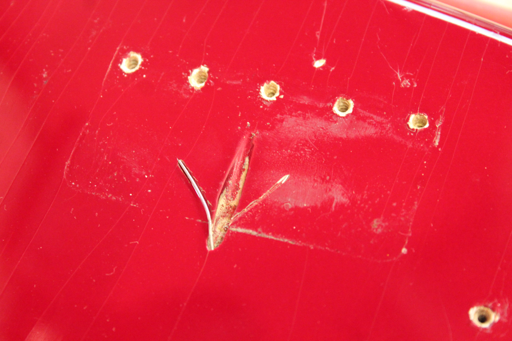綺麗なキャンディ・レッド・カラーを残した外観は、イエローニングも殆ど見られず、当時のカタログと変わらぬ程、鮮やかなカラーを留めており、濃茶の目の詰まった指板とフレットも大変綺麗で使用感も少なく、その指板を取り巻くネック・バインディングにかかるネックのクリアコートも綺麗な状態を保った、エクセレント・クリーン・コンディション!