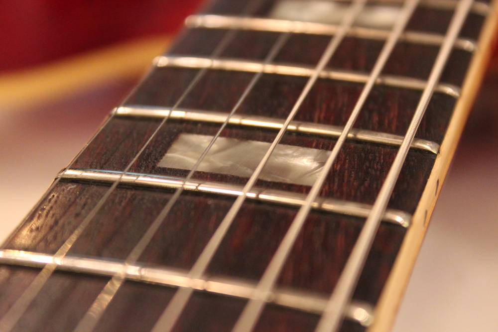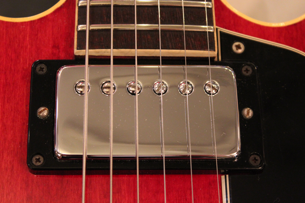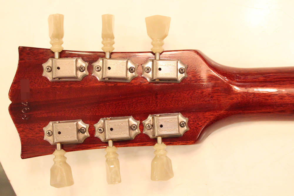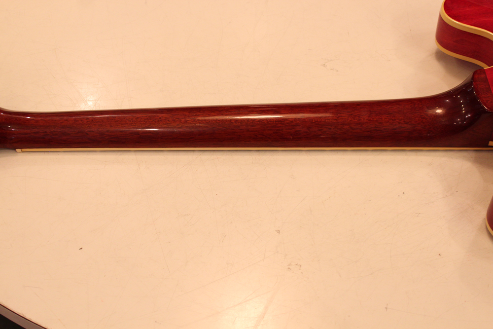 今回入庫は、50年代から続いていたマホガニーのワンピース・ネックから、69年からのスリーピースのマホガニー・ネックへと仕様変更が行われた直ぐ後の70年製で、"F"ホール内に貼られたCMI期・ギブソン社の証、"オレンジ・ラベル"仕様の最終期で、ネックもスモール・ヴォリュート、ノー"Made in USA" 刻印の69年後期から70年初期の仕様です