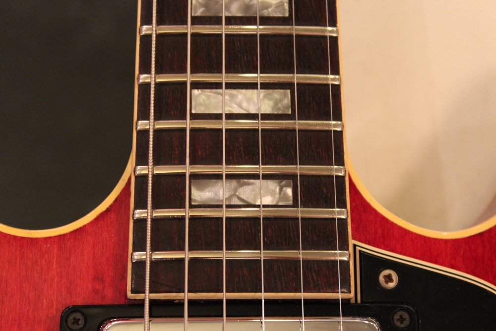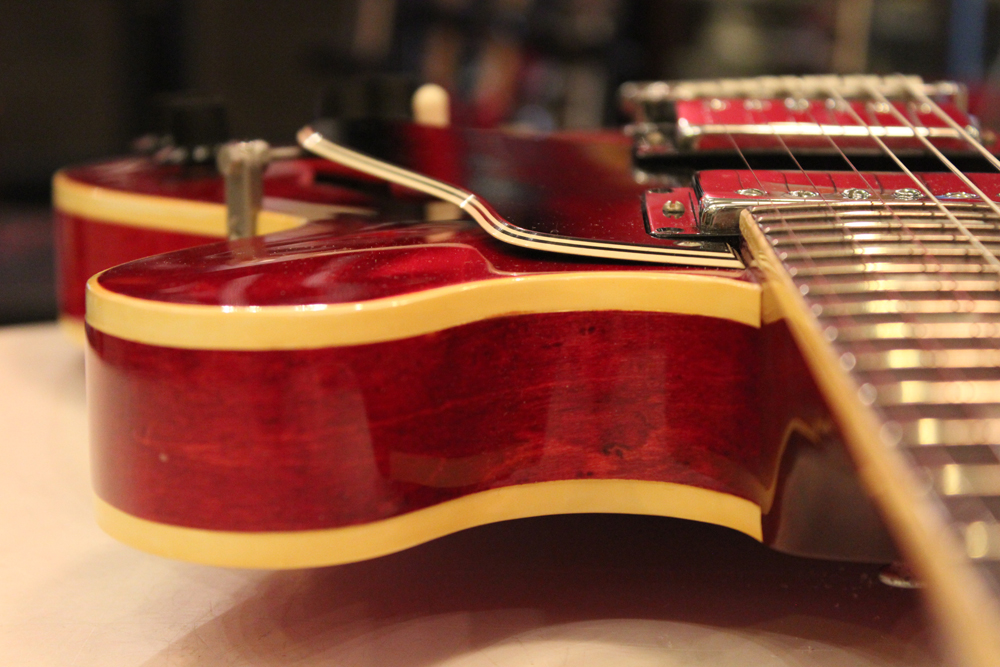 人気のチェリーレッド・フィニッシュ & スモールブロック・インレイのES-335TDC