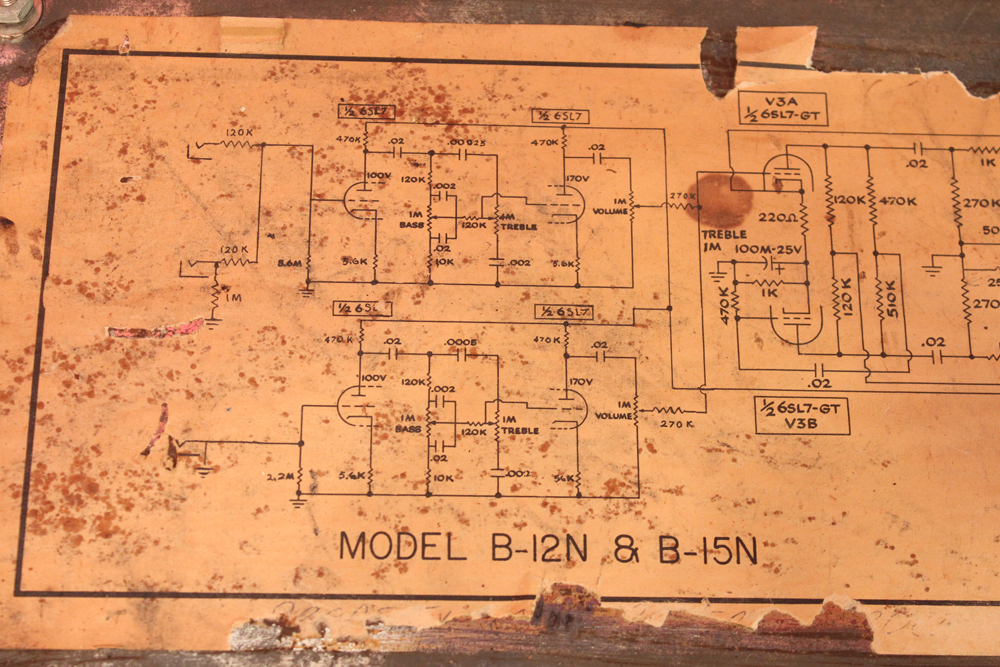 今回入庫は初期のブルー・グレイ・トーレックスから、ブルー・ダイヤモンド・トーレックスに変更された62年製で、数多くの"B-15N"を販売してきた当店の入庫歴の中で比較してみても、大変綺麗な状態を留めた、ニア・ミント・コンディション! この外観を守る為に、幾らか痛みが見られますが、オリジナルのブルー・ダイヤモンド柄のアンプ・カバーも付属!