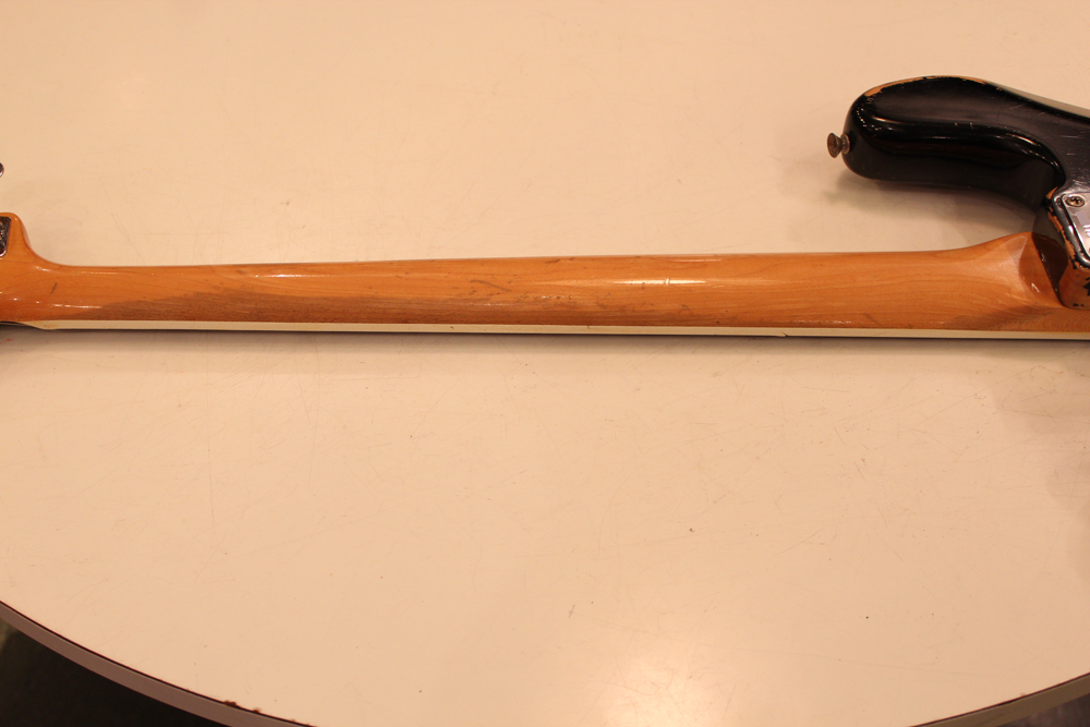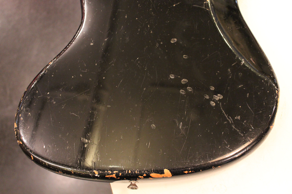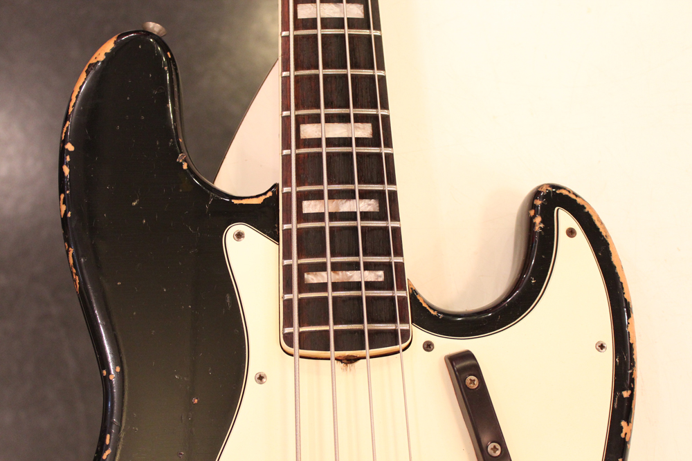 ブロック・マーカー・フィンガーボード初期 のジャズ・ベースを見つけて来ました!今回見つけて来た個体は、フェンダー・カスタム・フィニッシュの中でも非常に珍しいブラック・フィニッシュ!外観はヴィンテージ・ギアとしてのウエアやウエザーチェックはございますが、内容は アウトジャックとペグのリプレイス以外はオリジナルをキープ!カラー物ながらしっかり弾かれてきた外観からも想像出来るように、指引き、スラップどちらにも対応し易い、オールマイティーなこの時期ならではのグッド・トーンが魅力!ルックスも、弾かれてきたカスタムカラーのヴィンテージは本当にカッコ良い、クール・ルッキンなブラック・ジャズベースです!Pot Date / 137 6642 x3