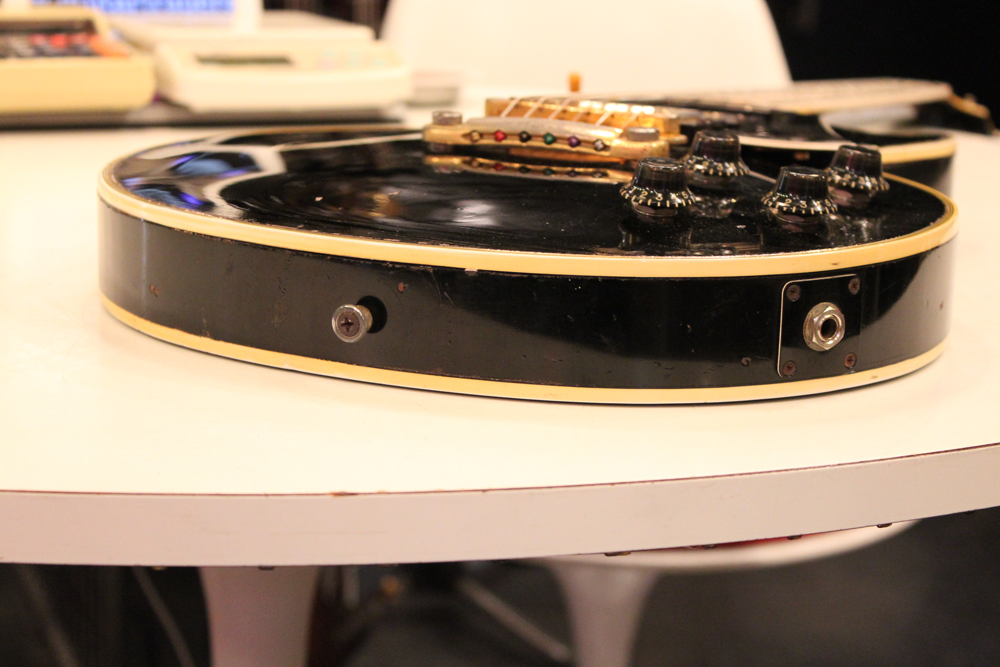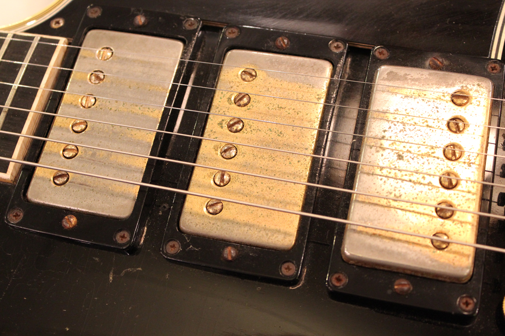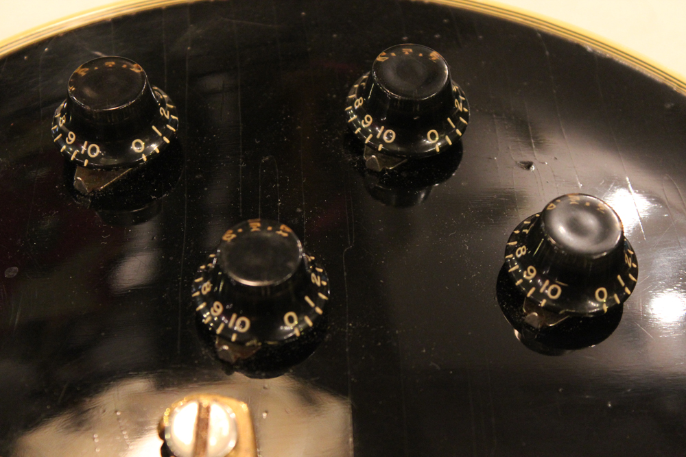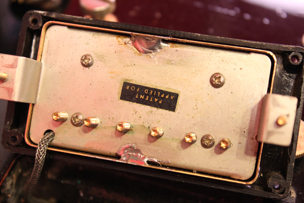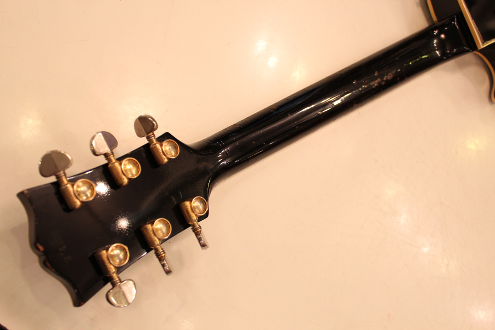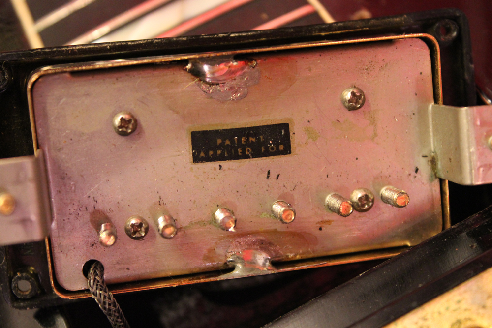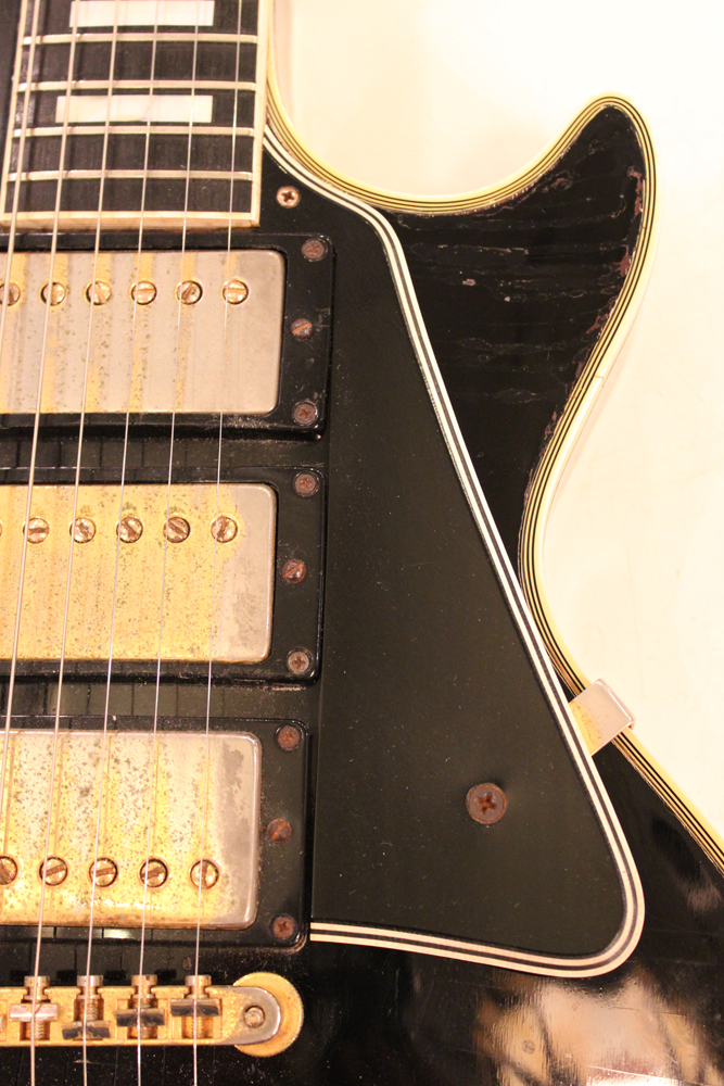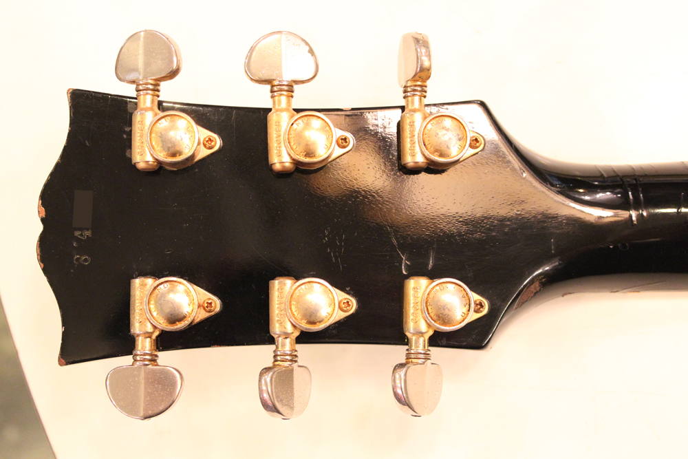 こちらは、そのカスタム最初のマイナーチェンジとして57年に登場した、"Patent Applied For" のデカールが貼られたハムバッキング・ピックアップを3基搭載されたセカンド・バージョンで、グローバー 102G ペグが標準搭載された