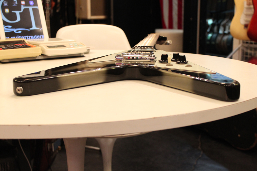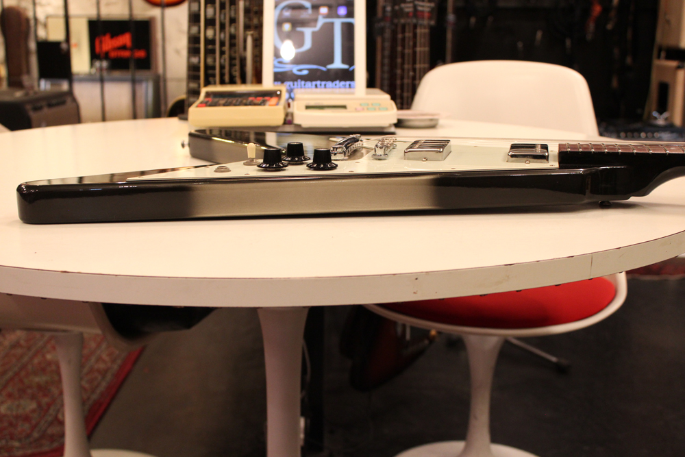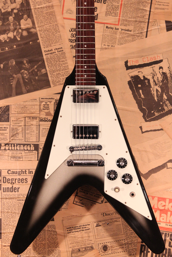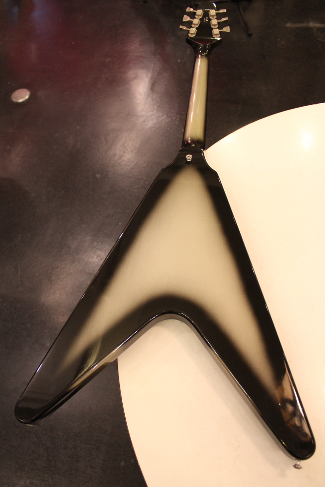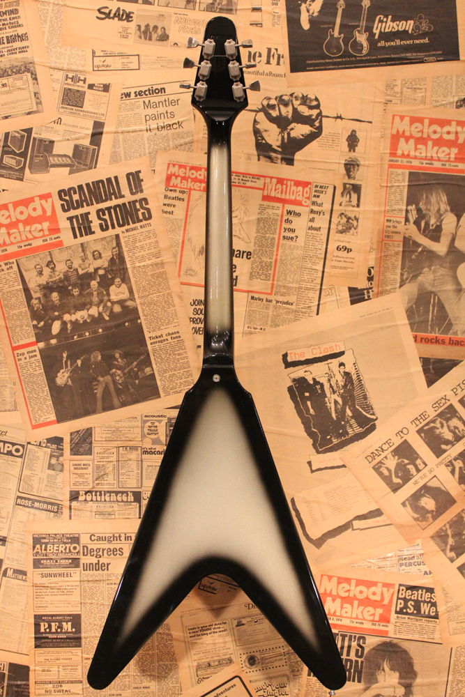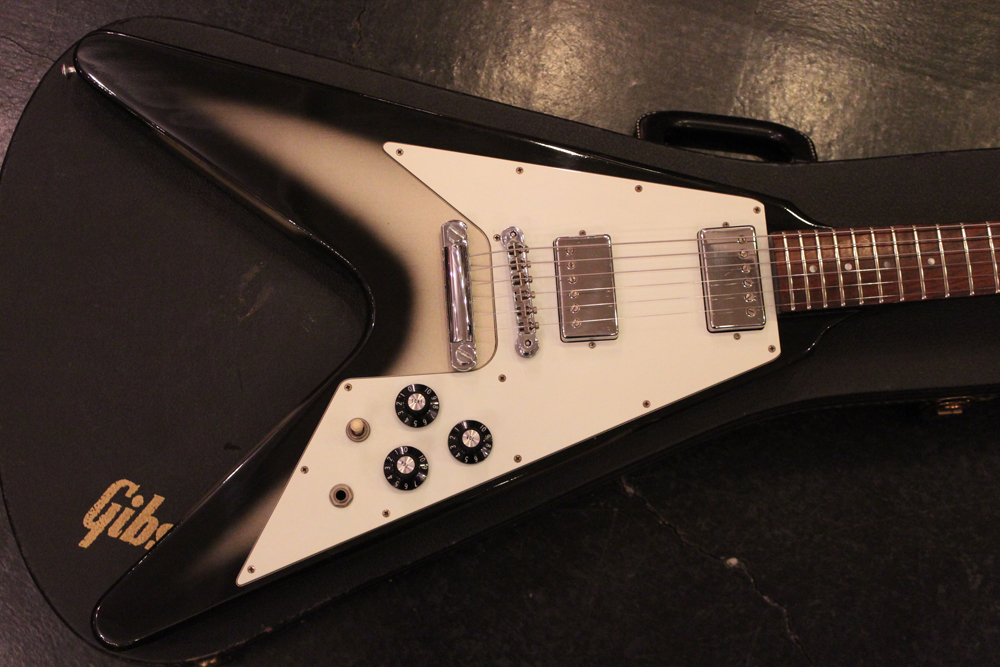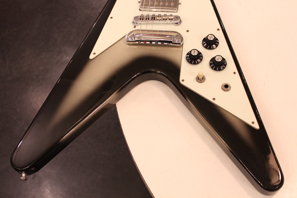 今回入庫分は、シルバー・バースト初期の79年製で、58年から続いたフライング・Vの木取りの、センター・ツーピース・ボディの最終期です