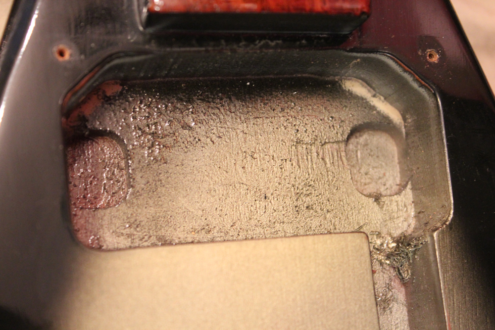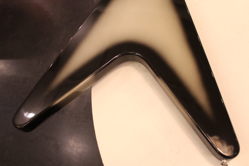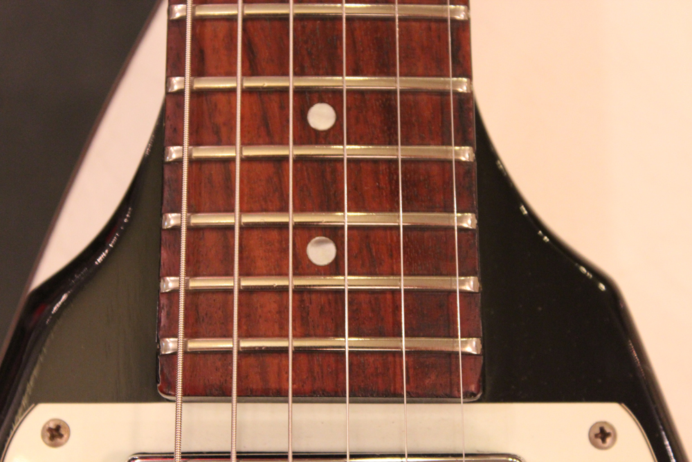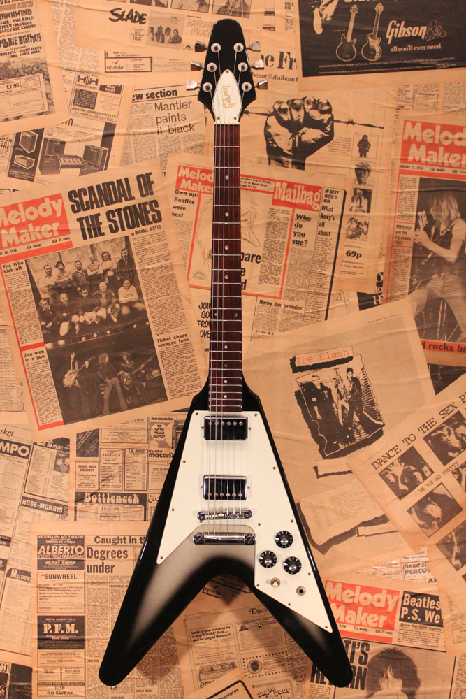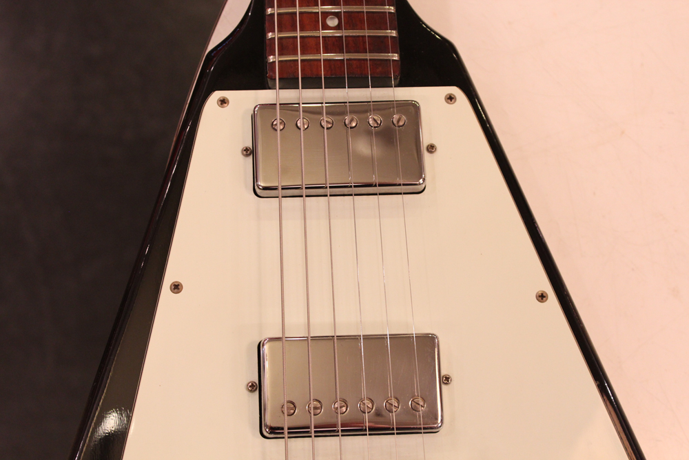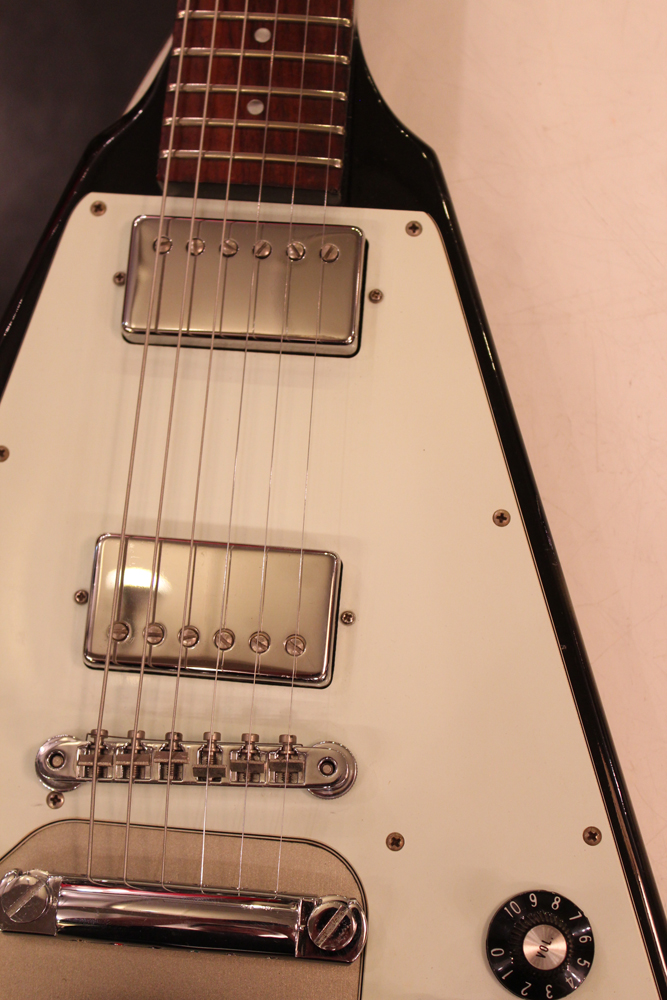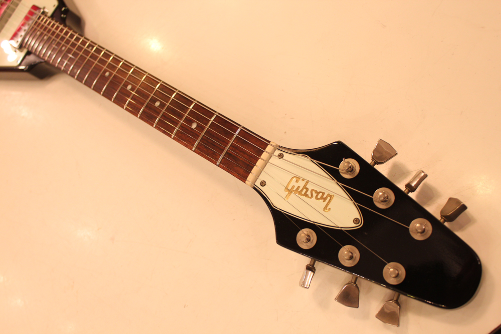 今回入庫分は、シルバー・バースト初期の79年製で、58年から続いたフライング・Vの木取りの、センター・ツーピース・ボディの最終期です