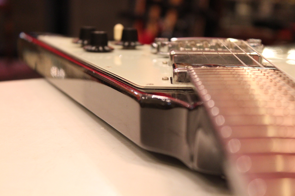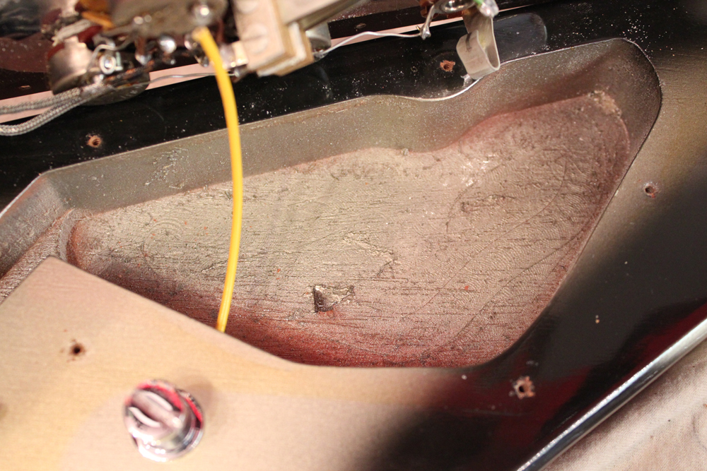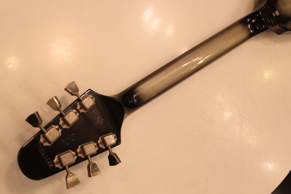 この時期のギブソン・ギターのいくつかのモデルで限定的に生産されたカスタムカラーで、シルバー・メタリックの外周をグレーからブラックにバーストがかるようにフィニッシュされた、とてもクールなカラーです