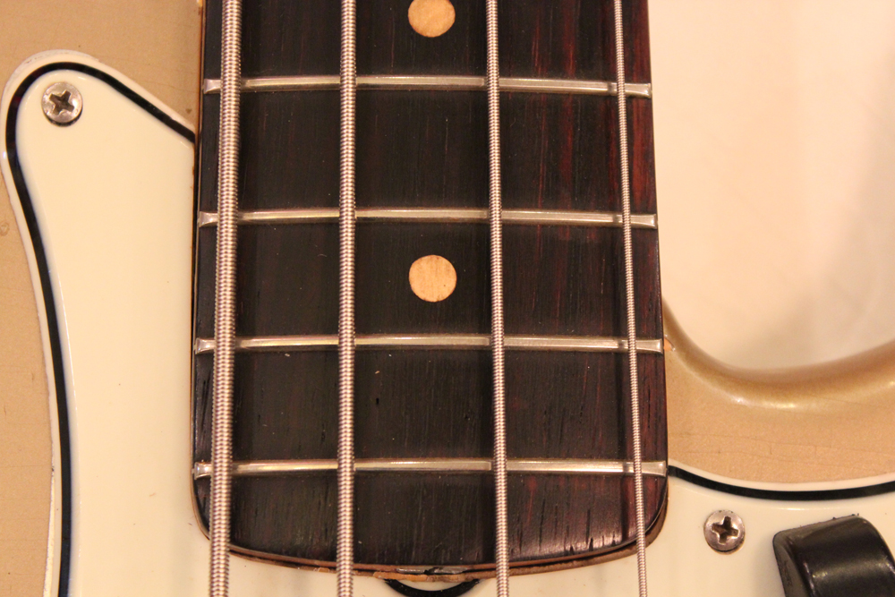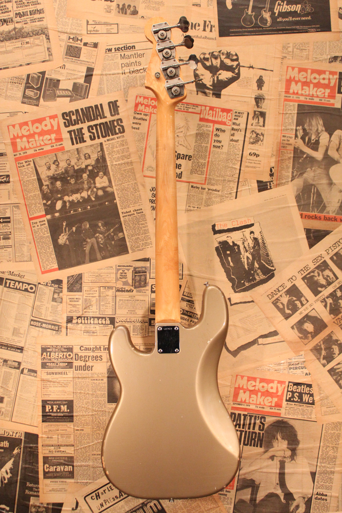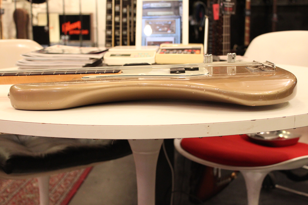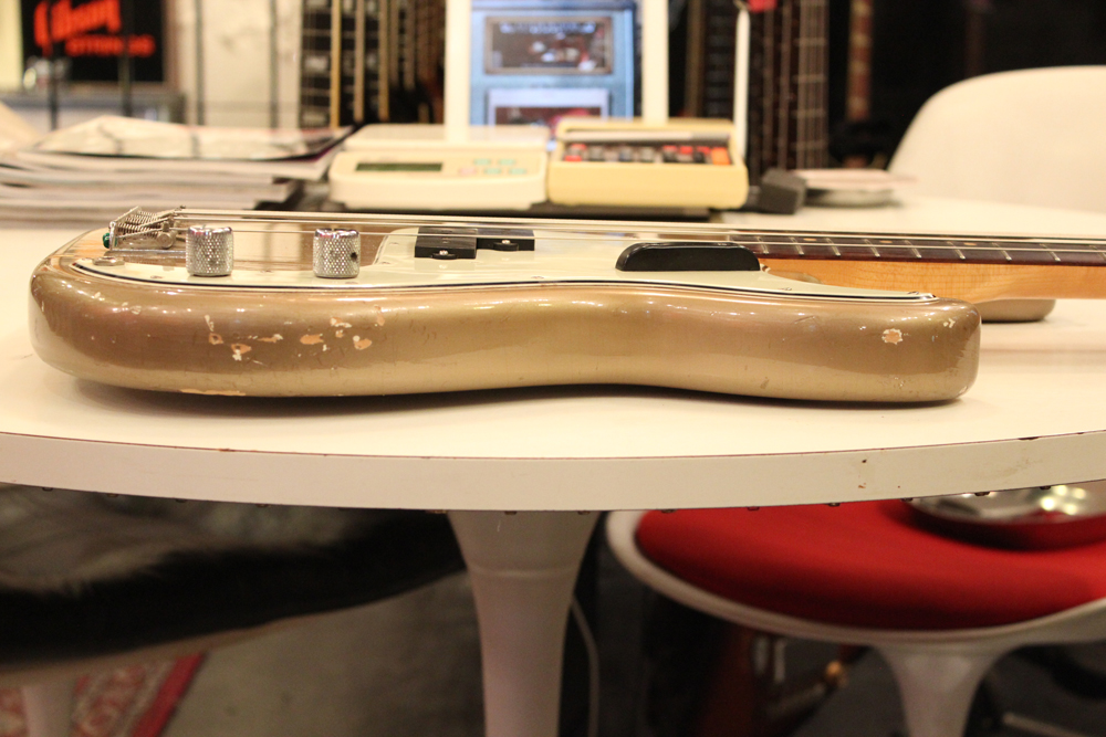 プリCBS期、ドットマーカー・ネックのカスタムカラー、オリジナル・ショアライン・ゴールド・メタリック・フィニッシュの、64年製 プレシジョン・ベースを見つけて来ました!