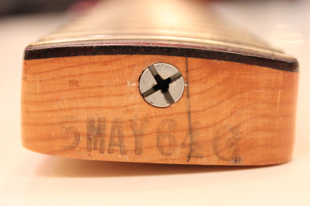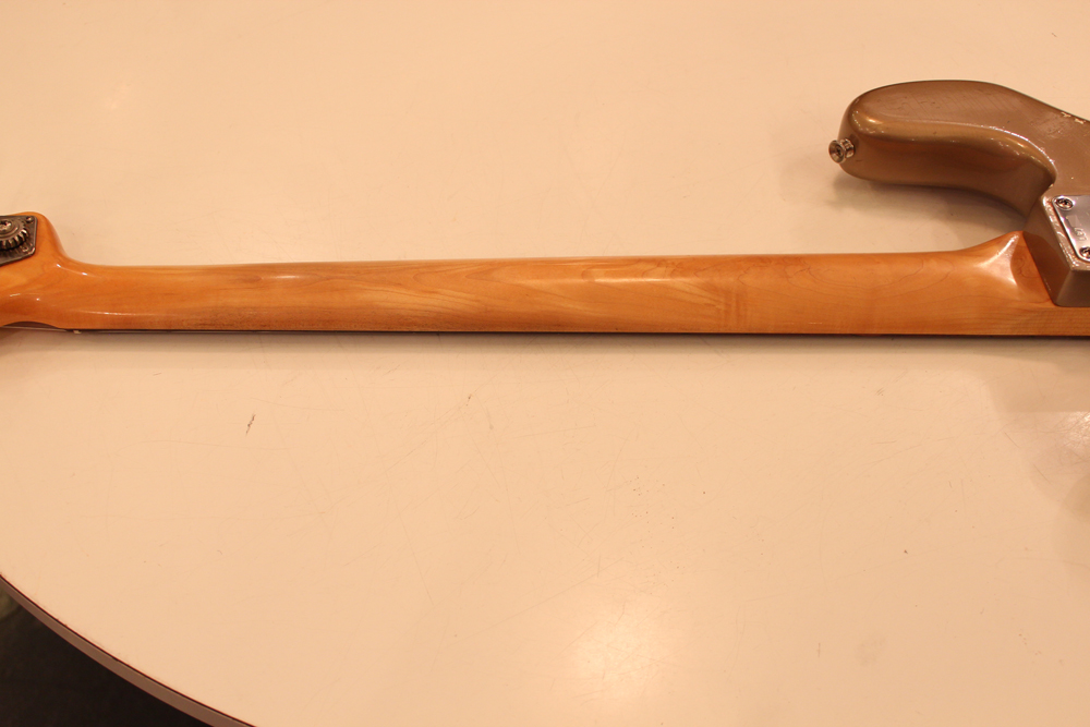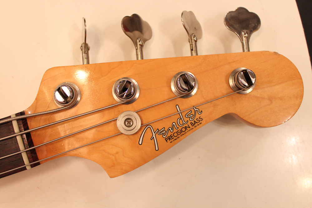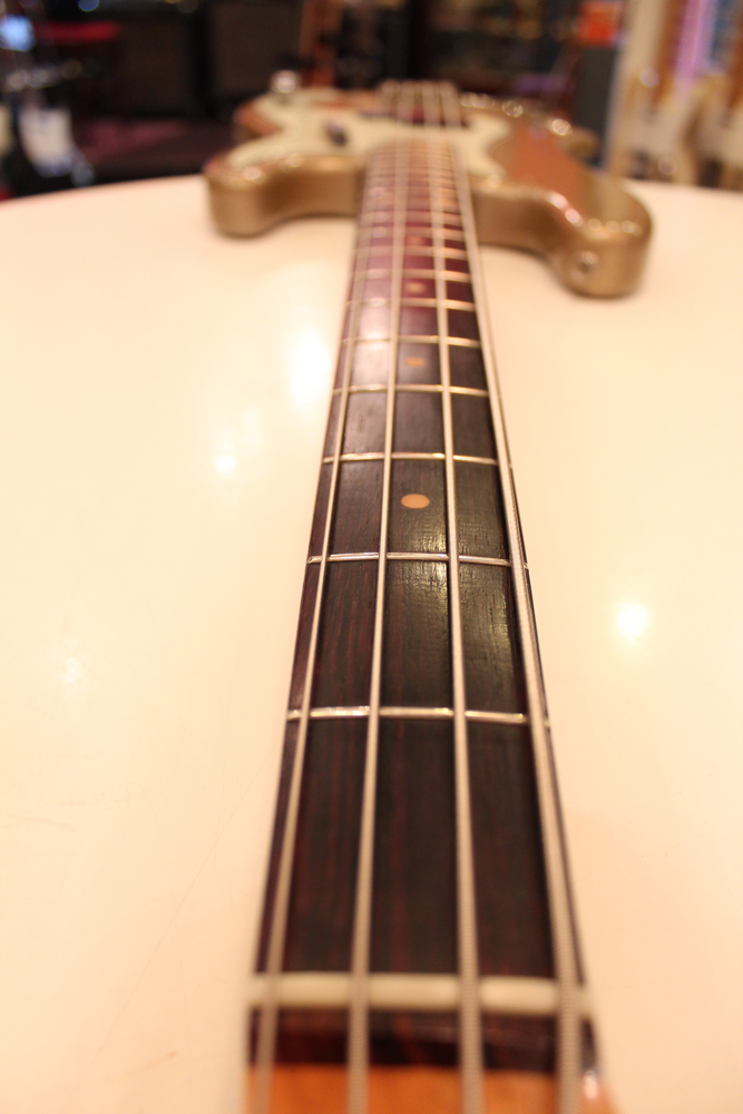 特にプレシジョン・ベースの場合、スパゲッティ・ロゴ期のカスタムカラーは非常に数が少ない為、市場でもまず見つける事が困難ですが、こちらの機体は、ネックジョイント部に"Show"との記載がされている為、当時のトレードショウ用に制作された機体のようです