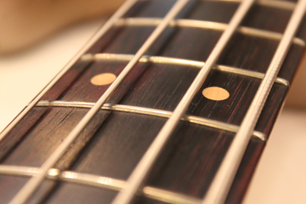 良く目の詰まった漆茶な指板を持ったネックはストレートでプレイアビリティも良く、内容も変更点の無い、オール・ストレートのフル・オリジナル!