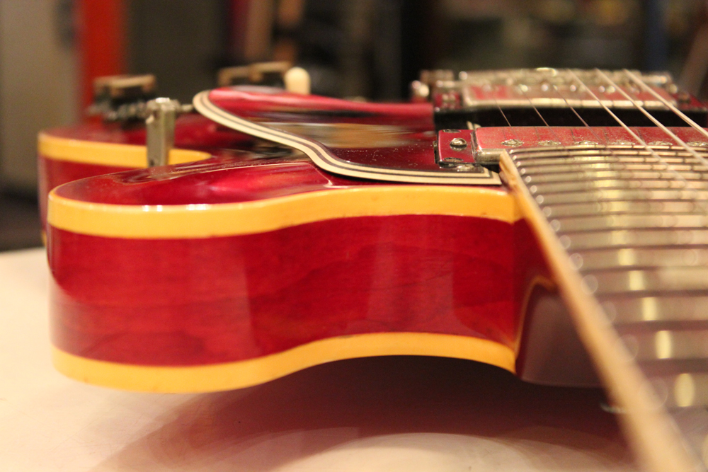 少しシャープな所謂60年代シェイプの治具に変更されていきます今回入庫は、オリジナル・ストップ・テールピース仕様で、チェリーレッド・フィニッシュのフェイディングも殆ど無いエクセレント・クリーン・コンディション!