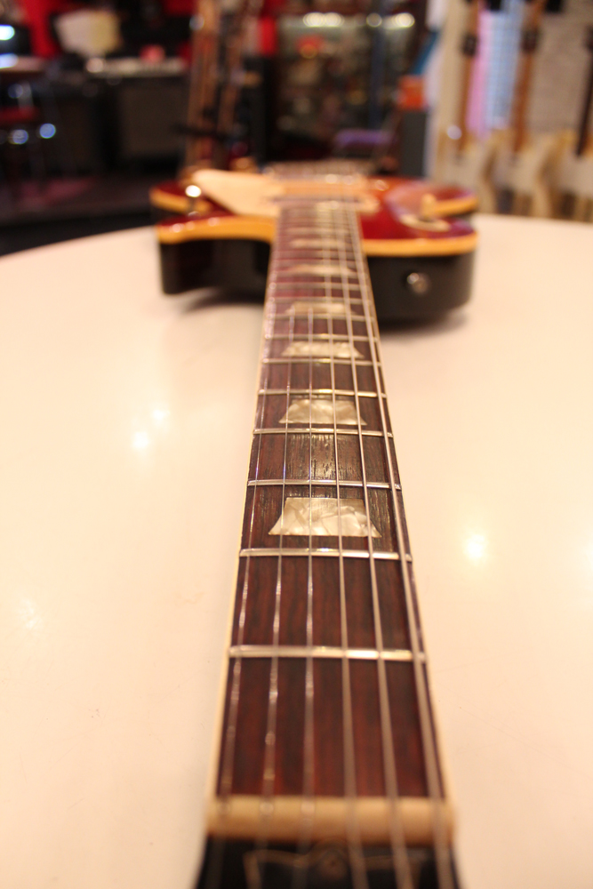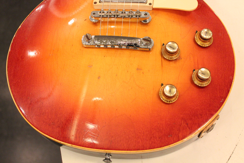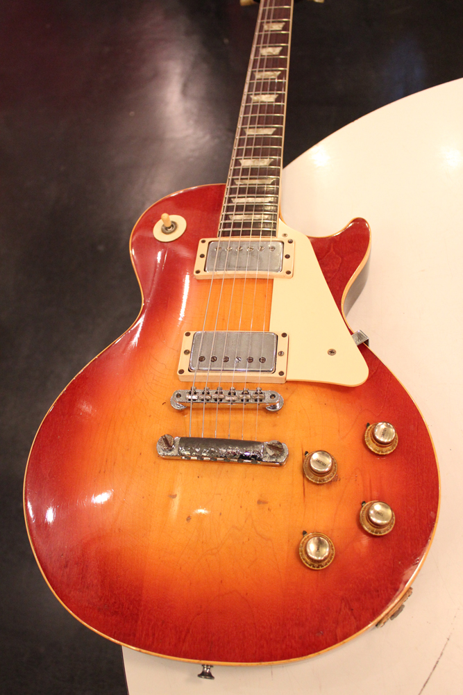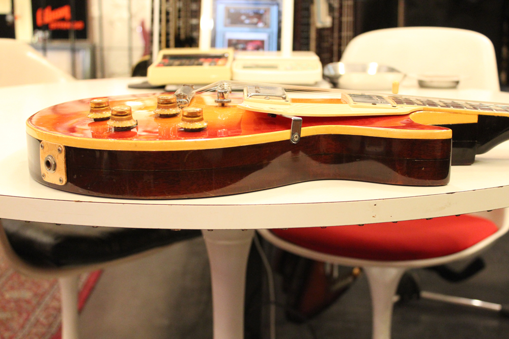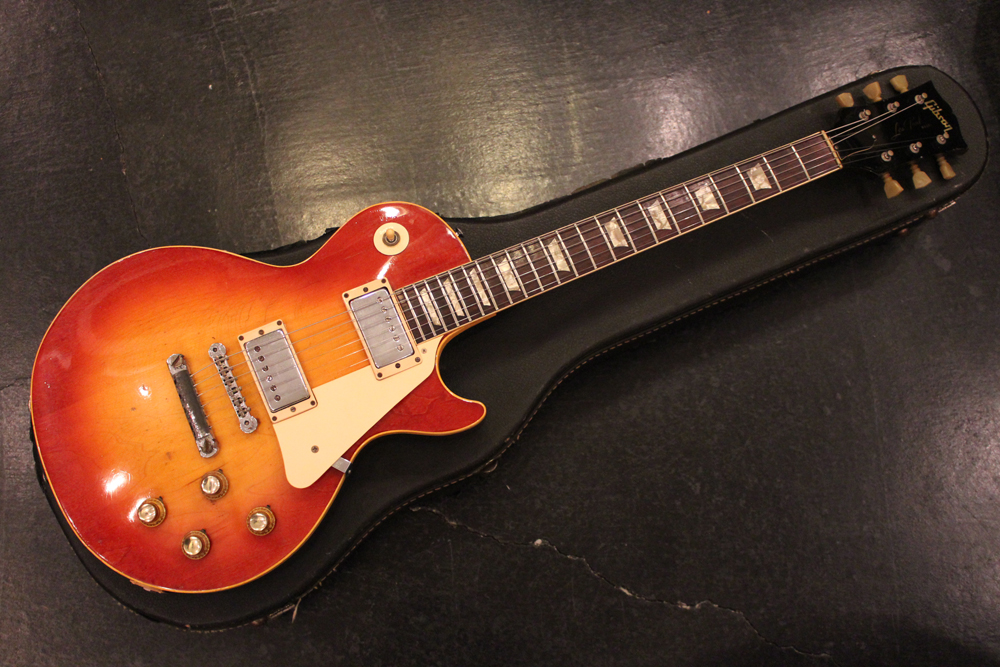 70年代初期の機体としては、以前にも、ゴールド・トップ/ナチュラル・マホガニー・バックや、ブラウン・サンバースト/ ダーク・ナチュラルバックの機体を発掘して来ましたが、今回入庫は、珍しいチェリー・サンバースト / ダーク・ナチュラルバック・フィニッシュのスタンダード!