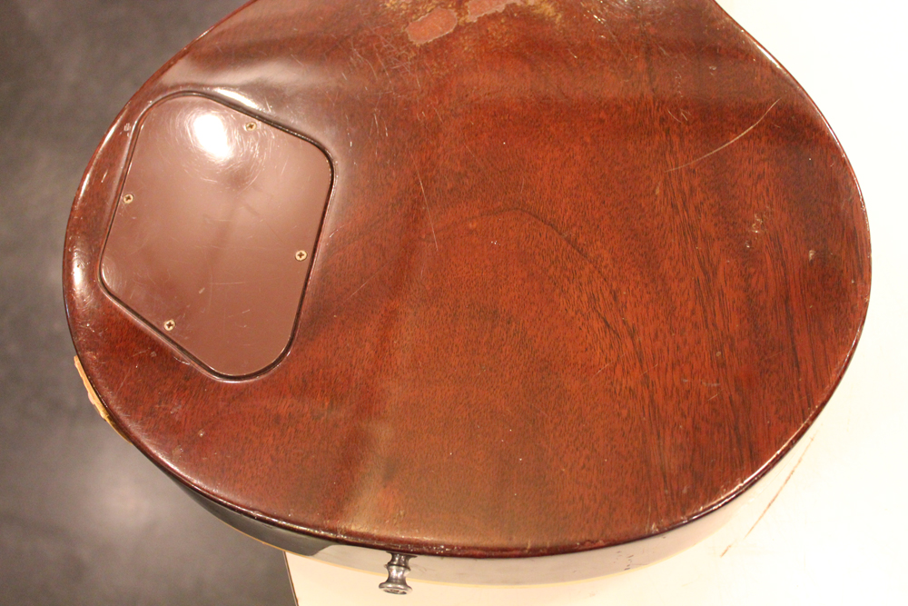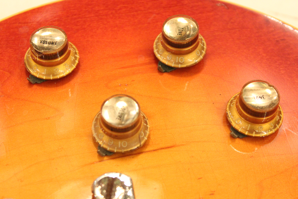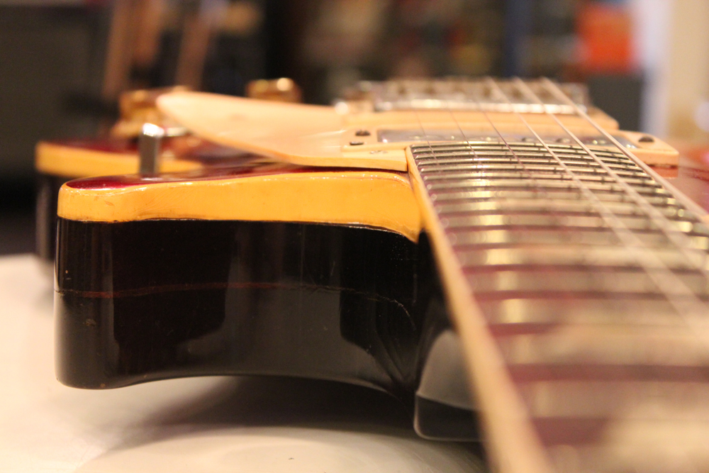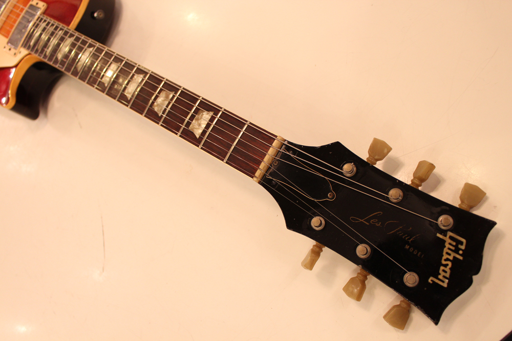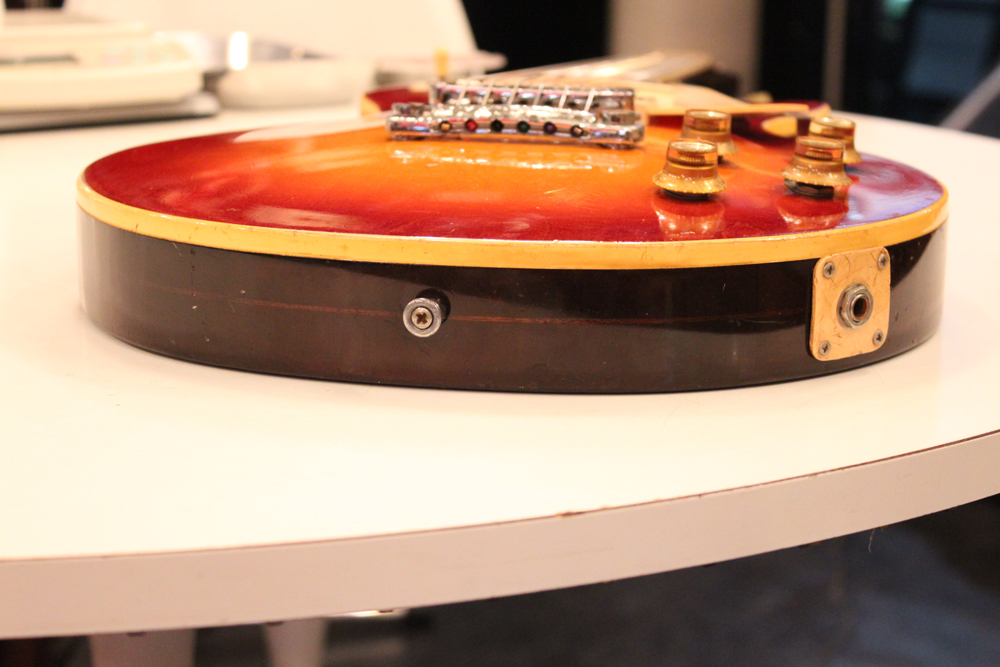 70年代初期の機体としては、以前にも、ゴールド・トップ/ナチュラル・マホガニー・バックや、ブラウン・サンバースト/ ダーク・ナチュラルバックの機体を発掘して来ましたが、今回入庫は、珍しいチェリー・サンバースト / ダーク・ナチュラルバック・フィニッシュのスタンダード!