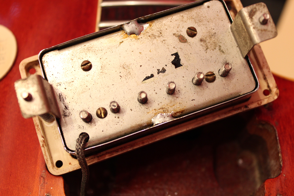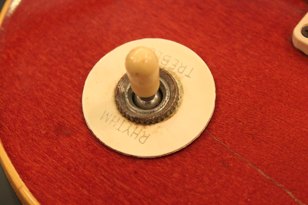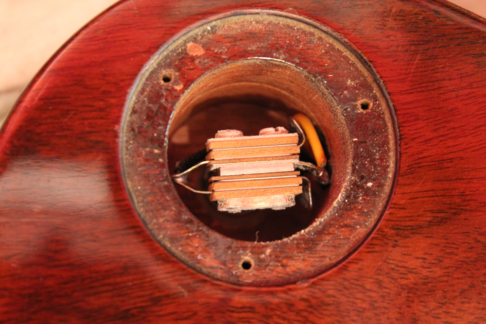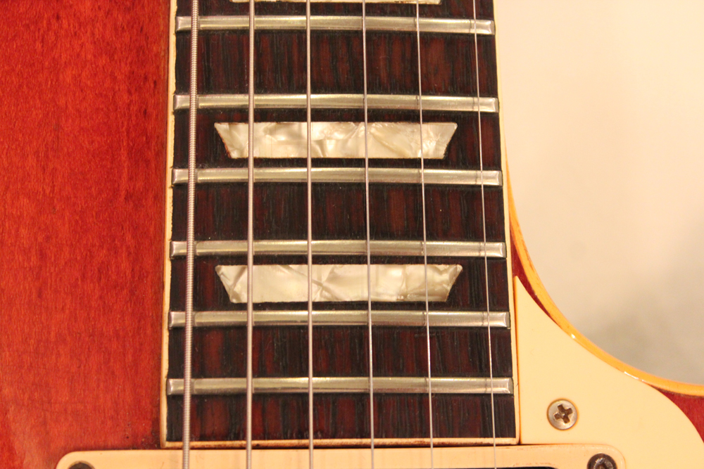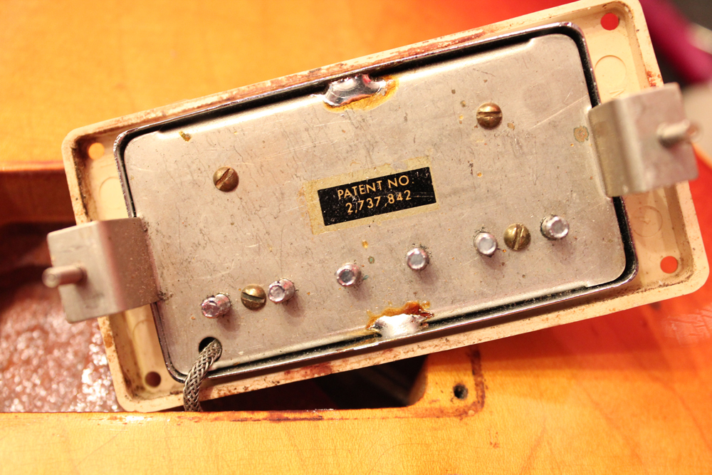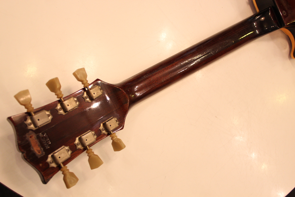 75年に、新しいナッシュビル・ファクトリーにてレギュラー的な扱いで、マホガニー・ネックのラージハムバッカー仕様、トップ、バック、ネック全てのフィニッシュがダーク・サンバースト、ピックアップは刻印ナンバード、という仕様の物が発売され市場でも時折目にしますが、こちらは勿論、カラマズー・ファクトリー・メイドで、ピックアップにはステッカード・ナンバード・PAFを搭載!