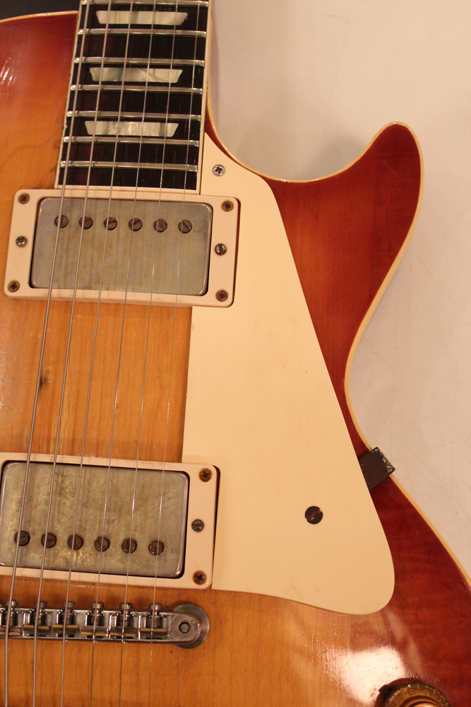 オリジナル・チューン・オー・マチック・ブリッジ仕様の、55〜56年製ゴールド・トップ・レス・ポールをベースに、バースト・スタイルにしたコンバージョン・レスポール!