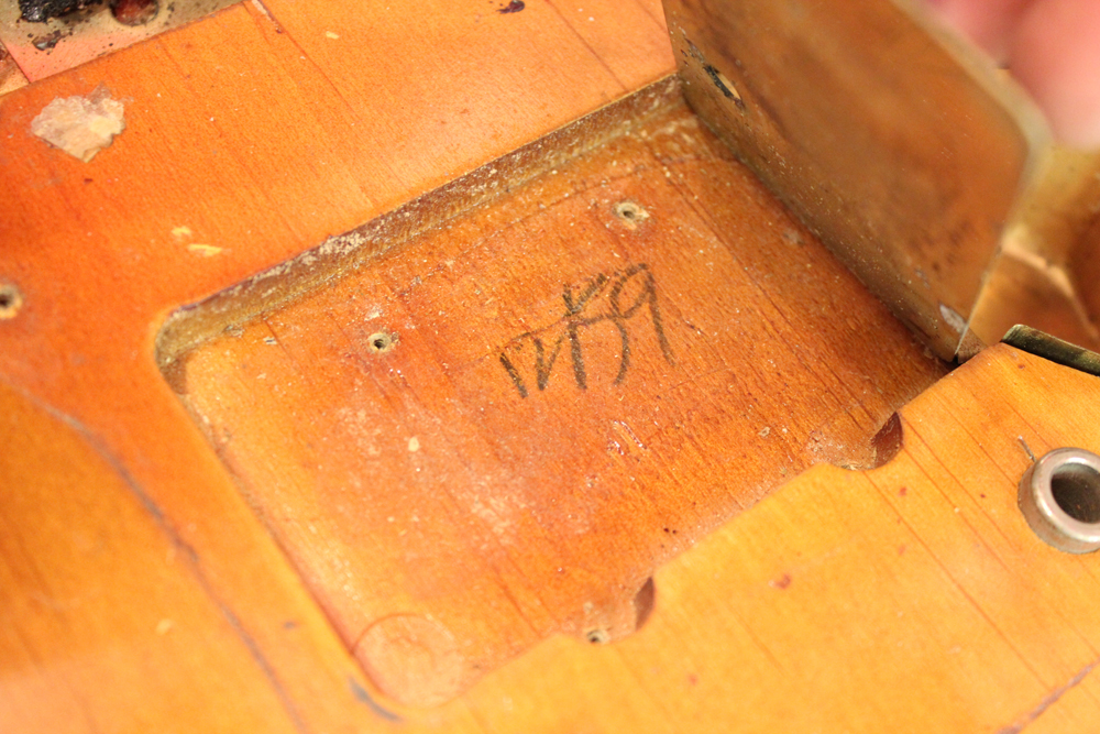 ボディデイトは59年12月、ネックは59年特有のノーデイト、ヴォリューム・ポットのみ60年デイトとなっていますこの時期までのフェンダーは、塗膜の薄いサンバースト・フィニッシュが採用されている為、荒れた外観の個体も多いのですが、今回入庫は、年式を考慮しても綺麗な状態を留めた、エクセレント・プラス・コンディション!