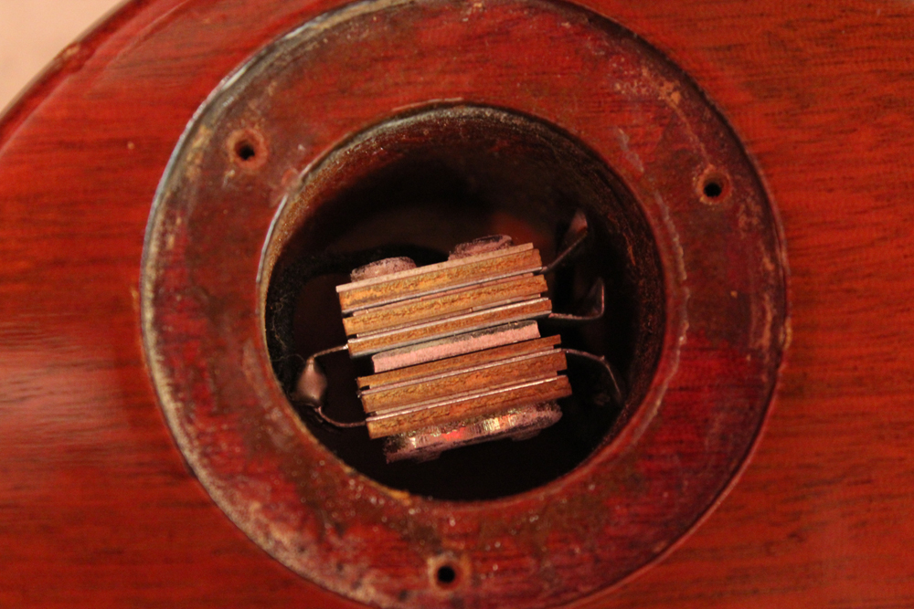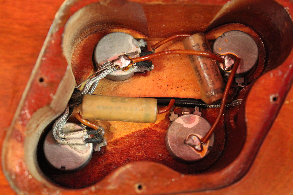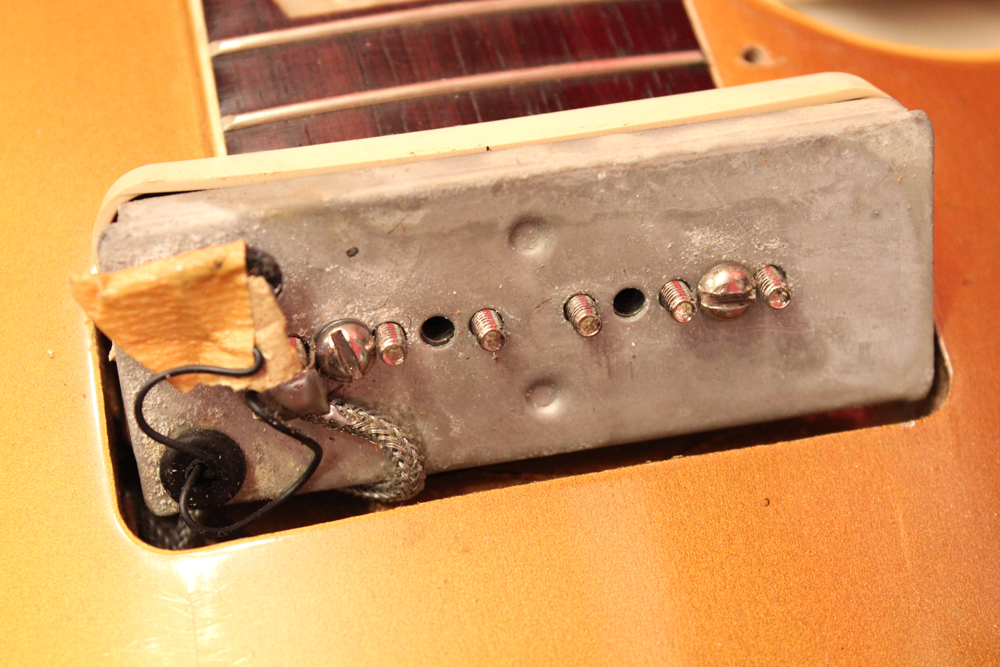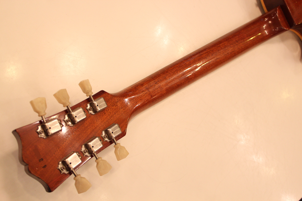 ゴールドトップのグリーニングも殆ど観られず、ボディバック等も、些少のウエアのみに止まった大変綺麗なコンディションです勿論、内容もオールストレートのフル・オリジナル・パーツで、サウンドも50's・P-90・ピックアップのルームの広い、レンジ感溢れるグッド・トーンを持った機体です