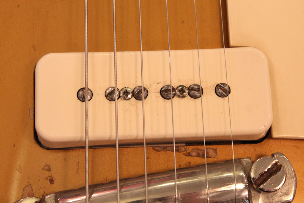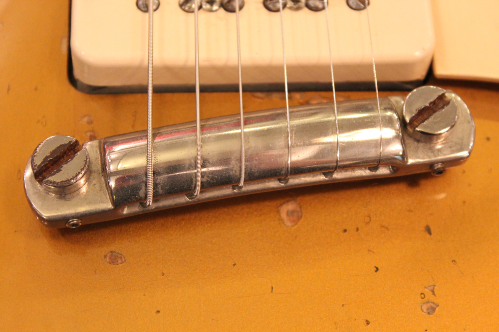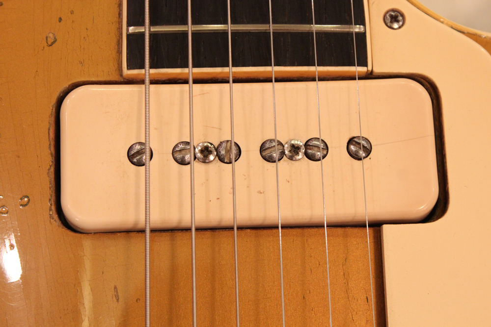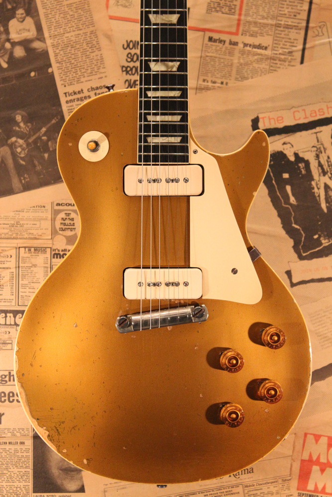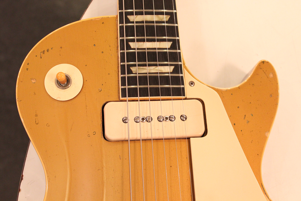 内容的にも、オール・ストレートで、パーツも変更点の無いフル・オリジナルをキープしています54年製は、サウンドも50'sのP-90・ゴールド・トップ中"ベスト!" と言うファンも多く、ボディ、ネックにダイレクトで弦振動が伝わる、ラップラウンド・ブリッジのレス・ポールは、TOM仕様とは一味違う倍音感豊かなP-90サウンドをアウトプットしてくれます!