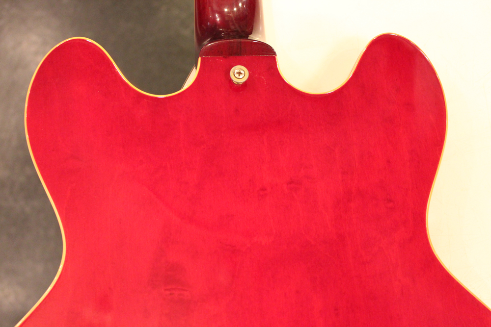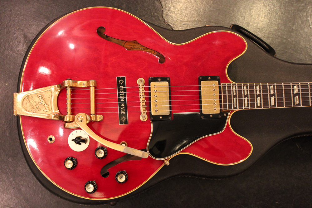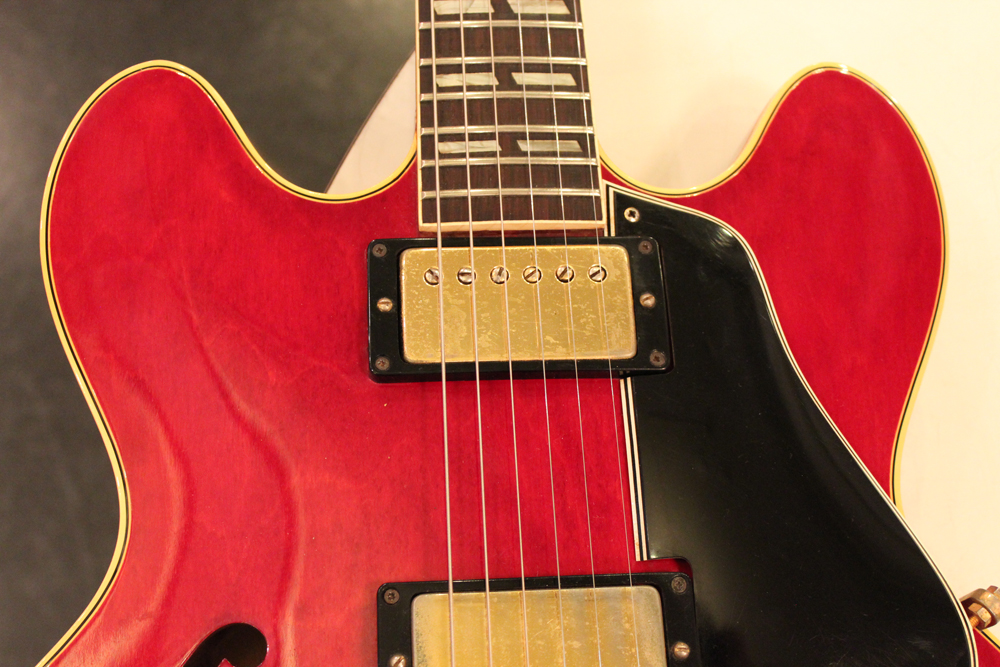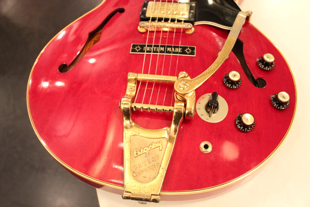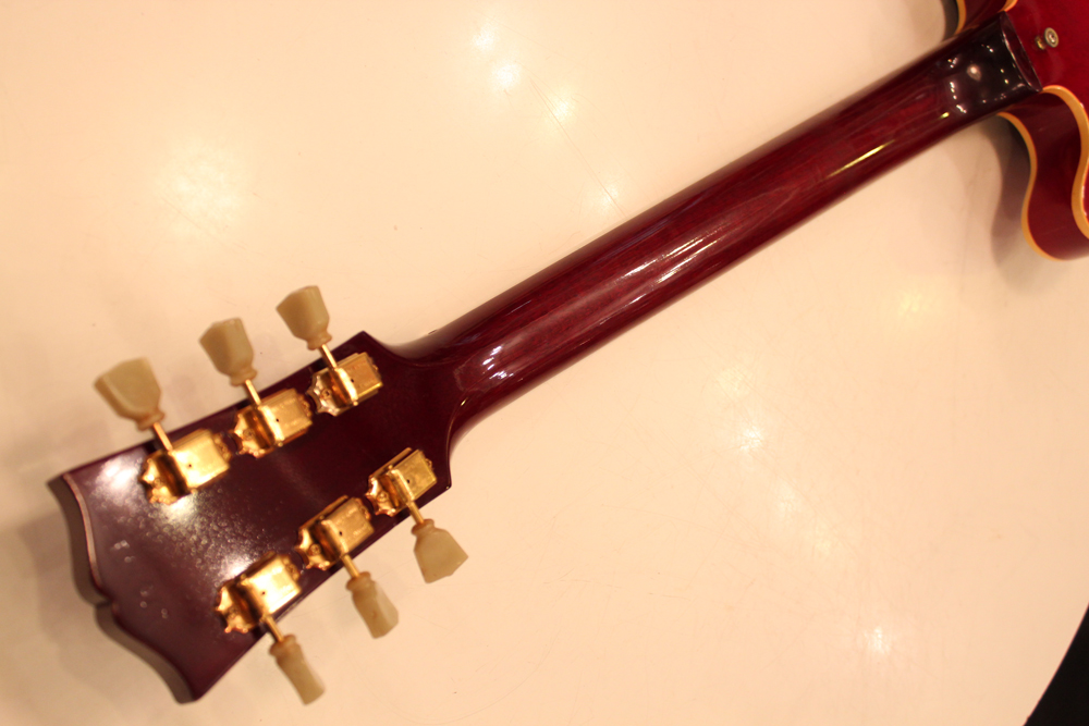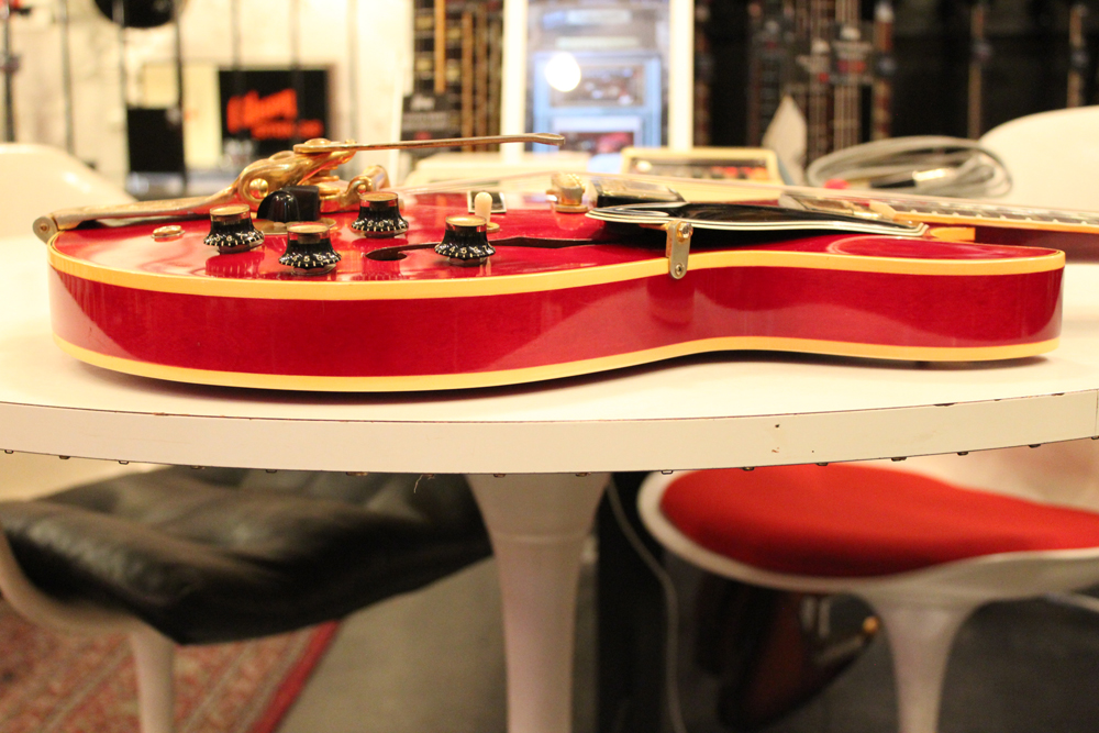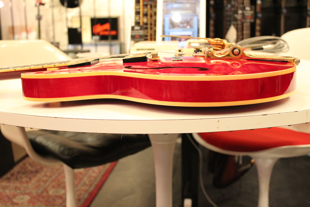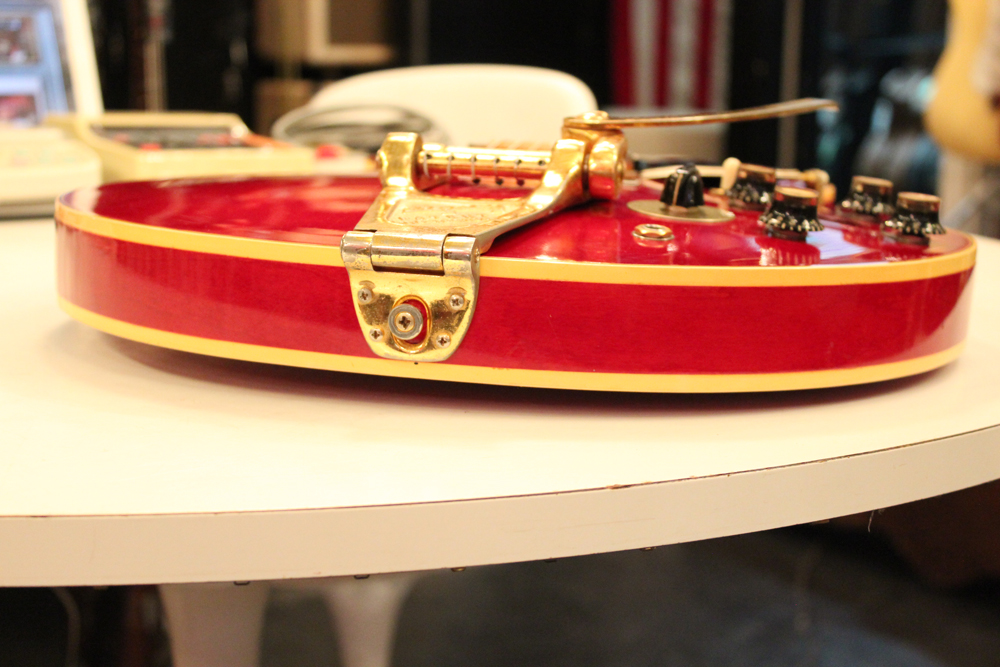 今回入庫は、全体的に綺麗な状態をキープしたニア・ミント・コンディションで、チェリーレッドのフィニッシュも輝きをキープしており、ファクトリーで搭載されたビグスビー・B7Gやハードウエアのゴールドメッキも綺麗に残っています