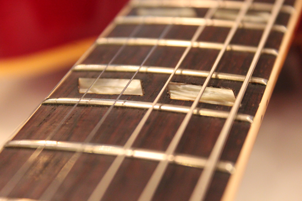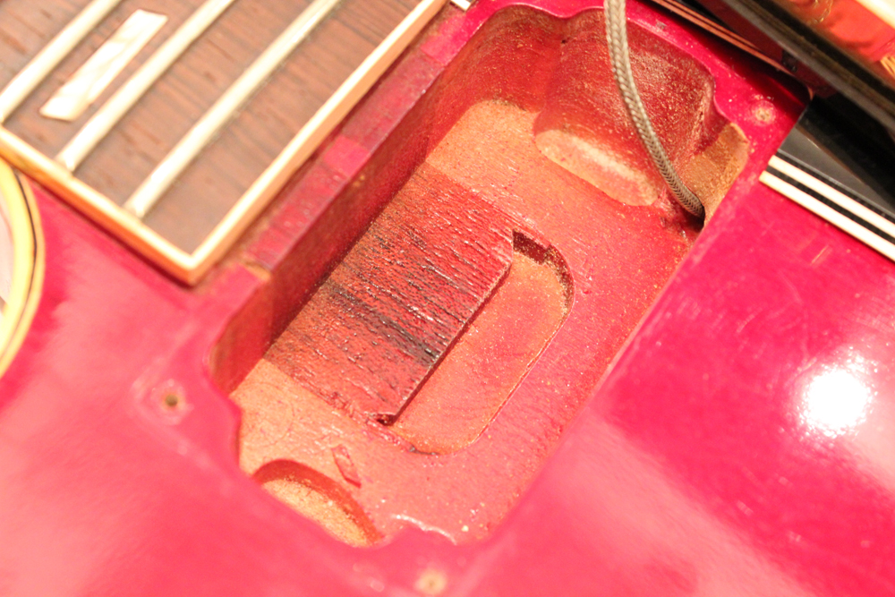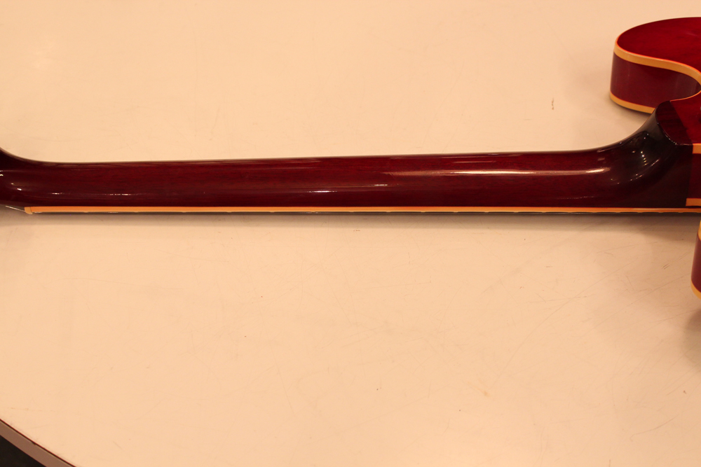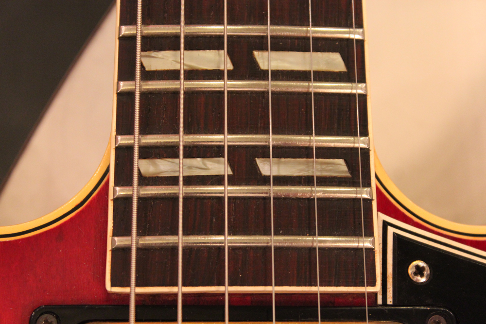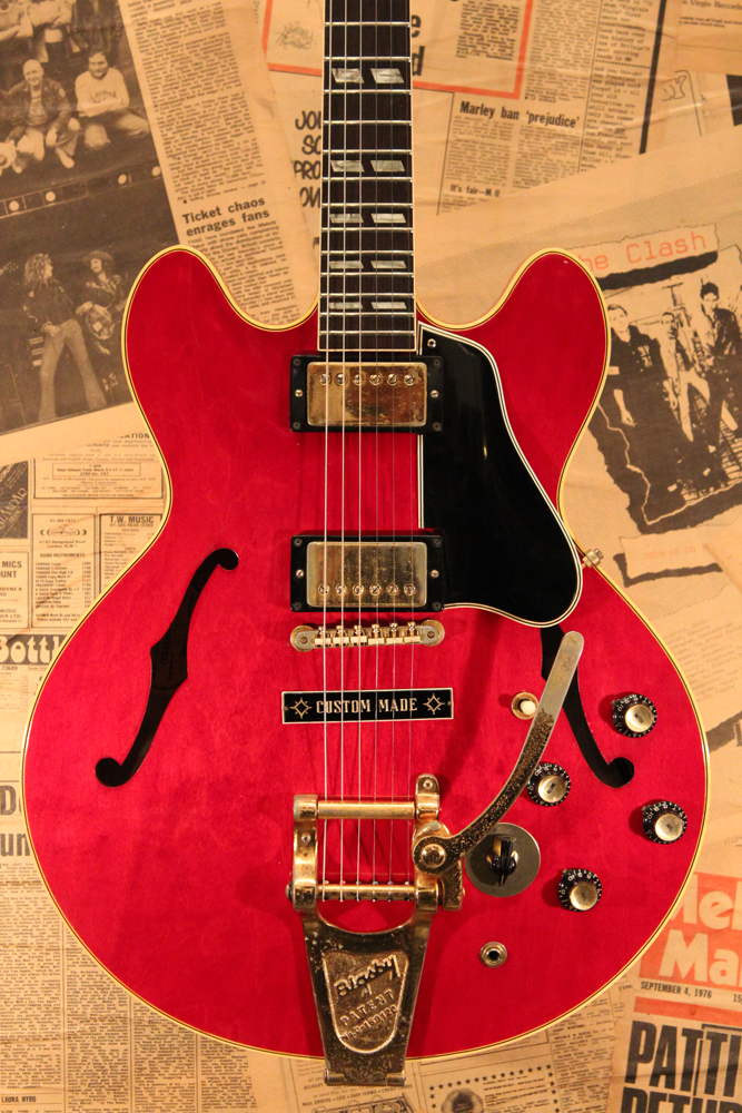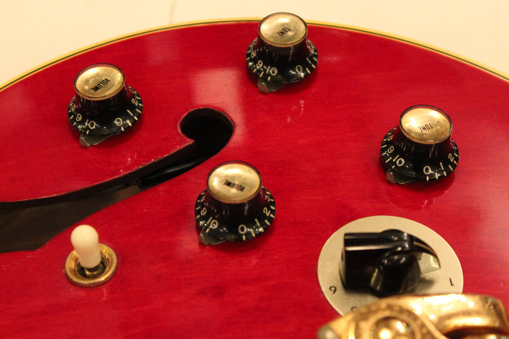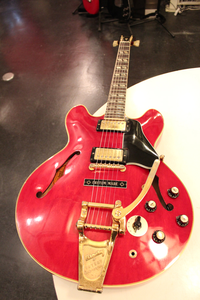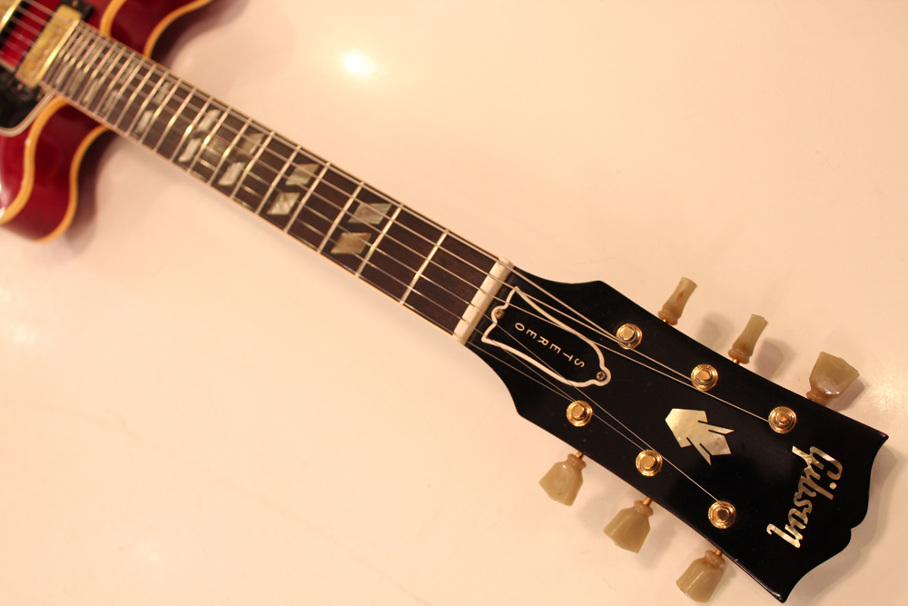 今回入庫は、全体的に綺麗な状態をキープしたニア・ミント・コンディションで、チェリーレッドのフィニッシュも輝きをキープしており、ファクトリーで搭載されたビグスビー・B7Gやハードウエアのゴールドメッキも綺麗に残っています