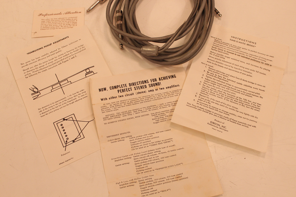 独特の高音域の倍音が豊富で、尚且つ芳醇さが味わえるスイート・トーン!内容も、オール・ストレートのフル・オリジナル・パーツで、新品時に付属した、幾つかのペーパー類やステレオ・シールドケーブル等のケース・キャンディも付属したコレクターズ・コンディションです!