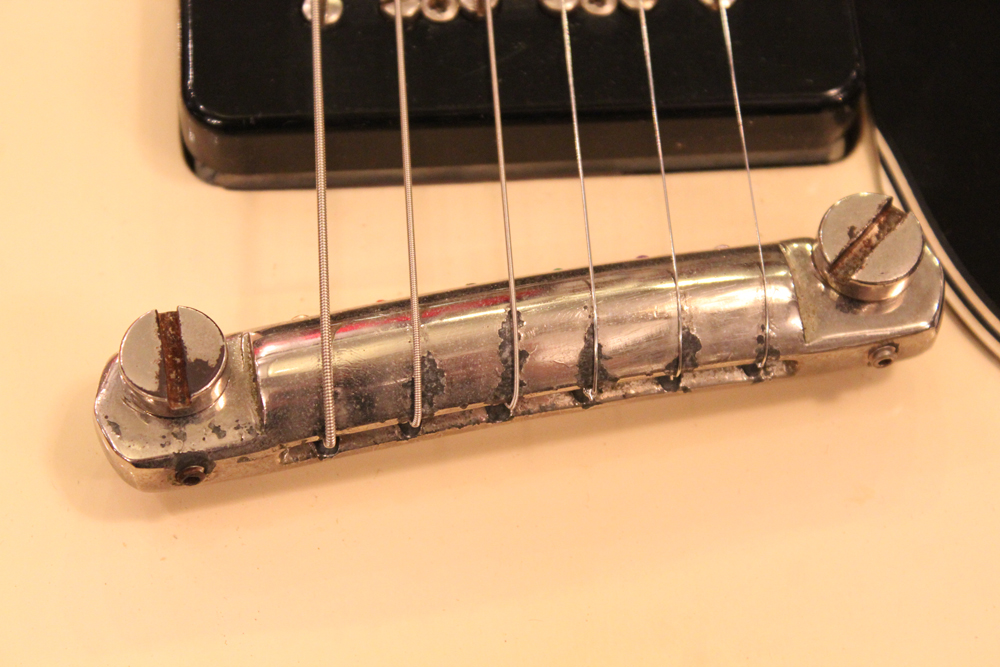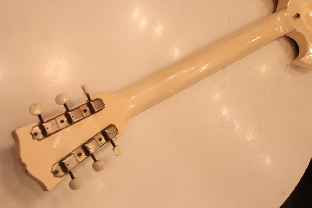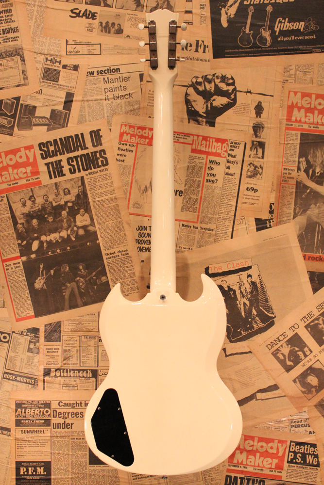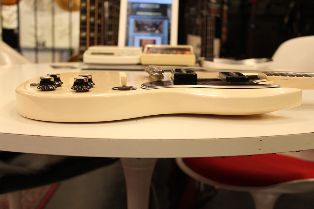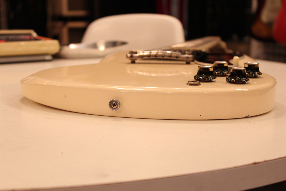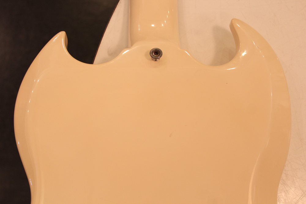 "TV・イエロー・フィニッシュ"のモデルが、僅かな期間生産されており、現在では非常にレアな仕様として、コレクタブルなモデルなっています今回入庫は、その"TV・イエロー"からカラー変更された直後の"TV・ホワイト・フィニッシュ"の"SG・スペシャル"で、ブリッジが61年モデルのみの、スラント・ブリッジ仕様という機体で、実はレアな"TV・イエロー"同様に極めて少ない生産本数のレア・スペック!